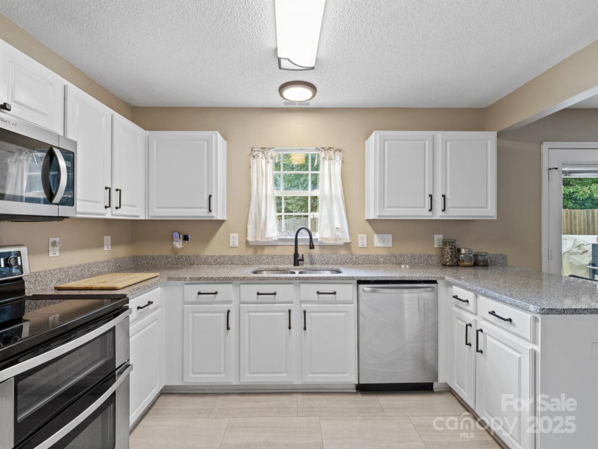 Entertaining is easy in this spacious home with a flowing layout from the living room to the dining area and open kitchen. The chef will love the stainless steel appliances, double oven, granite countertops, and bright white cabinets. The insulated garage features its own heating and cooling unit—perfect as a gym, retreat, or workspace. Outside, enjoy an extended patio on a corner lot overlooking a private, fenced yard with two gates. Extensive landscaping adds curb appeal, and gutters have been installed for easy maintenance. All bathroom toilets and fixtures have been updated. Major systems including the roof, water heater, and HVAC have been replaced in recent years. Upstairs, a versatile loft offers a great second living area or home office. This move-in ready home is full of thoughtful upgrades!
