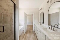 Recently completed and now available in North Pines, 2279 Lee Lawing Road offers thoughtfully crafted single-level living by Brancer Homes. This new construction home blends modern comfort, elevated finishes, and the privacy of tree-lined homesites, all just 15 minutes from downtown Lincolnton and convenient to shopping in Sherrills Ford and Denver. Charming curb appeal begins with stone accents and a stained wood front-porch column, creating a warm and welcoming entry. Inside, the builder’s Earthy Designer Package showcases nature-inspired tones, curated lighting, upgraded cabinetry, a walk-in pantry, and quartz countertops throughout for a cohesive and refined feel. The open-concept kitchen features pendant lighting over the island, upgraded cabinetry combinations, and seamless flow into the main living spaces—ideal for both everyday living and entertaining. The spa-inspired primary suite offers a beautifully tiled shower wall, stand-alone soaking tub, and a calming designer palette complemented by crisp white ceilings. Additional highlights include a functional drop zone, added recessed lighting, and a well-appointed laundry room with cabinetry and quartz counters for added storage and convenience. An extended two-car garage with additional driveway parking enhances everyday functionality. Now that construction is complete, this home is part of a newly released collection in North Pines—offering a rare opportunity to own move-in ready new construction with elevated design and natural privacy in one of Lincolnton’s fastest-growing areas. Designed for low-maintenance living with a peaceful rural backdrop, this home combines thoughtful craftsmanship, modern design, and Carolina charm—perfectly positioned in the heart of Lincolnton. Current photos are representative of other completed homes.