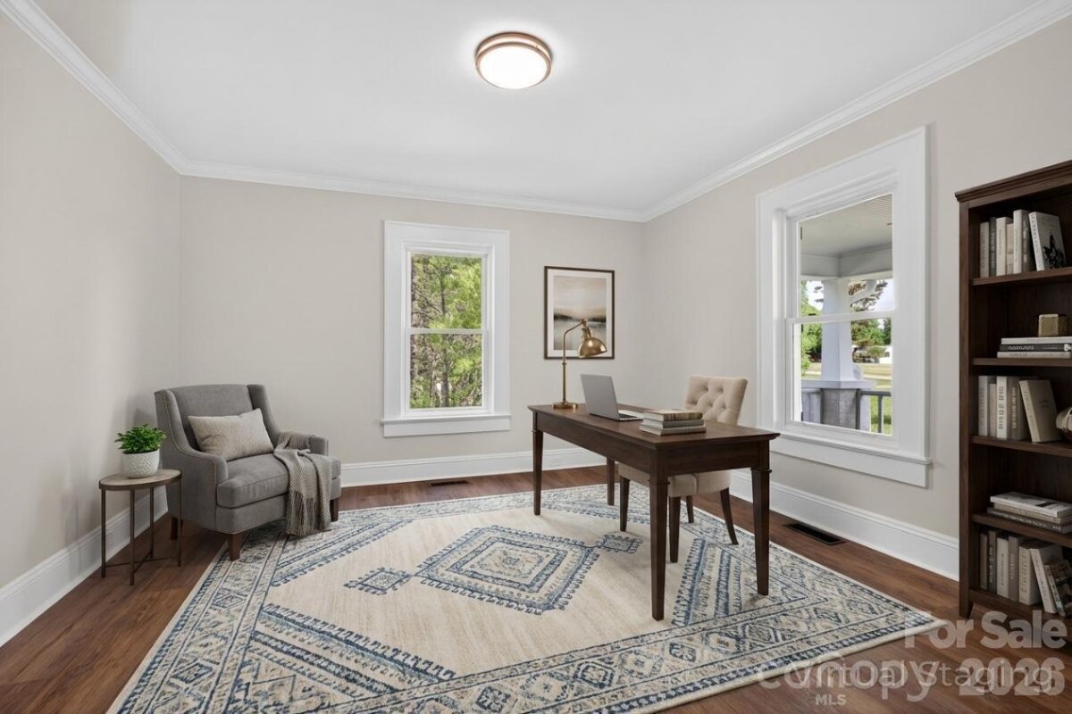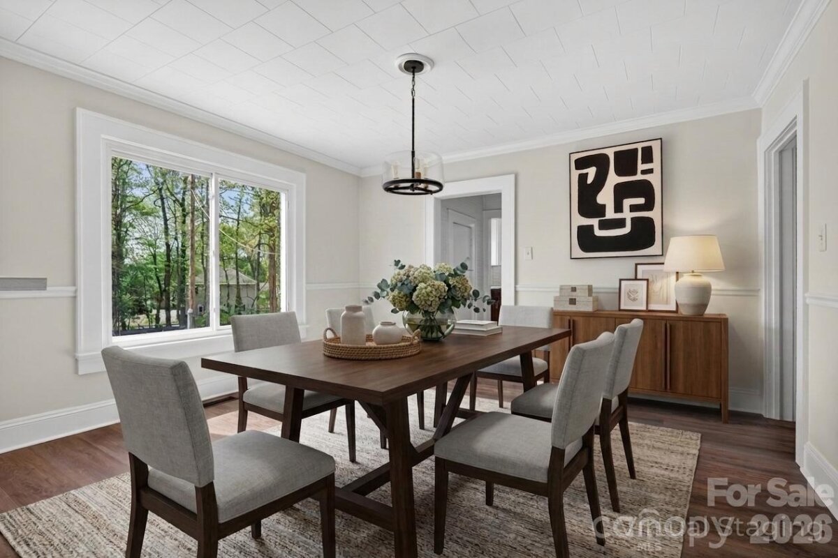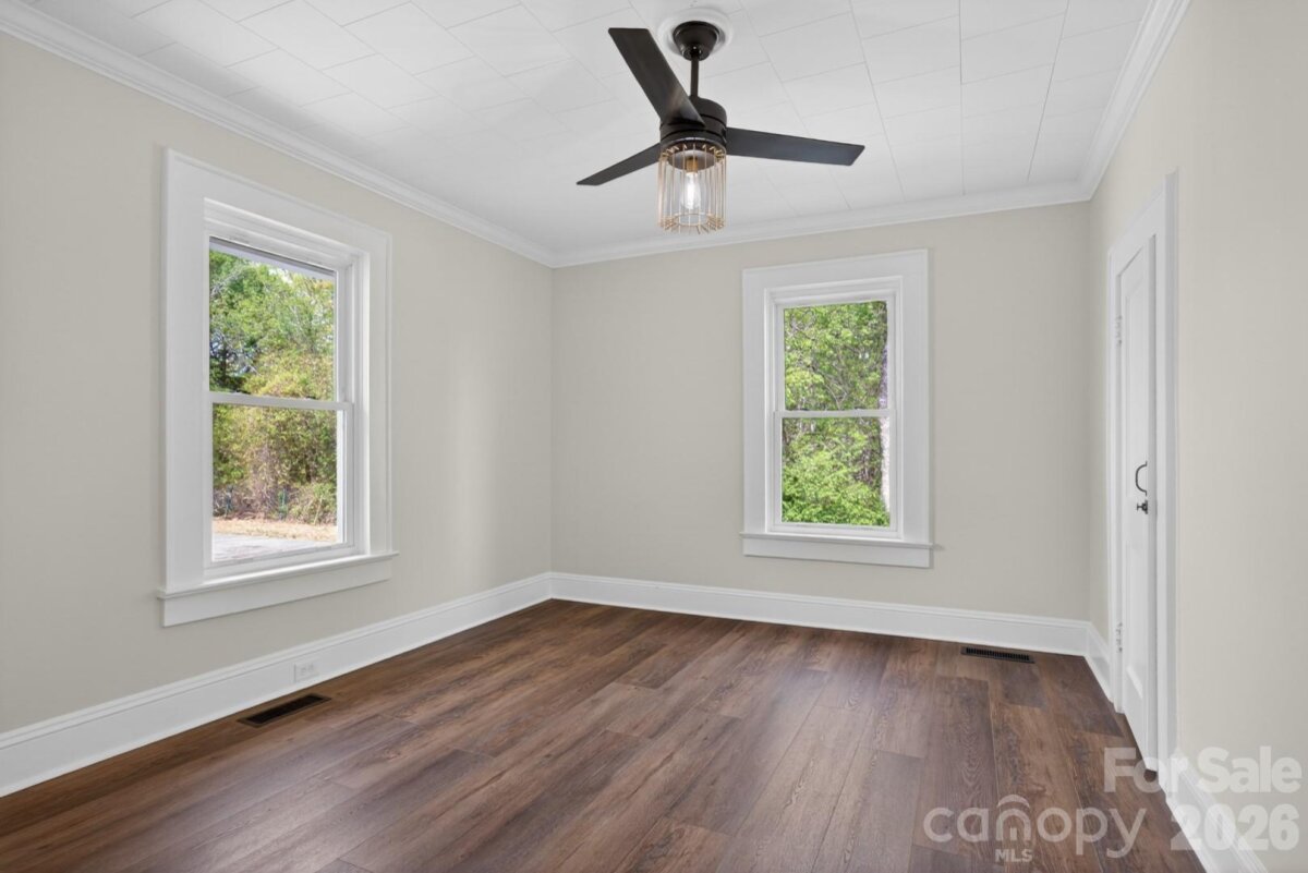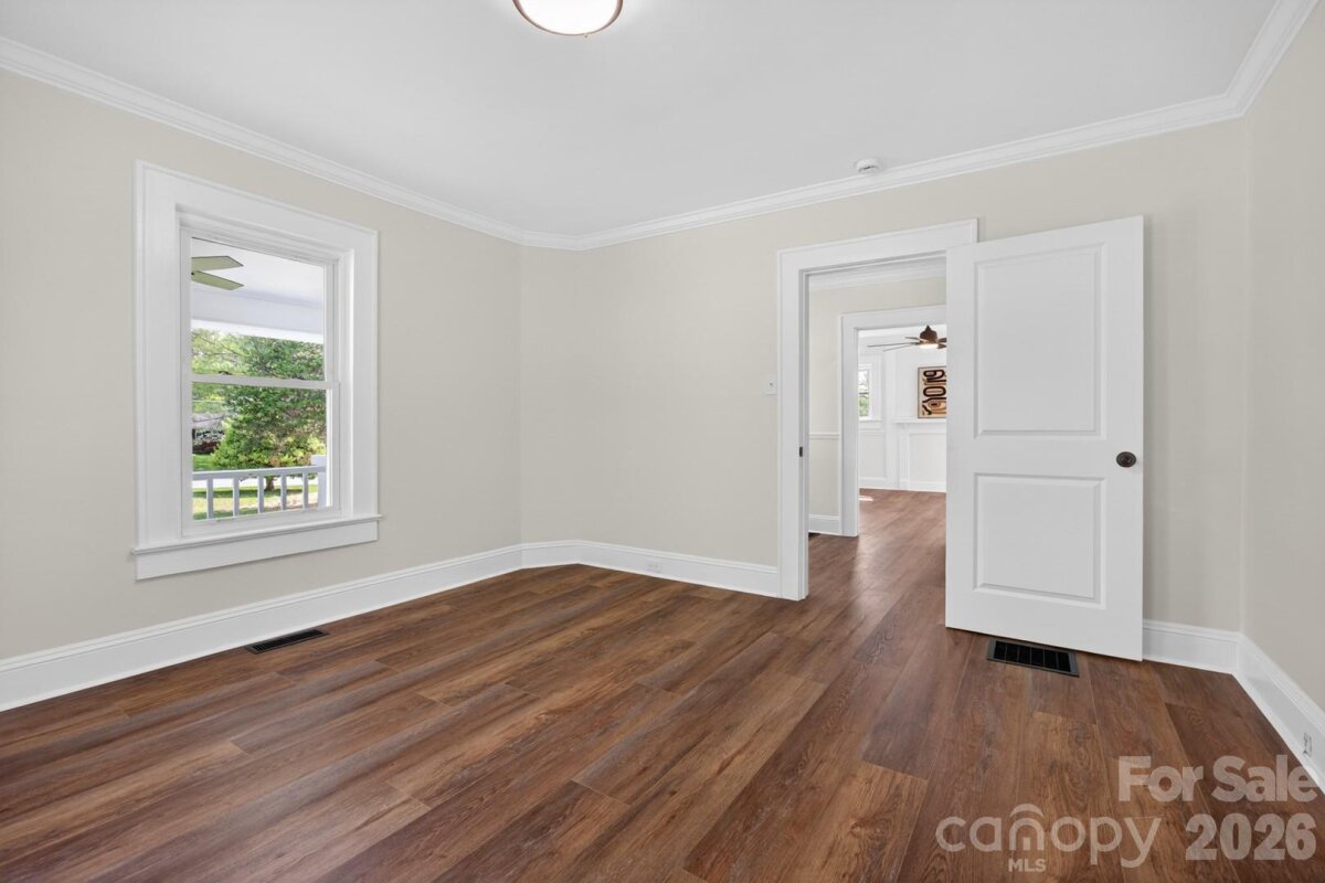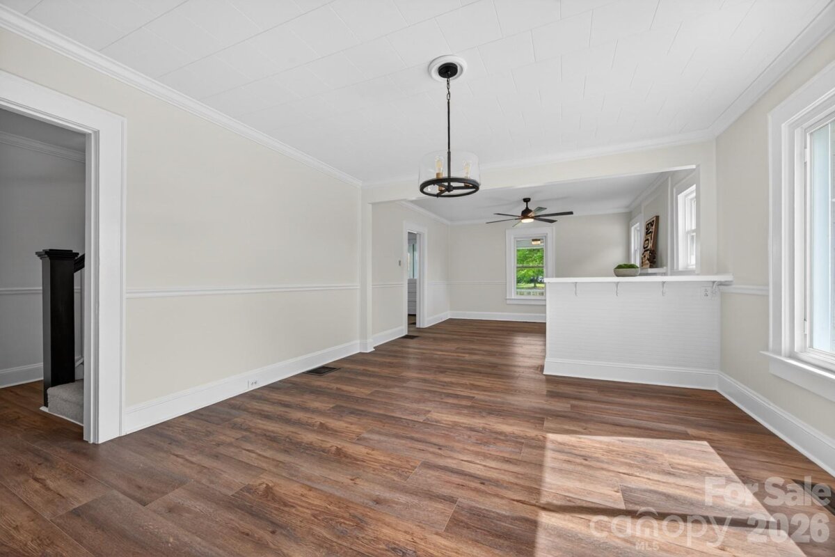 Step into the charm of a beautifully refreshed 1922 Arts & Crafts home, where timeless character meets modern updates. A wide, inviting front porch sets the tone for relaxed living and welcoming curb appeal. Inside, the main level features a spacious living room and formal dining room, perfect for everyday living or entertaining. The brand-new kitchen shines with stainless steel appliances, stylish finishes, and plenty of workspace. You’ll also find a comfortable bedroom, a fully updated bathroom with all new fixtures, and a versatile flex room ideal for a home office, guest space, or additional living area. Crown molding throughout the home adds an elegant finishing touch. Upstairs, two generously sized rooms are connected by a convenient Jack-and-Jill bathroom that has been completely updated, offering both privacy and modern functionality. Step outside to enjoy the brand-new deck overlooking over an acre of land—plenty of room to roam, garden, or relax. A barn in the backyard adds extra storage or potential for hobbies and projects. This unique property blends historic charm with modern comfort—don’t miss your chance to make it yours!