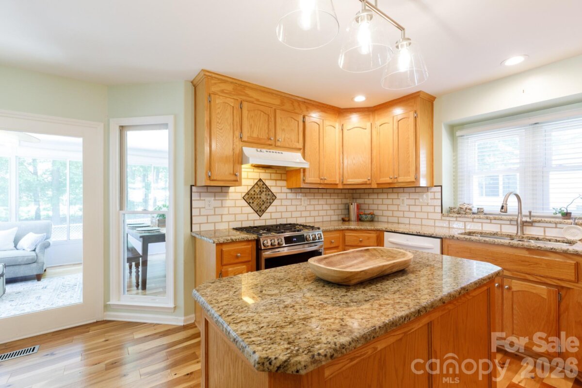 ONE LEVEL | NO HOA | TIMBERLAKE – BELMONT Beautifully maintained one-level home in the highly desirable Timberlake community—offering the rare combination of NO HOA and a prime Belmont location! This property sits on a large, level lot with a fenced backyard and inviting outdoor living spaces, including a spacious grilling deck and fire pit area—perfect for relaxing or entertaining. A standout feature is the all-season sunroom with its own mini-split system (not included in heated square footage), creating a versatile space for dining, lounging, or exercise year-round. Inside, you’ll find stunning hardwood floors throughout—no carpet—and a comfortable, functional layout. The front office/flex space (no closet) provides options for work or guests. The kitchen is well-appointed with granite countertops, abundant cabinetry, a prep island, and a gas range—ideal for everyday living. The spa-like primary en-suite offers a spacious bedroom filled with natural light, a walk-in closet, double vanities, and a separate, large walk-in shower - creating a relaxing retreat. Thoughtful updates include roof, whole-house generator, GSM wireless-controlled crawlspace system, well cared for HVAC (Duke recognized home as above average in energy savings and efficiency) reflecting true pride of ownership. Additional highlights include an attached two-car garage, ample driveway parking, and a welcoming covered front porch. Conveniently located just minutes from downtown Belmont, parks, schools, and scenic walking and biking trails.