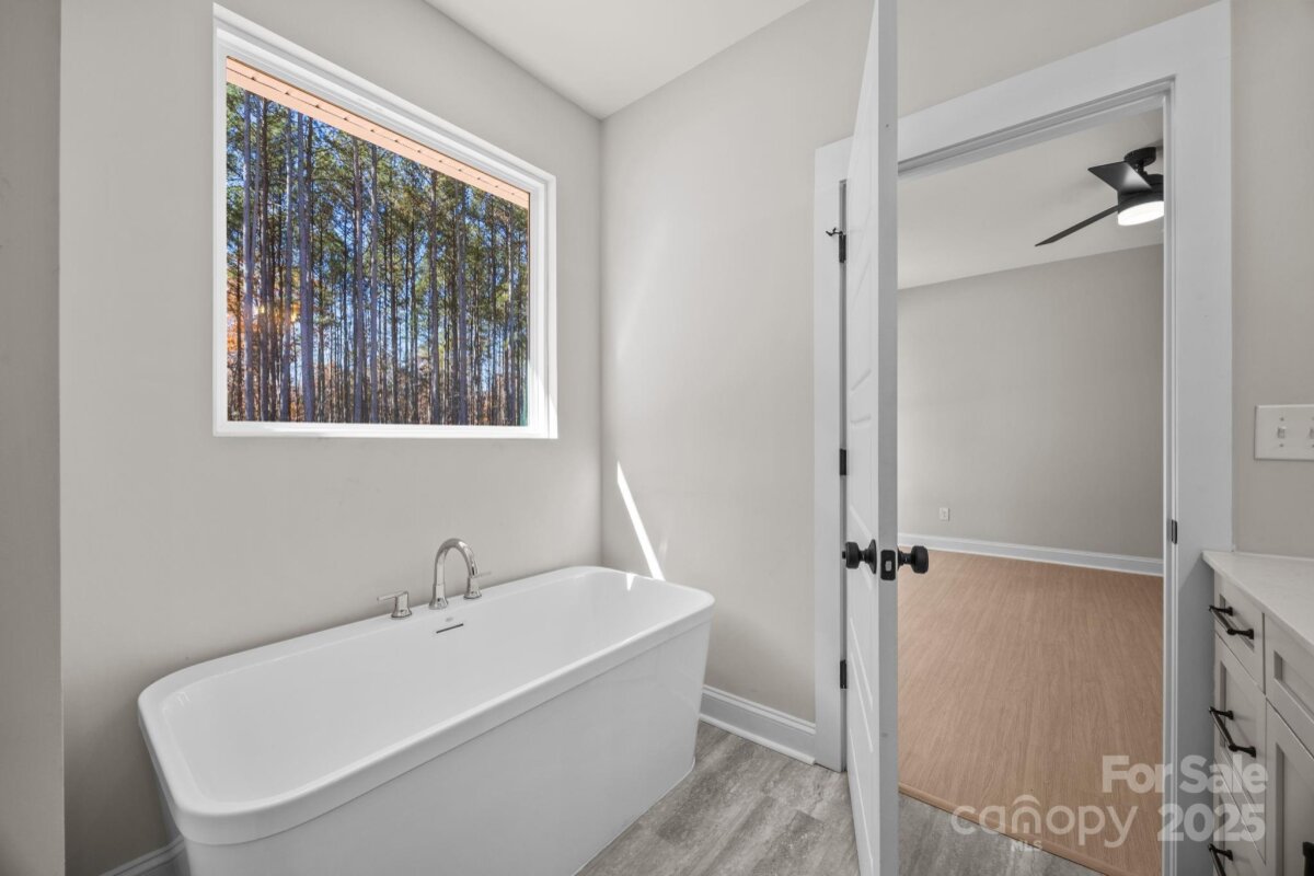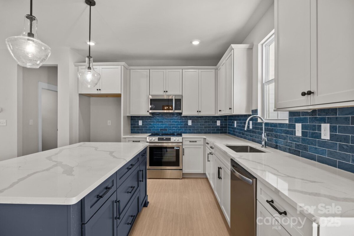 Welcome to North Pines—Lincolnton’s newest community of thoughtfully designed single-level homes by Brancer Homes. This 1,599-square-foot residence at 2295 Lee Lawing Road offers refined finishes, modern comforts, and the peaceful privacy of tree-lined homesites, all just 15 minutes from downtown Lincolnton and convenient shopping in Sherrills Ford and Denver. The inviting exterior showcases brick accents and a stained wood front-porch column, creating warm curb appeal. Inside, the home features the builder’s elevated Lakeside Designer Package, blending upgraded lighting selections, mixed-tone high-end cabinetry, and quartz countertops throughout for a cohesive, upscale feel. The open-concept kitchen offers pendant lighting over the island, a walk-in pantry, and a bright flow into the main living area—perfect for everyday living and entertaining. The primary suite presents a spa-inspired retreat with a stand-alone soaking tub, full shower wall tile, and a soothing designer color palette with crisp white ceilings. The home’s thoughtful layout also includes a drop zone, added recessed lighting, and a laundry room with cabinets and quartz counter. Finishing touches include an extended two-car garage with an exterior exit door and additional driveway parking, offering both convenience and flexibility. Designed for low-maintenance living in a natural, rural setting, this home combines craftsmanship, comfort, and Carolina charm in the heart of North Pines.