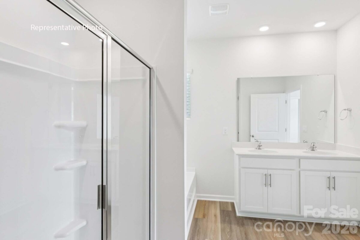 The Cali’s spacious and modern single-story home design is highly sought after for its open-concept layout and effortless flow. This beautiful home features four bedrooms, two bathrooms, and a two-car garage. As you enter, an inviting foyer welcomes you and leads directly into the heart of the home—an open and airy kitchen, living room, and dining area. The kitchen is equipped with stainless steel appliances, a large island with a breakfast bar, and a corner walk-in pantry, making it perfectly suited for both everyday living and entertaining guests. Inside, you’ll also find elegant touches such as an electric fireplace, 36" kitchen cabinets with molding, quartz countertops, subway kitchen backsplash. This home also offers a spacious primary suite complete with a walk-in closet and a private bathroom featuring a dual sink vanity. The additional three bedrooms and secondary bathroom are located on the front side of the home, providing privacy and comfort for family members or guests. At the rear of the home, a covered porch creates the perfect space for outdoor entertaining or relaxing evenings. The exterior of the home showcases James Hardie board siding with vibrant colors, adding lasting curb appeal and charm. This beautiful community features a sparkling pool amenity and is surrounded by a serene tree line, offering a peaceful and picturesque setting. The Cali also includes the “Home Is Connected†smart package for modern convenience. All home features are subject to change without notice. This well-designed home combines modern style, functionality, and comfort in one inviting package, perfect for those seeking both beauty and practicality in their next home.