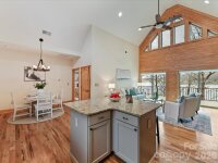 Meticulously maintained waterfront home perfectly positioned at the end of a quiet cul-de-sac in a private gated community, offering stunning views of Lookout Shoals Lake from nearly every room. This vaulted, open-concept layout features oak hardwood floors and abundant natural light throughout. The upgraded kitchen includes granite countertops, stainless steel appliances with refrigerator to remain, induction cooktop, custom hood, tile backsplash, abundant cabinetry, spacious dining area, and an island with additional storage and seating. The vaulted great room opens to an expansive deck spanning the entire back of the home, ideal for relaxing and taking in the water views. The main-level primary suite showcases lake views, oak flooring, a private bath with dual vanity and tiled shower, and a walk-in closet with attic storage and laundry access. Two additional bedrooms with oak flooring share a full bath with tiled tub/shower. The fully finished basement offers a recreation or flex space with kitchenette and walk-out access to a covered patio extending the length of the home. The spacious backyard overlooks the water, creating seamless indoor-outdoor lake living. Community amenities include gated roads, private beach, covered picnic area, boat launch, day dock with slips, and secured boat storage, all conveniently located near golf, hiking, and fishing.