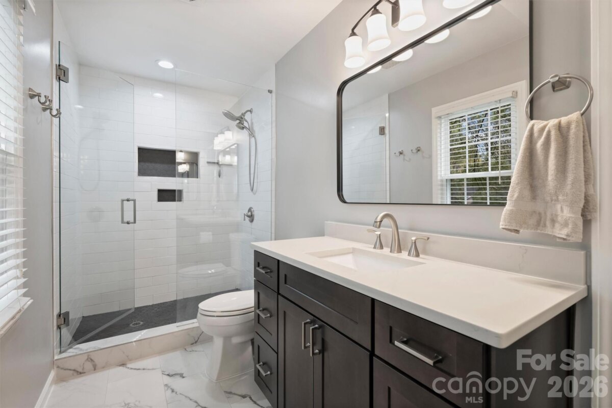 Welcome to 2310 Oldenburg Drive—tucked away on a quiet cul-de-sac in charming South Charlotte, this beautifully updated ranch truly has it all. Offering 3 bedrooms and 2 baths, the home strikes the perfect balance of comfort, functionality, and location. A thoughtfully designed floor plan features a light-filled living room, a dedicated dining area just off the kitchen, and a convenient mudroom/drop zone for everyday ease. The spacious primary suite includes a fully updated ensuite bath, delivering a fresh, modern feel. Situated on a picturesque, desirable corner lot, the property also boasts a detached one-car GARAGE—ideal for storage, a workshop, or private parking. Outside is a charming patio overlooking an flat backyard framed by mature trees, creating a peaceful, private retreat—with no HOA. Ideally located just moments from Quail Corners, Little Sugar Creek Greenway and perfectly positioned between SouthPark and Ballantyne, you’ll enjoy easy access to some of Charlotte’s best shopping, dining, and conveniences. This one checks every box—don’t miss it!