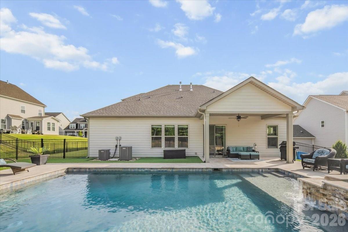 Welcome to this exceptional 5-bedroom home in the sought-after Preserve at Barber Rock, where thoughtful design, upscale finishes, and resort-style outdoor living come together beautifully. From the moment you arrive, the three-car garage and inviting curb appeal set the tone for what awaits inside. Soaring ceilings, and an open-concept layout create a bright and elevated feel throughout. The heart of the home is the stunning all-white kitchen, featuring timeless cabinetry, abundant counter space, a large center island perfect for gathering, and a walk-in pantry that offers incredible storage. The kitchen flows seamlessly into the living and dining areas, creating a warm and functional space for hosting or relaxing. The primary suite on the main level provides a private retreat with spacious proportions and a peaceful setting, offering convenience and comfort. With five bedrooms total, there is room for everyone, whether you need space for guests, a home office, fitness room, or playroom. The layout offers flexibility to fit a variety of lifestyles. Step outside and discover your own backyard oasis. Designed for entertaining and unwinding, the outdoor space features a beautiful in-ground pool and hot tub, creating the ultimate setting for summer days and quiet evenings alike. Whether enjoying morning coffee poolside, hosting weekend gatherings, or relaxing under the stars, this backyard delivers a true resort-inspired experience. A three-car garage, low South Carolina taxes, and a convenient location near Ballantyne, Fort Mill, top-rated schools, shopping, dining, and I-485 complete the package. Schedule your showing today and start the warm season in your dream home!