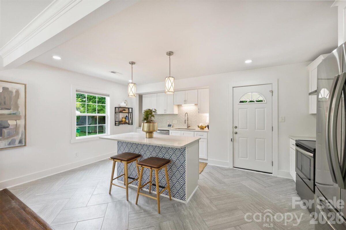 Beautifully renovated home with modern finishes and a functional layout. The main living area is bright and open, centered around a large kitchen island ideal for cooking and entertaining. Bedrooms are well-sized, and both bathrooms feature walk-in showers with updated finishes. The living space extends outdoors to a deep, fully-fenced, backyard with a paver patio, offering plenty of room to relax or host. Insulated windows, hardwoods and tile flooring throughout. Home has been freshly painted and tile/grout cleaned. Located just minutes from Uptown and within walking distance to Five Points Park and the trolley line.