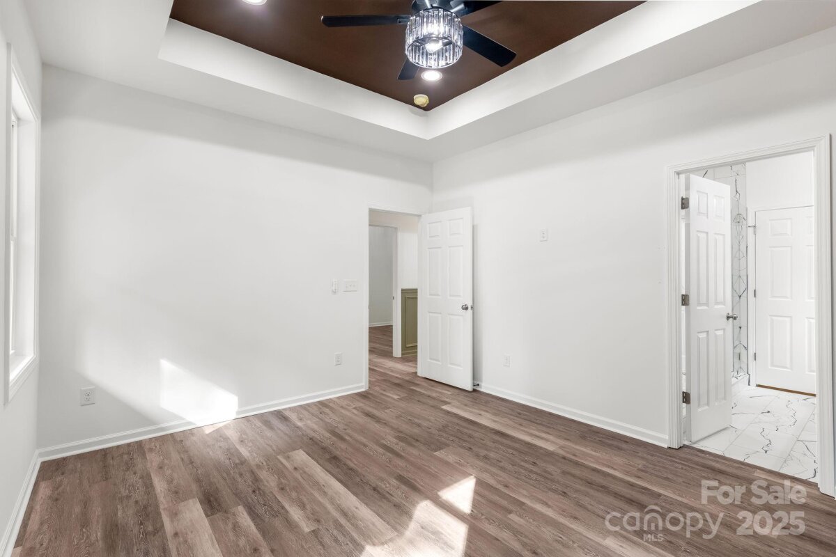 This elevated ranch home has been meticulously designed with high end finishes and is located on a large .47 acre lot with 1-car garage! The front porch welcomes you into the living room that is well lit with natural light, airy cathedral ceiling and lovely wainscotting, while the LVP floors seamlessly lead you into the gorgeous kitchen boasting stainless appliances, coffered ceiling, peninsula with bar seating, hood vent, soft close cabinetry, granite counters and walk-in pantry! Make your way to the beautiful primary suite with tray ceiling, wood trimmed accent wall and walk-in closet. No expense was spared in the primary bath with a grand 8ft glass & tile surround shower with dual rainfall fixtures, dual vanity with granite counters and tile floors. There are 2 add'l bedrooms, ample in size, plus hall bath w/ tile surround shower, granite counter & tile floors. Additional features include an adorable covered back patio, dedicated laundry room, space off the garage entry for a drop zone, all LVP & tile floors (no carpet), 1-car garage with epoxy floor, only 1 step entry into the home, no HOA and a backyard surrounded by mature trees for privacy! This home features so many upgrades and custom features that are hard to find at this price! You'll appreciate the quality construction and elevated finishes - not an average cookie cutter home! Connected to public water! 10-year Structural warranty included, pay only County taxes and close to everything you need - 1.5 miles from John Moss Lake, 2.5 miles from E Dixon Blvd, 5 miles from downtown Shelby, 14 miles to Gardner Webb University. *USDA ELIGIBLE with no down payment. You may also qualify for up to $20,000 in down payment & closing cost assistance! Call preferred lender for details!