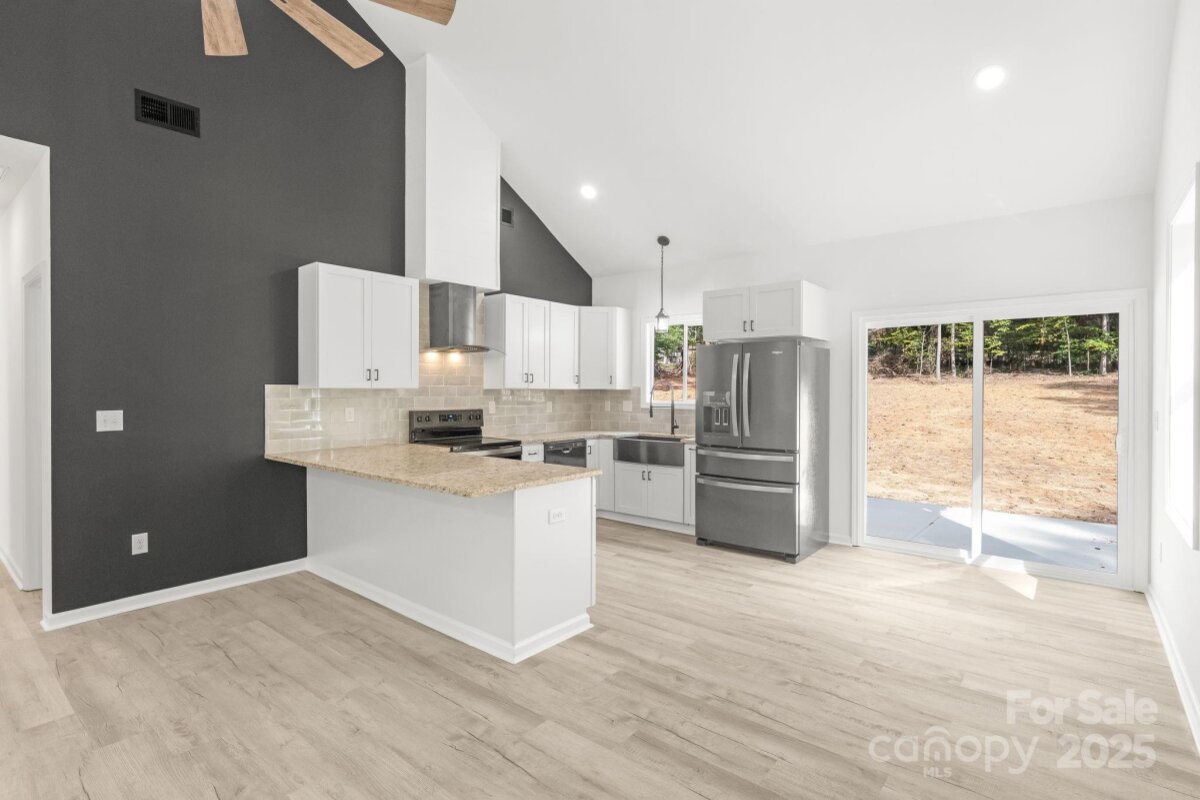Step into this stunning brand-new ranch home, situated on a private .57 acre lot with No HOA, thoughtfully designed w/ an open floor plan blending style & functionality! The extended height cathedral ceiling sets the tone for the living areas with lots of light and flexibility in designing the space to make it your own. LVP floors seamlessly lead you into the gorgeous kitchen with peninsula and bar seating, granite ctrs, soft close cabinetry, farmhouse sink, tile backsplash and hood vent, while the dining area invites you through the sliding glass doors to the private patio. At the end of the day, relax in the amazing primary suite with tray ceiling, accent wall, 2 closets (1 walk-in) and LVP floors. No detail has been overlooked in the unbelievable primary bath showcasing an oversized tile & glass surround shower with rainfall, tile floors and dual vanity w/ granite counters. There are 2 add'l bedrooms, ample in size, plus hall bath w/ tile surround shower, granite counter & tile floors. Home has no carpet - all tile & LVP and only 1 step for entry. RARE FIND with so many upgrades and custom features at this price! You'll appreciate the quality construction and elevated finishes - not an average cookie cutter home! Connected to public water! 10-year Structural warranty included, pay ONLY County taxes and close to everything you need - 1.5 miles from John Moss Lake, 2.5 miles from E Dixon Blvd, 5 miles from downtown Shelby, 14 miles to Gardner Webb University. *USDA ELIGIBLE with no down payment. You may also qualify for up to $20,000 in down payment & closing cost assistance! Call preferred lender for details!