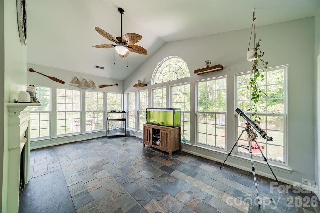Charming front porch 2-story home on private wooded lot located in the desirable Heathfield subdivision. This home has all the living space you could want including 4 BRs, a bonus room, office, formal DR & LR, eat-in kitchen, great room and sunroom. The upgraded kitchen features granite counters, SS appliances, custom backsplash, newer range with built-in Air Fryer, step-in pantry and a large island. The great room and sunroom share a 2-sided gas fireplace for those cool fall evenings or just for relaxing and reading a book. Upstairs, you'll find the primary bedroom with the recently upgraded en-suite. Check out the size of the W/I shower or relax in the perfect spa-like tub. An upstairs bonus room makes the perfect man-cave or home-school room. Step outside on the new covered deck that is perfect for entertaining. Enjoy grilling for friends or just watching your favorite sports team. There is also an oversized patio with a fire-pit that makes for great late night conversations. This home has so many unique features including the slate-like stone floors in the sunroom and laundry. The 2-car side load garage has a workbench, lots of shelves and new garage door. Seller is leaving large red tool cabinet in garage (tools do not convey). Back yard outbuilding holds lawn and garden tools. Crawl space has been encapsulated. Irrigation panel has been upgraded. Primary BTH work not permitted. Previous owner stated new roof in 2018. Home has approximately 664 sf of covered and non-covered porches and decks.