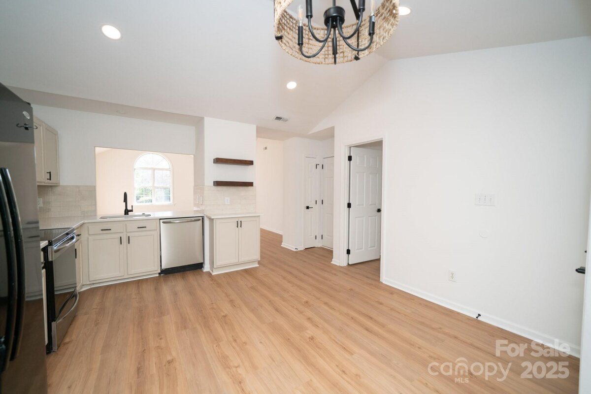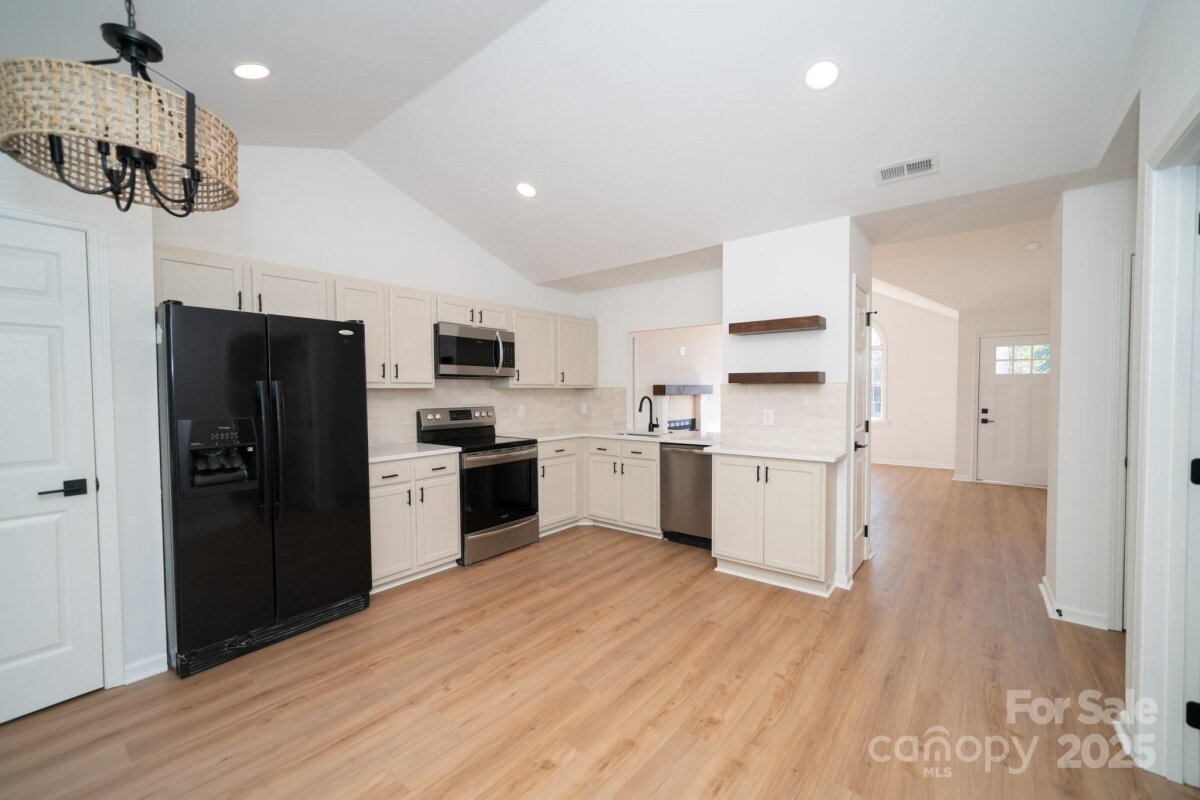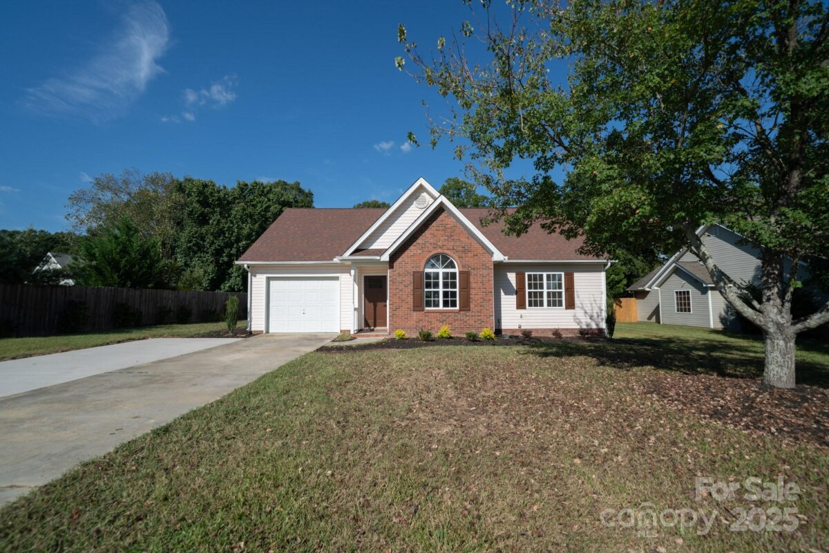 Home is priced to sell below comps in the area!! Beautifully renovated 3-bedroom, 2-bath home in the heart of Indian Trail! This move-in ready property showcases fresh updates throughout, including new LVP flooring, interior paint, all new lighting, and high vaulted ceilings in living room and kitchen. The kitchen has been refreshed with painted cabinetry, new granite countertops, and a modern tile backsplash. Bathrooms feature new vanities and hardware, while the living room shines with a redesigned fireplace surround and custom mantle. Light and airy with thoughtfully chosen finishes. Outside refreshed landscaping enhances the curb appeal, and the large shaded backyard with a partially covered patio provides the perfect space to relax or entertain. Conveniently located near Highway 74 with quick access to I-485 and the 74 bypass, offering both comfort and convenience. Refrigerator, and stove will convey with property.