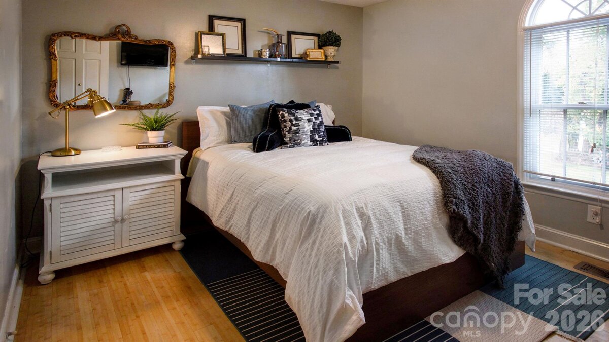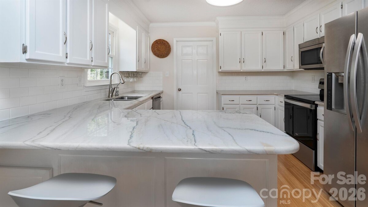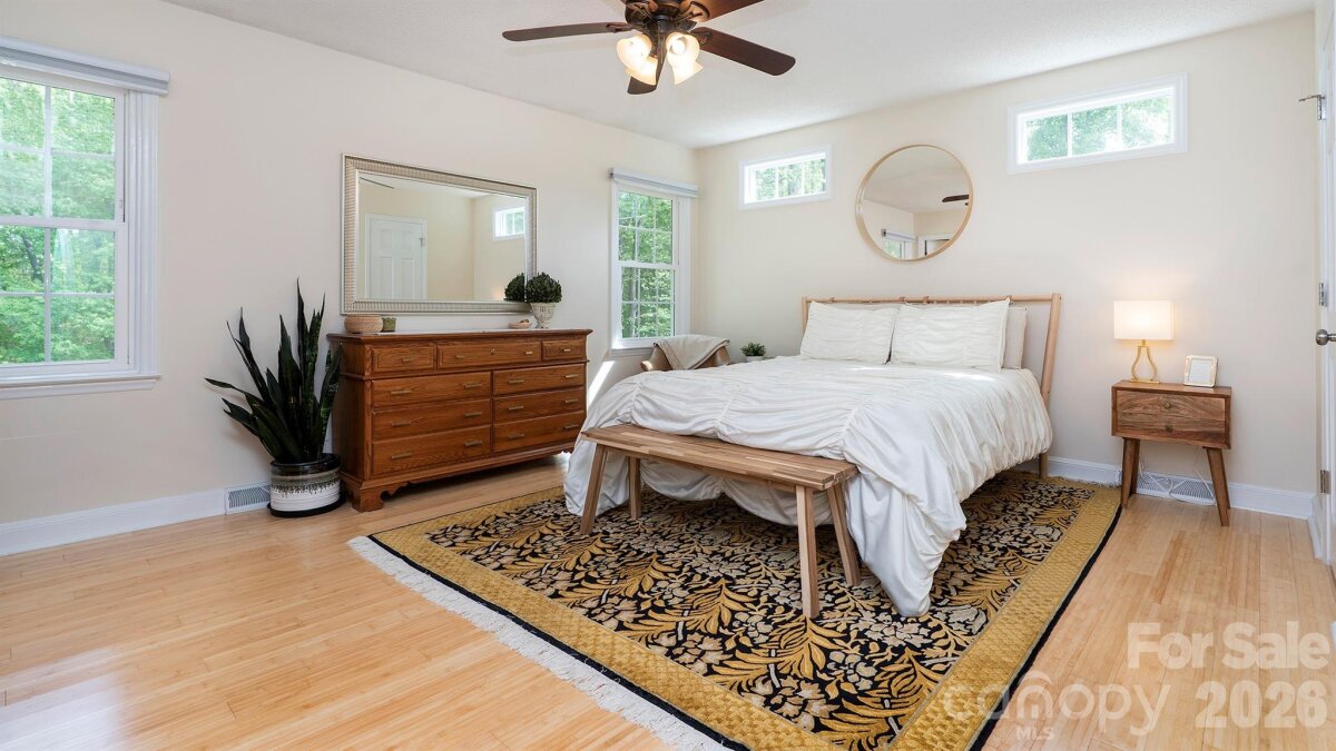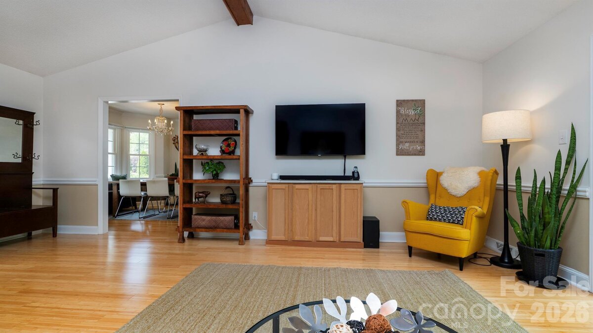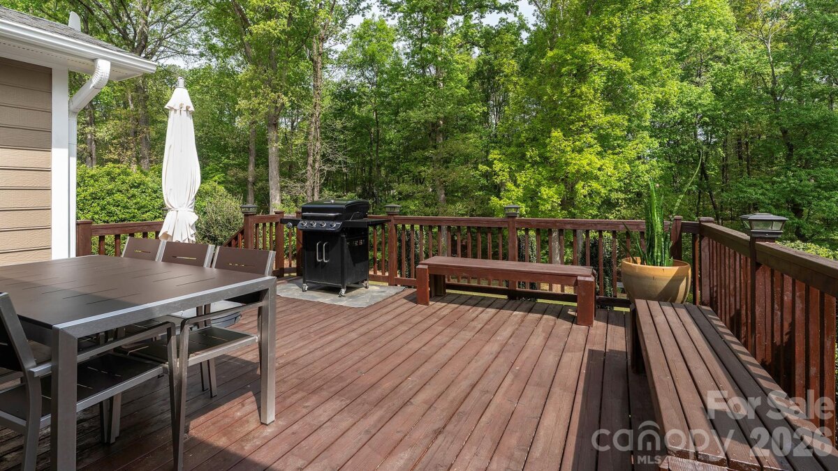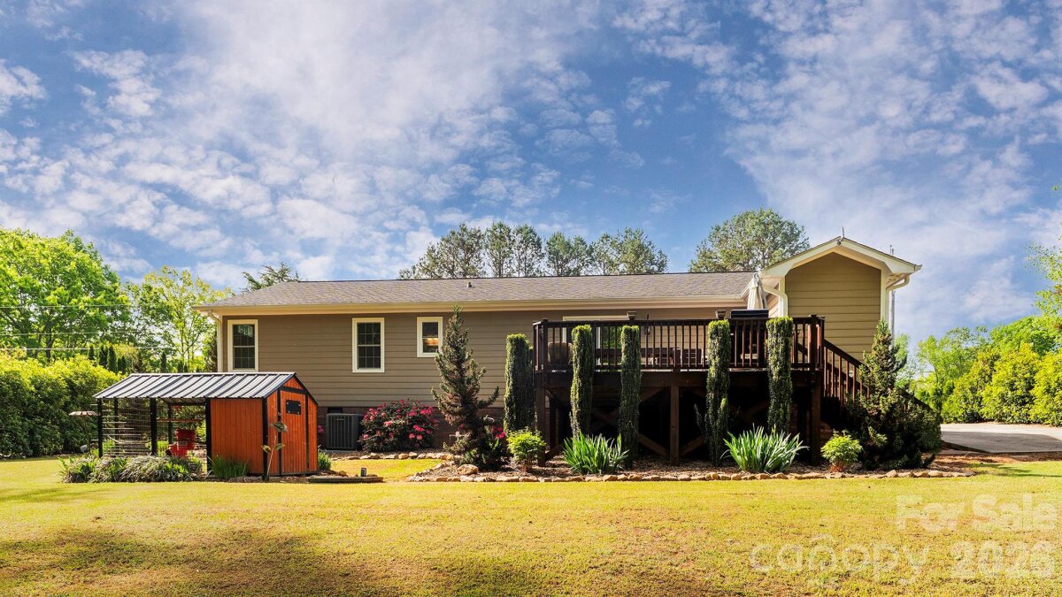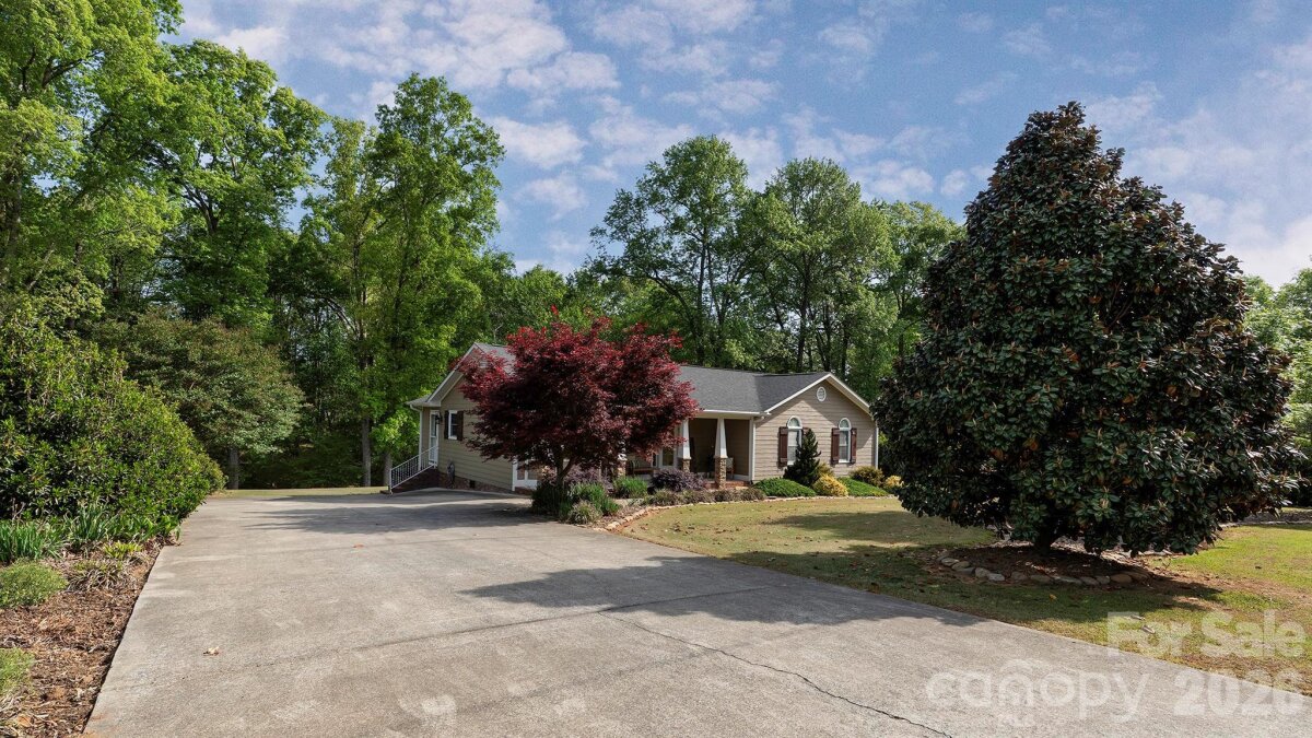 This beautifully updated home delivers a modern, move-in-ready lifestyle with thoughtful upgrades inside and out. Bright, open interiors are anchored by a vaulted great room, inviting dining area, and updated kitchen with stainless appliances, quartzite countertops, and peninsula seating for easy daily living and entertaining. Bamboo flooring flows through the main living spaces for a clean, cohesive look. The primary bedroom stands out with transom windows and custom California Closet shelving for natural light and organized storage. Both full baths feature granite countertops and marble-style tile floors, and the laundry room continues the same finish for durability and design continuity. Outside, the 0.75-acre homesite feels like a private retreat with professionally designed all-season landscaping, a cedar deck, custom benches, grill station, broad lawn, mature trees, winding creek, two footbridges, and a fire-pit area, all with convenient access to Charlotte.