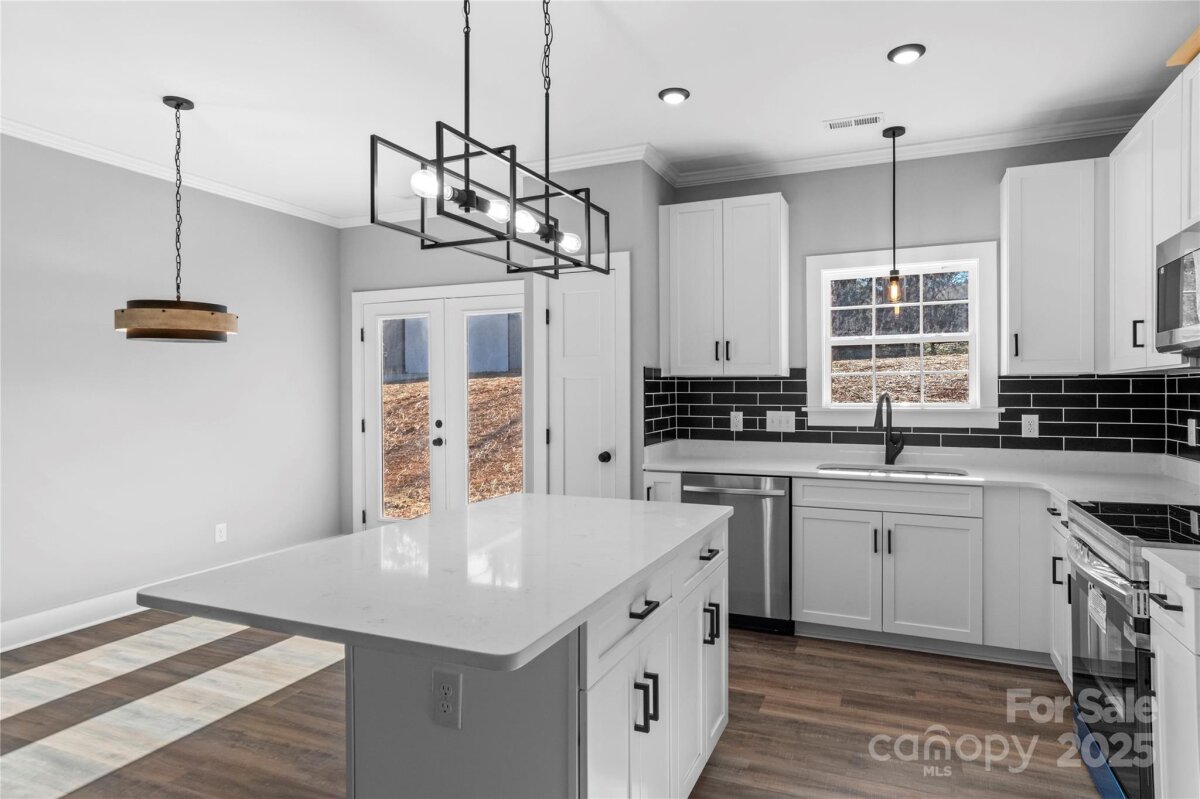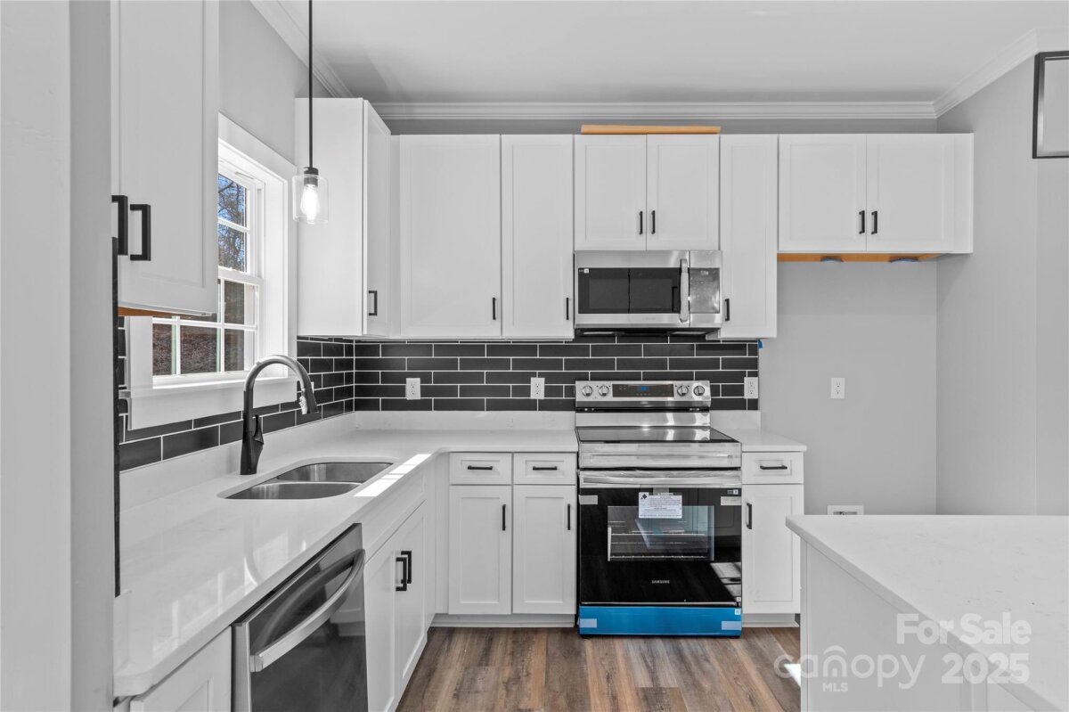 Beautiful new construction in Winston Salem.. One level living with 2 car Attached Garage .. Kitchen with Island, Granite countertops, and Pantry too... Open Kitchen/Dining/and Living Room... Split bedroom floorplan... Primary Bedroom with Walk-in Closet and en suite bathroom offering double sinks, Granite counters, privacy toilet area, and beautiful walk-in tiled shower ...Hall bathroom offers Tub/Shower Combo & Single Vanity... Laundry Room located just outside the Primary Bedroom...LVP flooring throughout (Home is completed)
