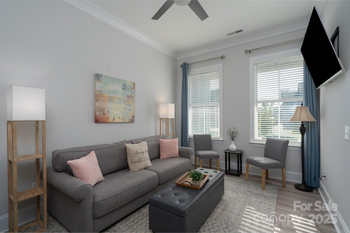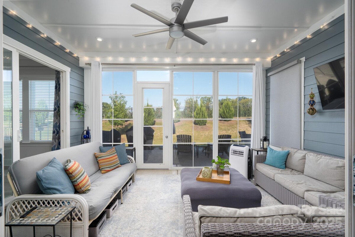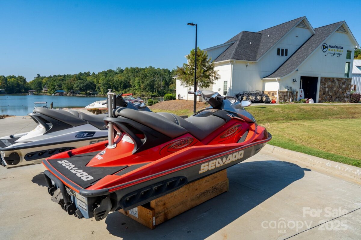 Welcome to this stunning, well-maintained home in a resort-style lakeside community near Lake Wylie’s newest marina and Drift restaurant! Move in and enjoy not just a new home, but an incredible Lake Wylie lifestyle! Inside, you’ll find three versatile spaces — two flex rooms with custom barn doors plus a dedicated office — perfect for work, play, hobbies or a 4th bedroom. The open layout features a stylish kitchen overlooking the living room, ideal for entertaining. Relax year-round in the heated and cooled sunroom, or gather outdoors on the expansive custom paver patio with fire pit gathering space, all within a private fenced backyard with no homes behind you. The oversized primary suite impresses with a spa-like bath featuring a standalone tub, frameless shower, and generous vanity. The home also offers a 3-car garage, spacious mud room/drop zone, and large laundry room. Enjoy resort-level community amenities just steps away: pool, fitness center, clubhouse, event lawn, playground, walking trails and more. This property also offers the rare chance to purchase the owners’ two jet skis, and transferable monthly dry dock storage — a great opportunity, as storage spaces typically have a waitlist. This is lakeside living at its finest — complete with optional watercraft and storage access, ready for you to start making memories today!