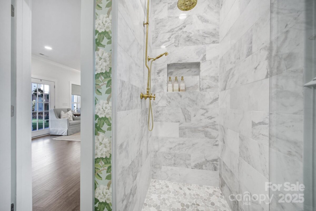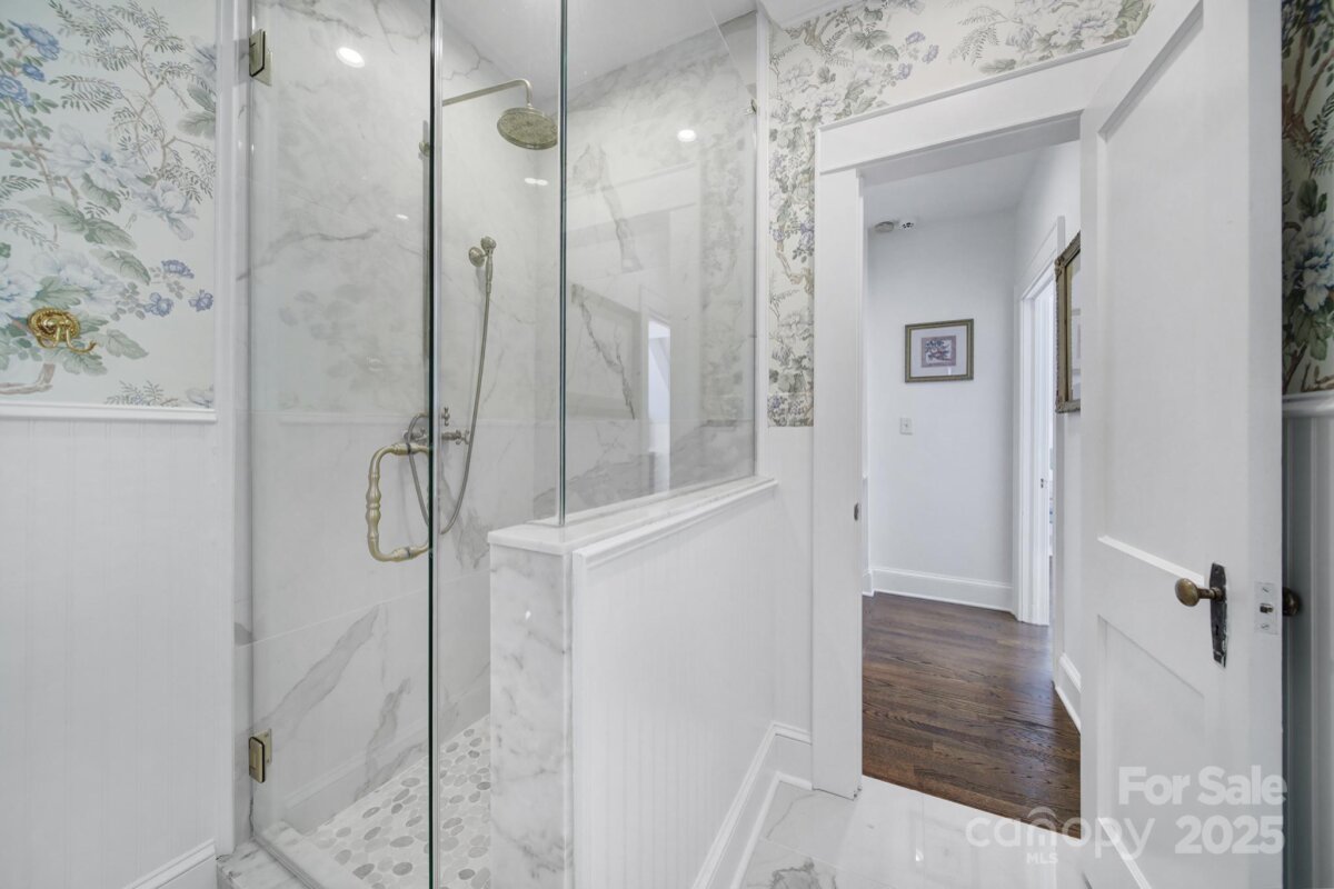 Absolutely stunning, move-in–ready bungalow with a brand-new guest house, located just steps from Chantilly Park, the greenway and walkable to Plaza Midwood and Elizabeth’s best dining and shopping. This home has been transformed over the past several years with more than $465K in thoughtful updates. The main home feels fresh and elevated throughout, thanks to full interior and exterior painting, updated fixtures, custom trimwork, and beautifully refinished hardwoods. The bathrooms have been completely reimagined, downstairs with classic tilework and designer finishes, and the primary suite with a spa-like layout featuring a soaking tub and expanded shower. Upstairs, new custom closets and an added full bath create a highly functional and luxurious private level. Outdoor living shines with a gorgeous screened porch anchored by a gas fireplace and a covered pergola and deck that extend the living space year-round. Extensive landscaping, landscape lighting, a new retaining wall, and over 2,000 sq ft of turf create a magazine-worthy backyard retreat. The newly built ADU is the crown jewel offering a full living area, kitchenette, bedroom, office, and full bath, ideal for guests, work-from-home needs or rental income. A rare opportunity to own a beautifully updated home with exceptional indoor-outdoor living and unmatched flexibility in one of Charlotte’s most beloved walkable neighborhoods.