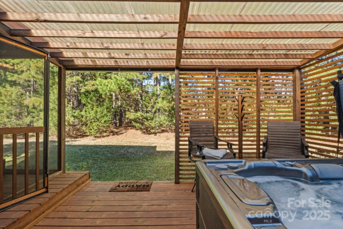 Timeless full-brick ranch offering comfort, style, and thoughtful updates throughout. This 3-bedroom, 2-bath home features freshly painted interiors and solid hardwood floors across all living areas. The kitchen is highlighted by elegant Sky Cambria quartz countertops, while Sun Tunnels in the living room and primary bath fill the home with natural light. Step outside to enjoy over 400 square feet of outdoor living space, including a screened deck and a modern pergola overlooking a beautifully landscaped yard. The private spa area features a 2025 Jetsetter Lx hot tub from Hot Spring’s Highlife Collection—an ideal spot to unwind at the end of the day. Additional highlights include a 16 SEER gas pack HVAC system (2020), 6-inch black gutters (2022), walk-in attic space with insulated entry, offering generous vertical space for easy storage.** NO HOA**, and LOW Union County taxes. Conveniently located near shopping, dining, and grocery stores, with easy access to Highway 74 for a direct route to Uptown Charlotte.