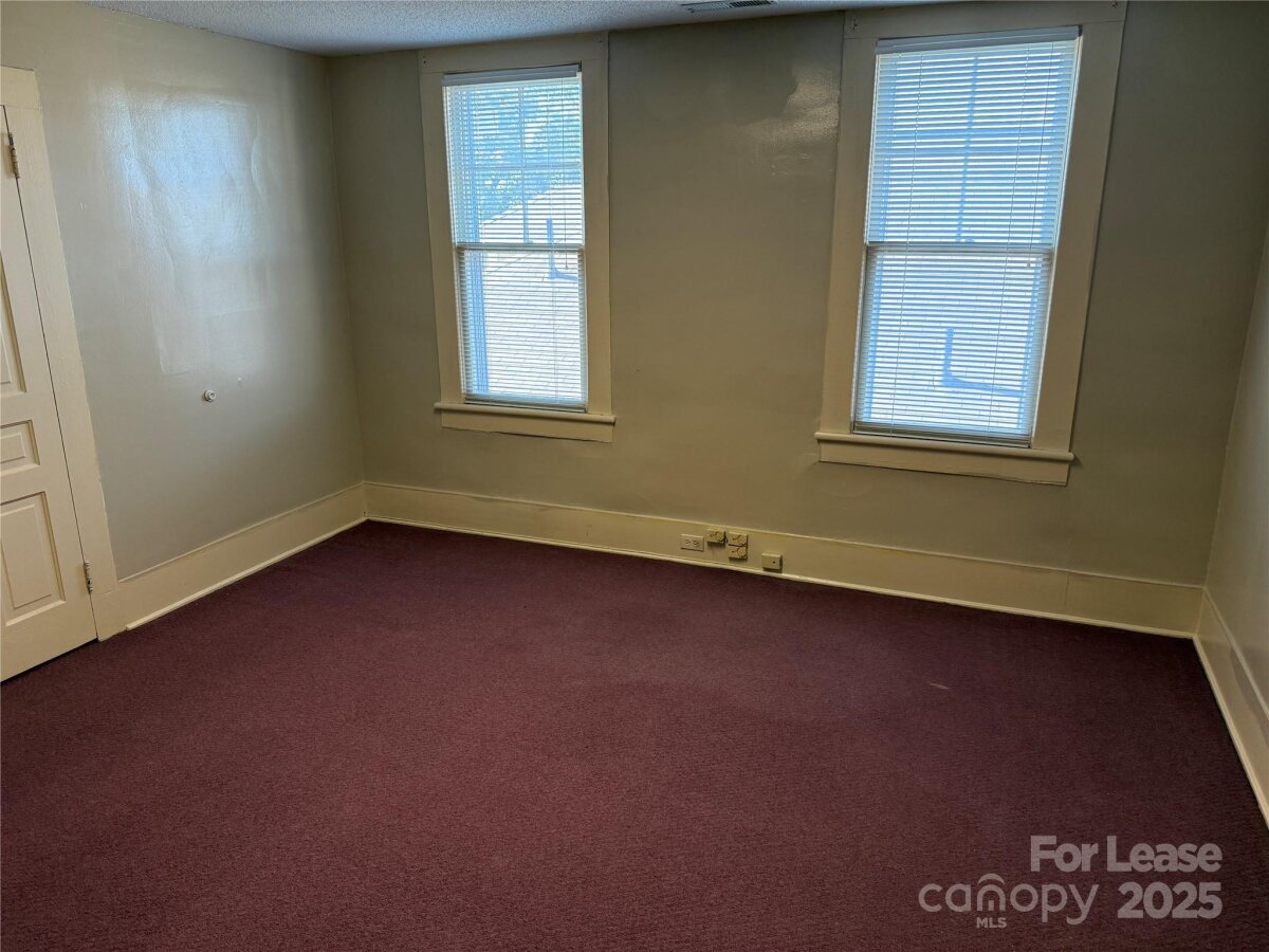 Great office space in Downtown Statesville! This 2,600+ sq ft building is located across from the Iredell County Courthouse and has on-site parking. The main level offers five private offices/rooms, a break room, two bathrooms and a waiting area/room. The upper level has three offices/rooms (2 of the rooms have walk-in closets/storage area) and one bathroom. The office space has some original hardwood flooring, LOTS of character and tons of natural light. The basement area does have a storage area. Nice downtown location with lots of visibility on both Davie Avenue and Water Street!