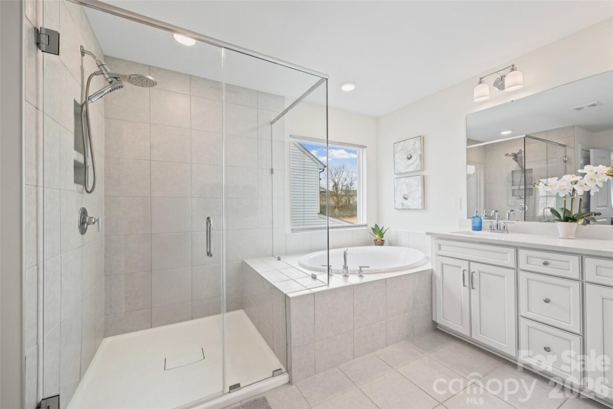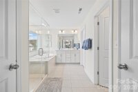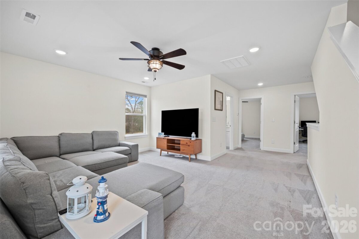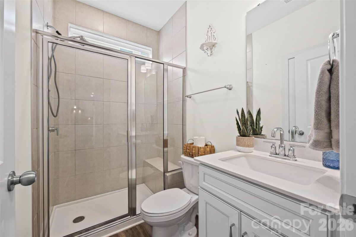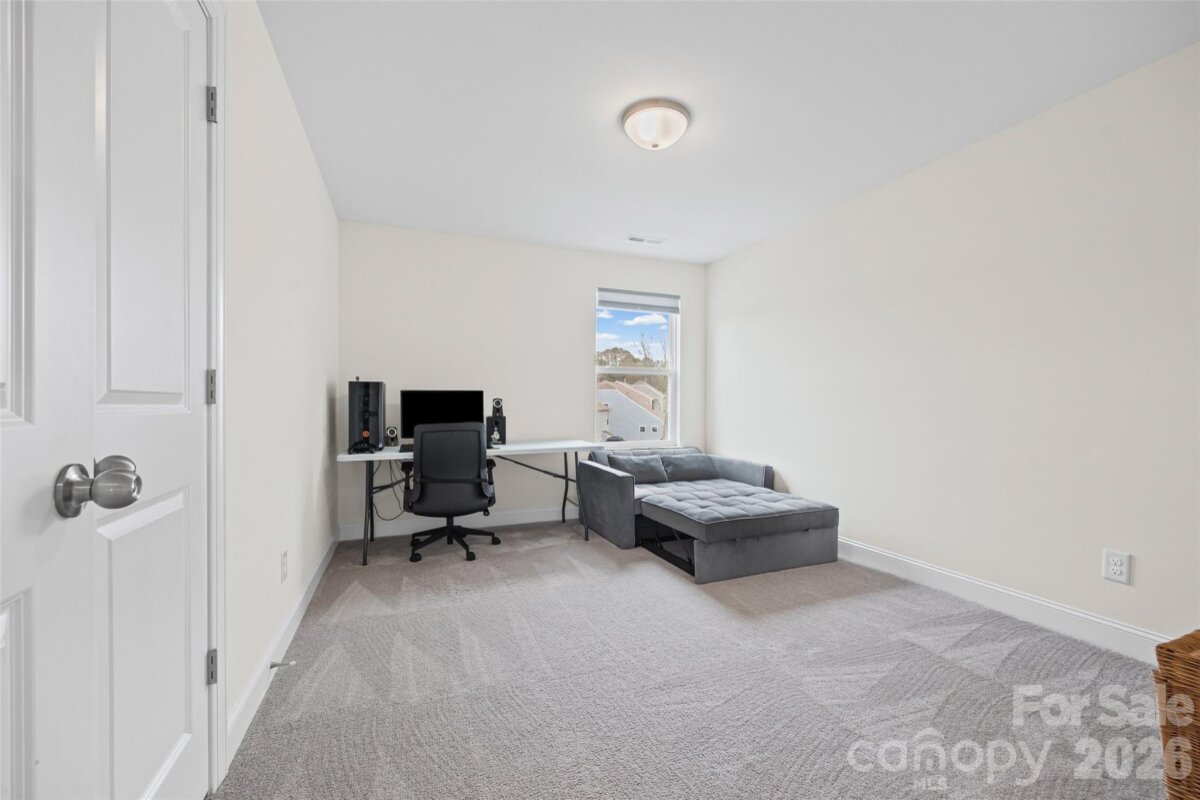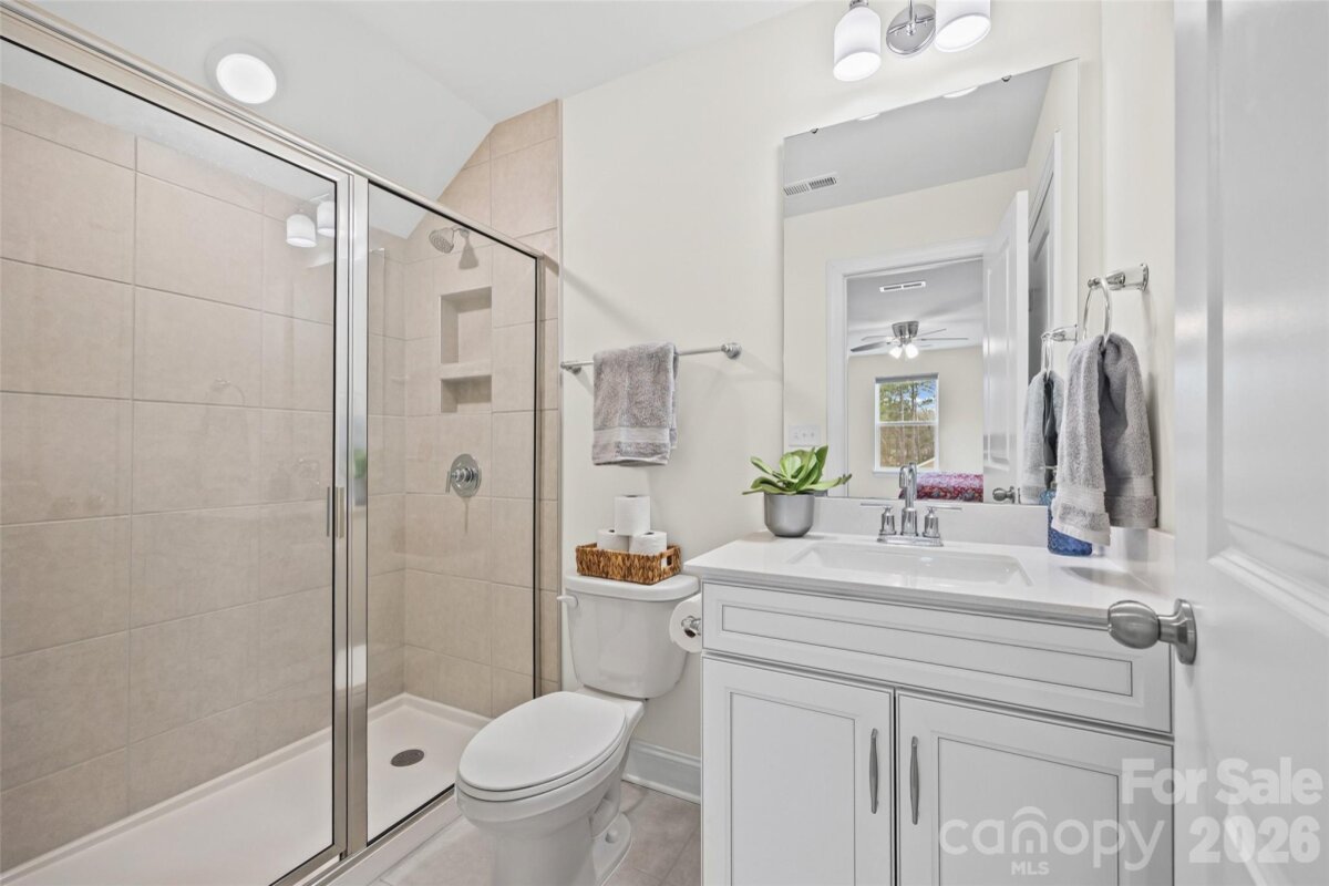 Welcome to this beautifully built 2023 home in the desirable Winterlake community offering three spacious levels of thoughtfully designed living space. Situated on a corner lot with a fenced yard, this 5-bedroom, 4-bath home blends functionality with modern style. A charming covered front porch welcomes you into a bright foyer accented with elegant wainscoting. Just off the entry, a dedicated office with French doors provides the perfect work-from-home space. The main level features luxury vinyl plank flooring throughout and an inviting living room with a cozy gas fireplace. The open-concept kitchen is designed for both everyday living and entertaining, complete with a large island, gas range, quartz countertops, tiled backsplash, and pantry. A main-floor bedroom with access to a full bath offers flexibility for guests or multi-generational living. Upstairs on the second level, you’ll find a spacious loft area that opens to a private balcony - a perfect spot to unwind. The primary suite is a true retreat, featuring a spa-like en suite with glass shower enclosure, soaking tub, double vanities, separate water closet, and a generous walk-in closet. The third floor offers even more versatility with a private bedroom and full bath, ideal as a guest suite, bonus room, or additional living space. Enjoy outdoor living on the back deck overlooking the fenced yard, plus the added benefit of custom window blinds already in place throughout the home. Ideally situated with quick access to Interstate 85 and just minutes from shopping, dining, and everyday essentials. A short commute to Charlotte, plus proximity to Crowders Mountain State Park and local parks, makes this location both convenient and lifestyle-friendly.