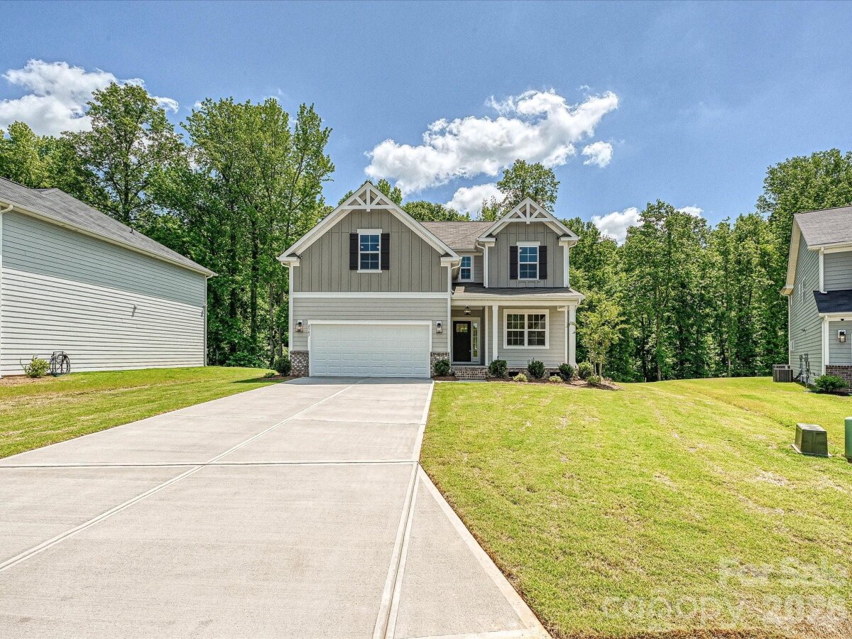 Buyer incentives available; contact us for details. Enjoy the wooded private view from your large deck in this charming cul-de-sac home in Gastonia, offering easy access to the Charlotte airport & I-85. The 1st floor has a Flex room with French doors, large storage closet & mudroom w/ drop zone, and a nice open layout with plenty of windows. Large pantry off the L-shaped Kitchen, offering quartz counters, tile backsplash, 42" white cabinets, GE Cafe stainless steel appliances w/ gas range, double trash pullout & island. The Kitchen flows to the dining area and Family room. Upstairs is a Bonus room for additional gathering space & 2 secondary bedrooms with walk-in closets. Spacious Premier Suite has a tray ceiling & walk-in closet, plus bathroom with large tiled shower with semi-frameless glass, quartz counter with matching backsplash, tiled floors & stained cabinets. Low maintenance LVP throughout the main floor, 2nd floor hall & laundry, with oak treads on stairs. Guest bath offers a raised-height vanity with quartz counter & matching backsplash with tiled floor. Save on energy costs with the tankless hot water heater & radiant barrier sheathing. The exterior features composite painted siding with brick accents, a covered front porch, and a crawl space foundation. Community pool & tot lot! Minutes from the local YMCA, grocery, dining, and more. About 30 minutes to Uptown Charlotte, for sports, concerts and so much more.