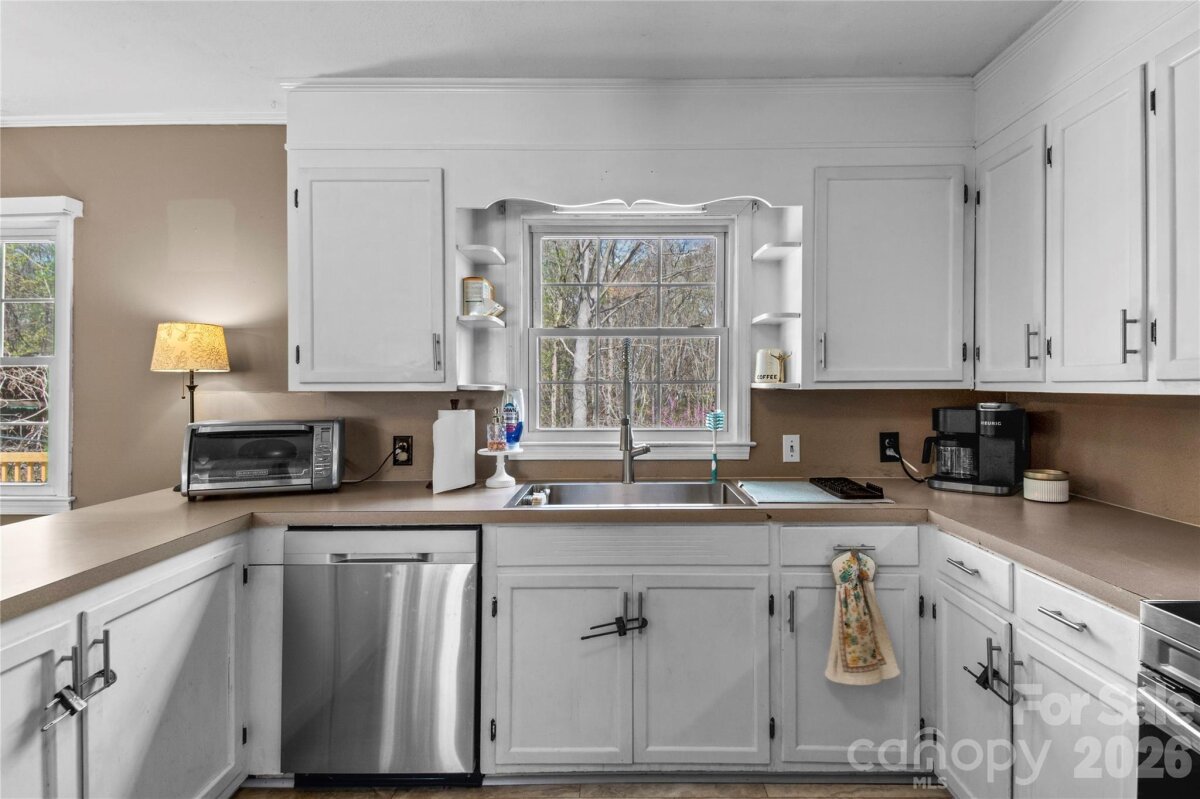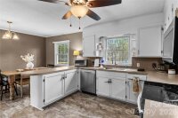 Welcome to this 3-bed, 1-bath ranch, featuring beautiful hardwood floors and a cozy fireplace great for relaxing at home. The kitchen is complete with 2025 stainless steel appliances, providing a modern touch. One of the bedrooms includes a convenient in-room laundry setup with a washer and dryer (2024), while an additional washer and dryer hookup is also available in the waterproofed basement for added flexibility. Outside, you can enjoy your morning coffee on the front porch or the back deck overlooking the fenced-in yard. With an attached carport, updated windows, a roof from 2016, and a regularly serviced HVAC system, this well-loved home is ready for its next chapter! This home is located in Elkin school district, near parks, wineries, restaurants, shopping, and all the charm of downtown plus, situated in a golf cart friendly community!