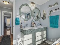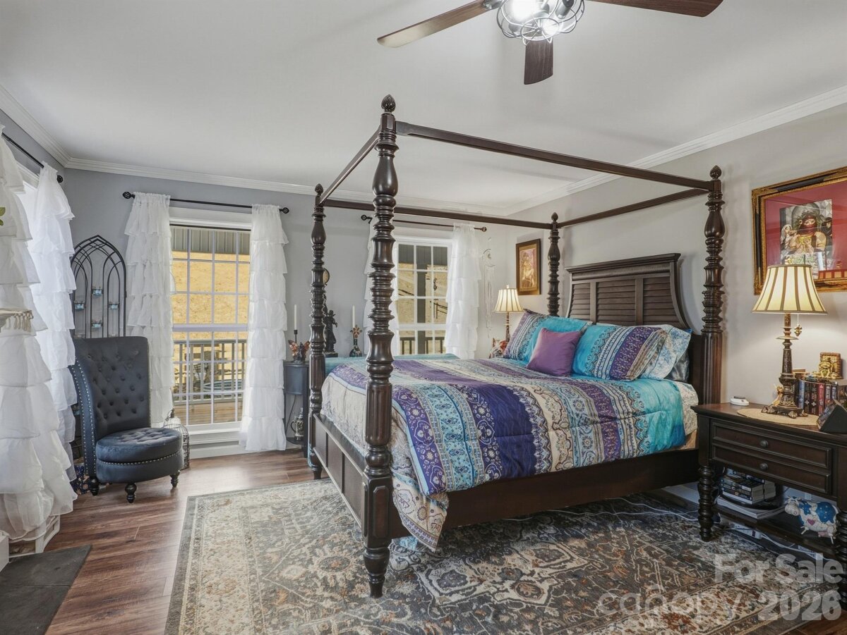 This one-of-a-kind, private, lakefront home situated on a stunning 4.66-acre lot offers the perfect blend of seclusion and natural beauty. Soaring cathedral ceilings flood the home with light and create an inviting atmosphere. The cozy living room features a wood-burning fireplace ideal for gatherings, while the primary bedroom offers its own charming wood-burning fireplace for ultimate relaxation. Upstairs, find two additional spacious bedrooms, a large full bathroom, and a flexible bonus/office room. Key highlights include two wood-burning fireplaces total, a walk-in pantry, and a partially finished walk-out basement with double French doors opening to a serene patio in the fenced backyard — perfect for outdoor entertaining, morning coffee, or simply enjoying the tranquil surroundings. Step outside to breathtaking natural surroundings: a picturesque gravel driveway lined with flourishing fruit trees (peach, pear, plum, and apple), a meandering natural spring, and direct lake frontage with a dockable shoreline on Lake Lookout. Water enthusiasts will love the easy access to a nearby public boat launch for fishing, kayaking, boating, and more. Additional practical features: a computerized well with filtration system, outdoor gas hot water heater with circulation for instant hot water, and a detached heated/cooled two-car garage PLUS an ON-GRID 61" x 91" 800 WATT SOLAR PANEL. The property is accessed via two driveways (one concrete, one gravel) for added convenience and privacy. As a unique bonus, it includes a custom-built, whimsically decorated Gypsy Cart for your own special escape! This exceptional home is more than just a residence — it's a peaceful lifestyle retreat where every day feels like a vacation. Close to parks, shopping, and outdoor recreation in the desirable Statesville area. An exceptional opportunity to own water lake property for under $1,000,000! Transferable home warranty! The wood Planer, Table Saw, Generator, Air Compressor, 3D printer, window AC units are not for sale and do not convey.