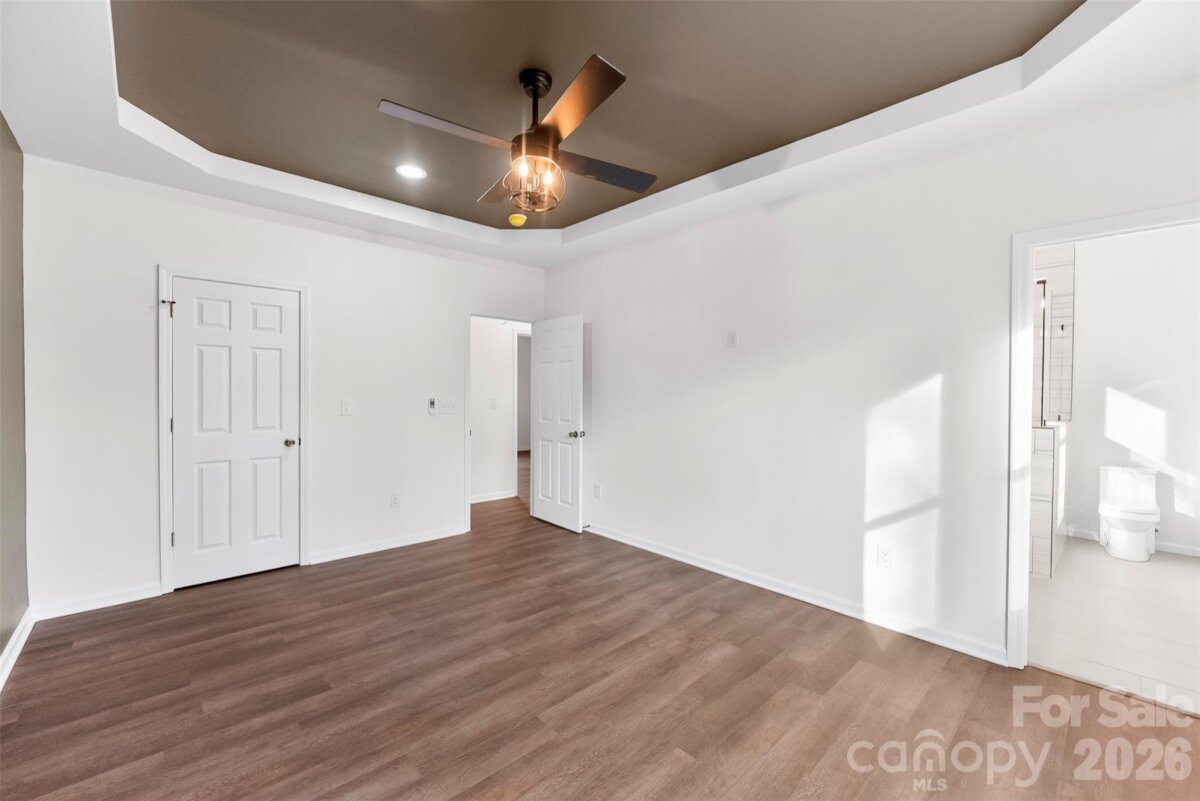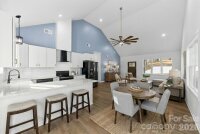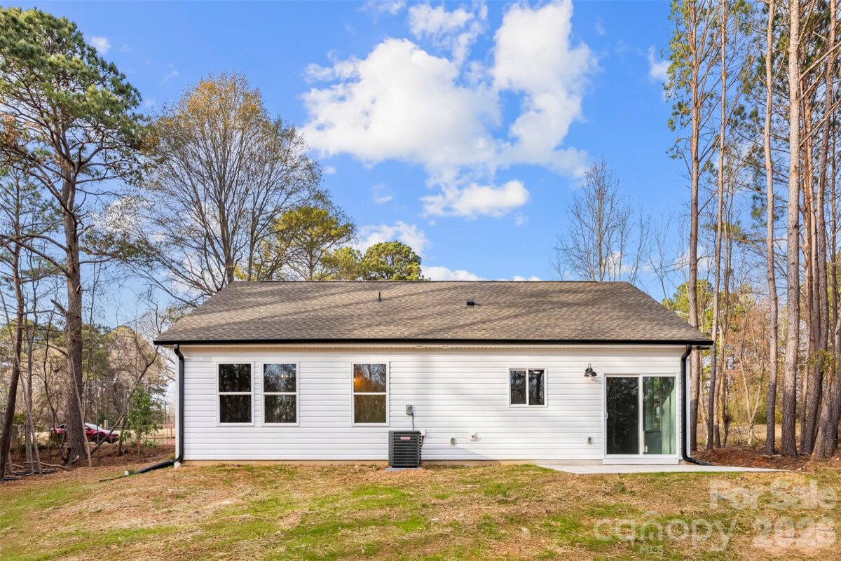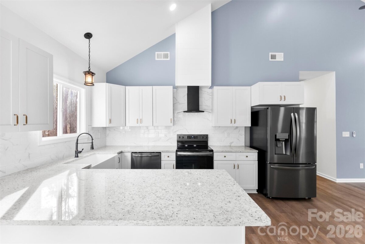 From the moment you pull up, this stunning new-construction ranch feels different. A charming front porch sets the tone, inviting you to slow down and step inside. Once through the door, the home opens up into a bright, airy living space where vaulted ceilings, wide-plank LVP flooring, and abundant natural light create an effortless sense of comfort and style. The heart of the home is the show-stopping kitchen, designed for real life and real gatherings. A large island anchors the space, offering plenty of seating for weeknight dinners, weekend entertaining, or casual conversations. Soft-close cabinetry, granite countertops, a farmhouse sink, custom tile backsplash, and a statement vent hood come together in a way that feels both timeless and modern. Mornings start easily here—coffee at the dining table or stepping through the sliding glass doors to the patio as sunlight pours in. Evenings wind down in the private primary suite, complete with a tray ceiling, accent wall, ceiling fan, and two closets, including a spacious walk-in. The en-suite bath feels like a retreat, featuring dual vanities with granite counters and a beautifully finished oversized glass-and-tile shower with rainhead faucet. Every detail in this home was thoughtfully selected, offering custom touches and quality craftsmanship rarely found at this price point. This home is designed to be lived in, loved, and enjoyed, all with the freedom of close access to Shelby and Kings Mountain.
