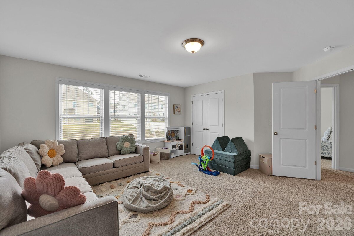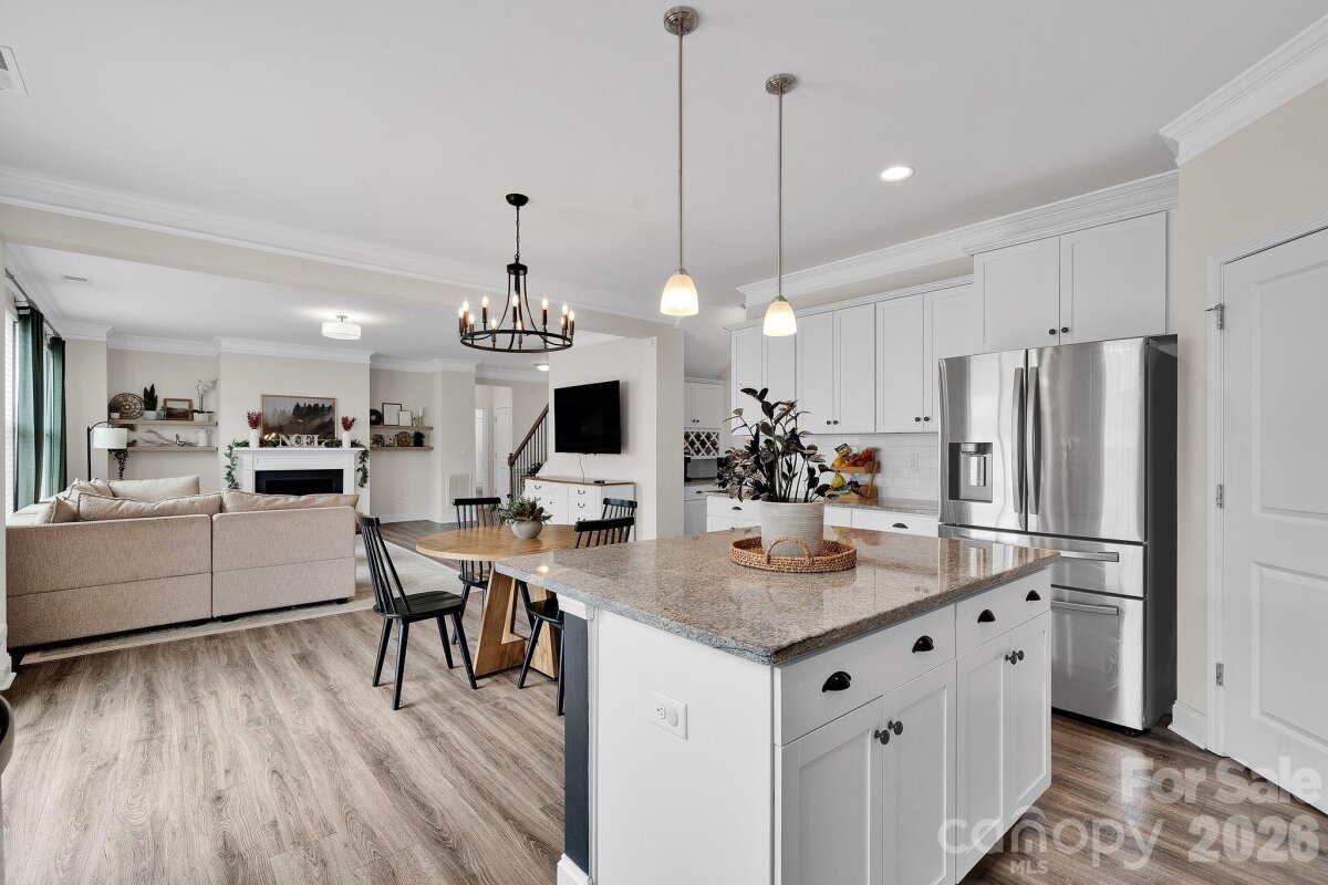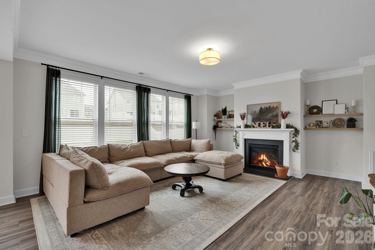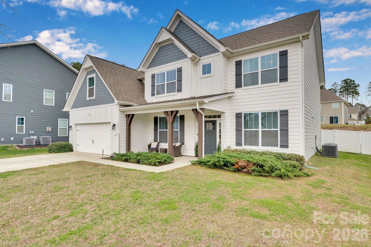 Welcome to Cypress Point! This spacious two-story home offers over 3,500 square feet with 5 bedrooms and 4 full bathrooms. The main level features an open floor plan with luxury vinyl plank flooring, a dining room with coffered ceiling, a private office, and a bedroom with a full bath attached. The kitchen includes granite countertops, stainless steel appliances, a large island, and a butler’s pantry, opening to the living area with a gas fireplace. Upstairs, the primary suite is accompanied by additional bedrooms, bathrooms, and a versatile loft space that can be used as a bonus room, office, or additional sleeping area. Outdoor living includes a fenced backyard with an extended patio and fire pit area. The home sits on a cul-de-sac lot and includes a two-car attached garage. Community amenities include pool, playground, fitness center, tennis courts, and sidewalks. Located near shopping, dining, and recreation around Lake Wylie, with convenient access to Charlotte and Charlotte Douglas International Airport.