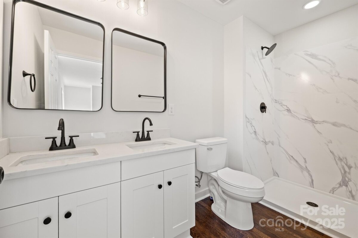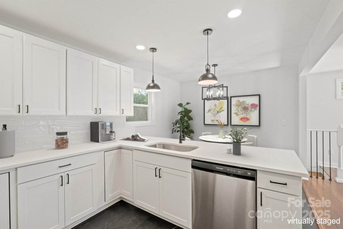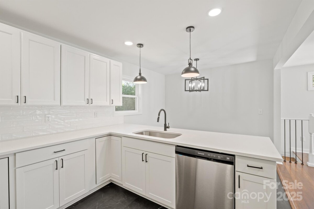 Welcome to this beautifully updated home featuring 3 bedrooms and 3 full baths, and a grand finished walkout basement located in the desirable University Park neighborhood of Charlotte, NC with NO HOA. Renovated in 2025, this move-in ready home perfectly combines elegant modern upgrades with functional design and comfortable living. Recent upgrades include a new roof, new electric water heater, and new heat pump—all installed in 2025 for your peace of mind and energy efficiency. Sunlight floods through large scenic view windows, highlighting the brand-new hardwood flooring throughout the living room, hallway, and main-level bedrooms, while durable and stylish LVP flooring graces the kitchen, breakfast area, bathrooms, and finished basement. The updated kitchen is a chef’s dream featuring gleaming granite countertops, a chic tile backsplash, crisp white cabinetry, and stainless steel appliances. The primary bedroom on the main level offers a luxurious en suite bathroom and a walk-in closet, with Bedroom #2 also conveniently located on the main floor and equipped with its own walk-in closet. The finished walkout basement adds significant living space with a private third bedroom (can also serve as an additional primary bedroom) complete with an en suite bath showcasing a dual vanity and shower/tub combo, cozy large 2nd living room area, and abundant storage. Outside, enjoy a spacious backyard and patio - perfect for quiet times at home or for entertaining. Backyard storage shed conveys with the home. This move-in ready beauty is convenient to major highways, shopping, dining, entertainment, and minutes from Uptown Charlotte! Don’t miss your chance to own this gem in Charlotte!