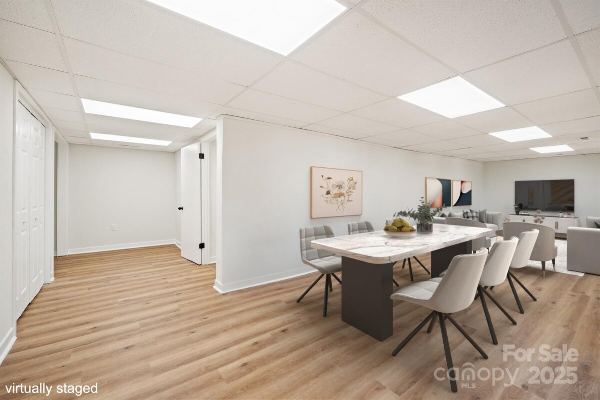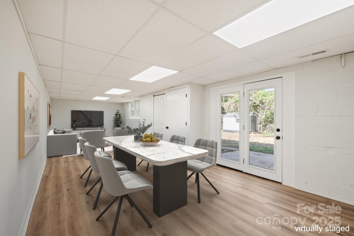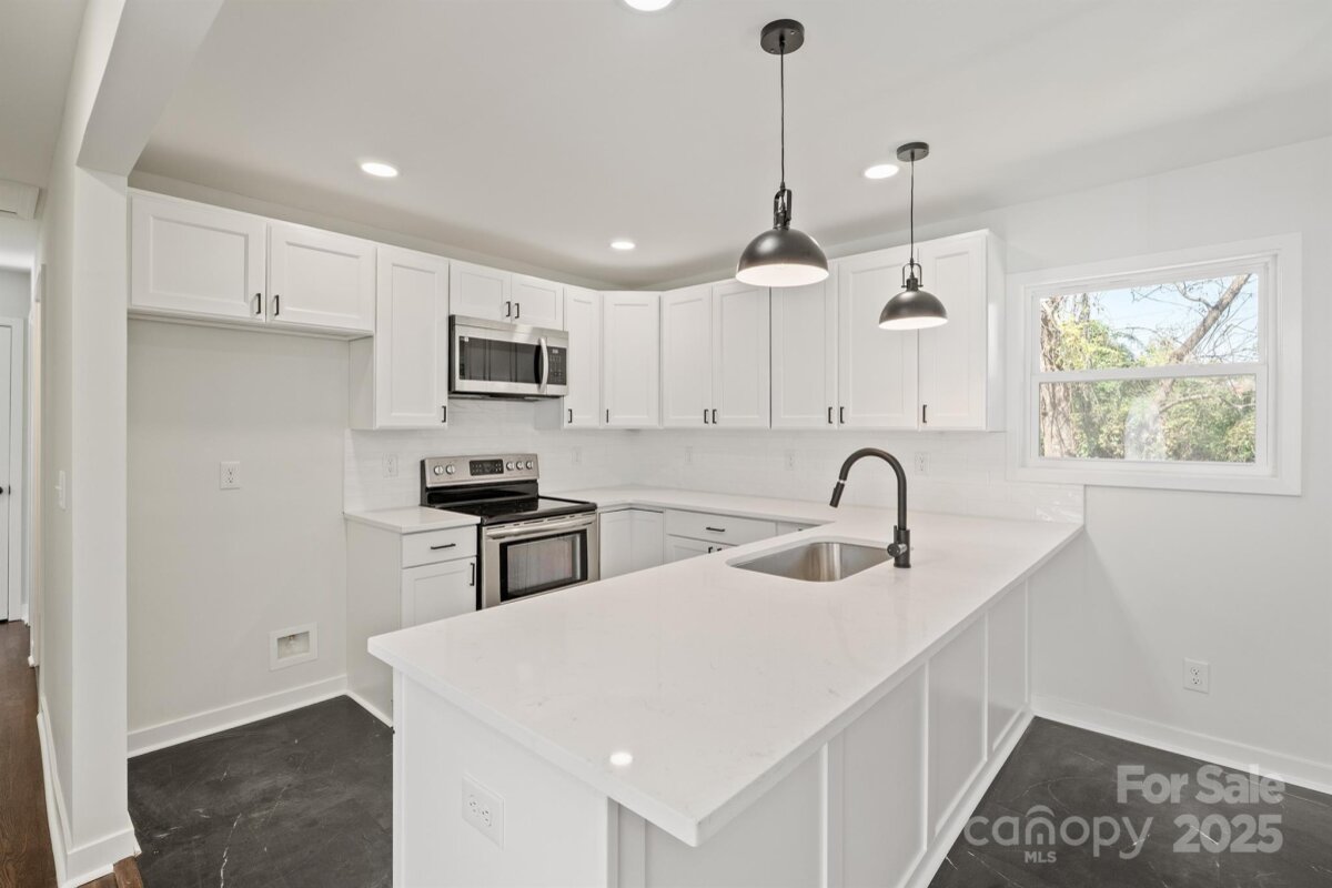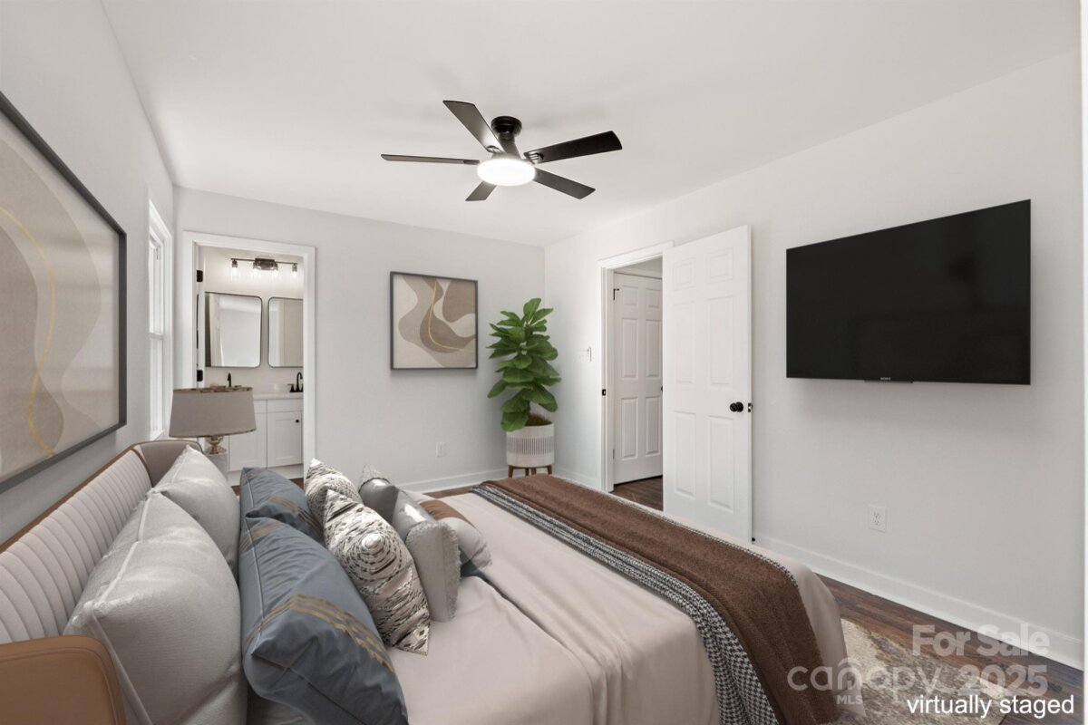Welcome to this beautifully updated home featuring 3 bedrooms and 3 full baths, and a grand finished walkout basement located in the desirable University Park neighborhood of Charlotte, NC with NO HOA. Renovated in 2025, this move-in ready home perfectly combines elegant modern upgrades with functional design and comfortable living. Recent upgrades include a new roof, new electric water heater, and new heat pump—all installed in 2025 for your peace of mind and energy efficiency. Sunlight floods through large scenic view windows, highlighting the brand-new hardwood flooring throughout the living room, hallway, and main-level bedrooms, while durable and stylish LVP flooring graces the kitchen, breakfast area, bathrooms, and finished basement. The updated kitchen is a chef’s dream featuring gleaming granite countertops, a chic tile backsplash, crisp white cabinetry, and stainless steel appliances. The primary bedroom on the main level offers a luxurious en suite bathroom and a walk-in closet, with Bedroom #2 also conveniently located on the main floor and equipped with its own walk-in closet. The finished walkout basement adds significant living space with a private third bedroom (can also serve as an additional primary bedroom) complete with an en suite bath showcasing a dual vanity and shower/tub combo, cozy large 2nd living room area, and abundant storage. Outside, enjoy a spacious backyard and patio - perfect for quiet times at home or for entertaining. Backyard storage shed conveys with the home. This move-in ready beauty is convenient to major highways, shopping, dining, entertainment, and minutes from Uptown Charlotte! Don’t miss your chance to own this gem in Charlotte!