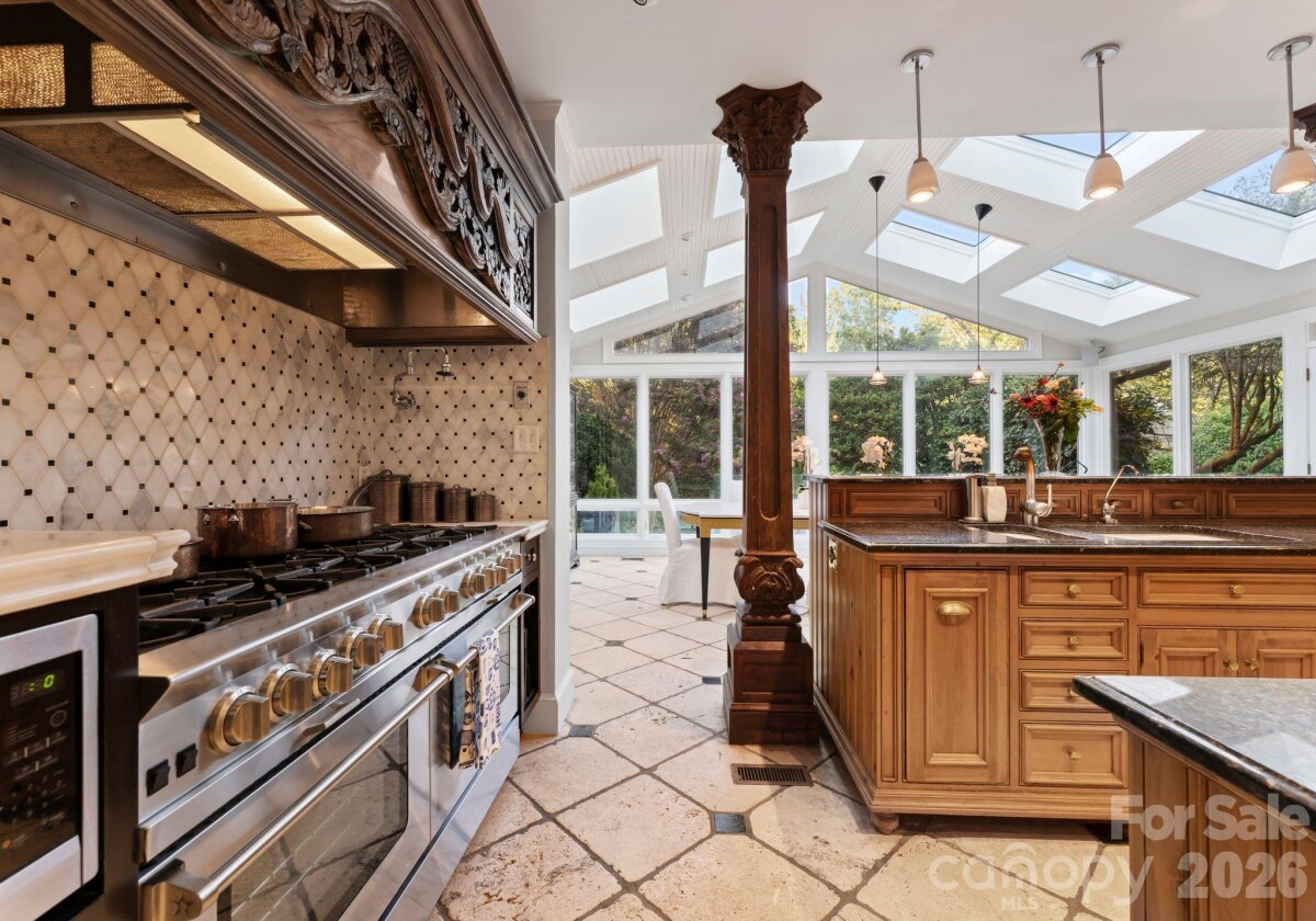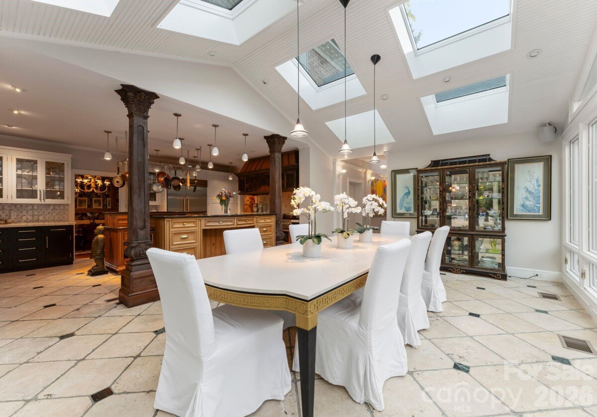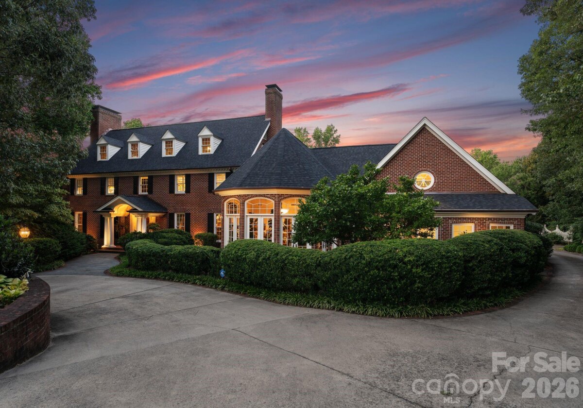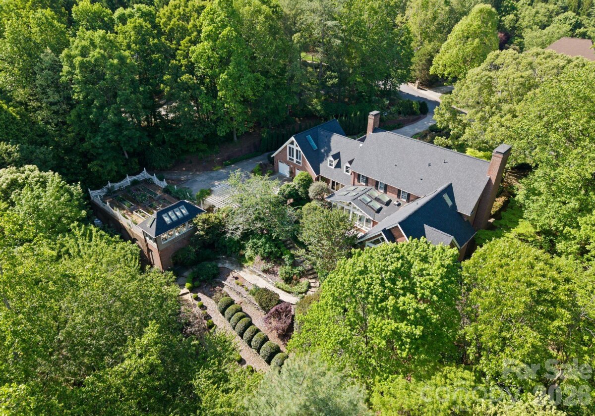 Discover a striking masterpiece of timeless luxury in the heart of Northwest Hickory, NC. Perfectly positioned for both tranquility and accessibility, this prestigious residence is located just around the corner from the Lake Hickory Country Club, 30 miles from the scenic Blue Ridge Mountains (Blowing Rock), and an hour from the bustling energy of Charlotte. This captivating two-acre estate has unparalleled grounds featuring European inspired gardens, a professional greenhouse, a brick wine cellar, and paths that meander to a beautiful park like grassy area by a live stream with boulders and two bridges. This prestigious residence boasts a main floor, stunning primary suite with vaulted ceilings, two full baths and two custom walk-in closets, a chef's kitchen with dual islands and a BlueStar range, expansive eat-in dining area with a wall of windows overlooking the rear terrace, a breathtaking solarium, multiple living rooms with fireplaces, a second primary bedroom suite, media room, spacious art studio and more. Offering an unmatched blend of natural beauty, refined craftsmanship, and inspired living, this estate is a rare opportunity to own one of the area’s most distinguished and enchanting properties.