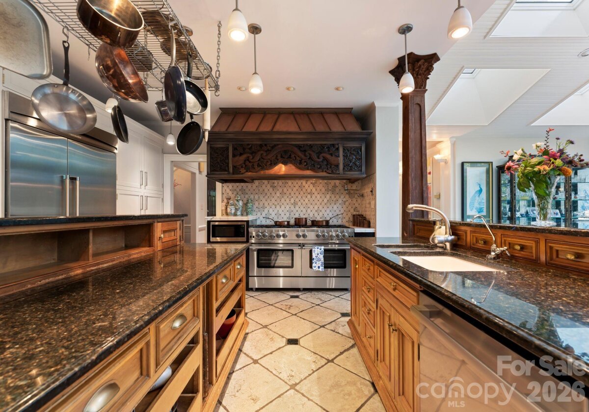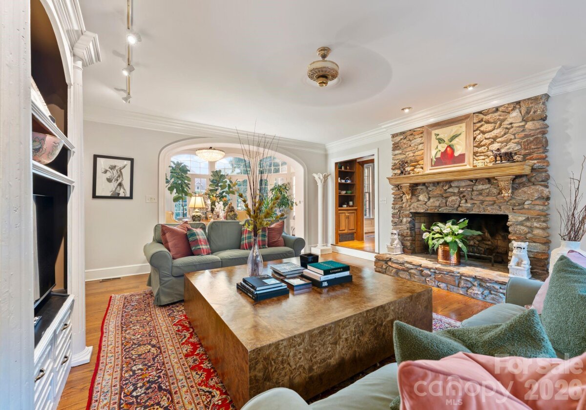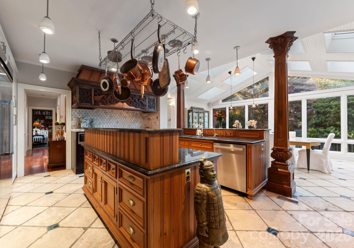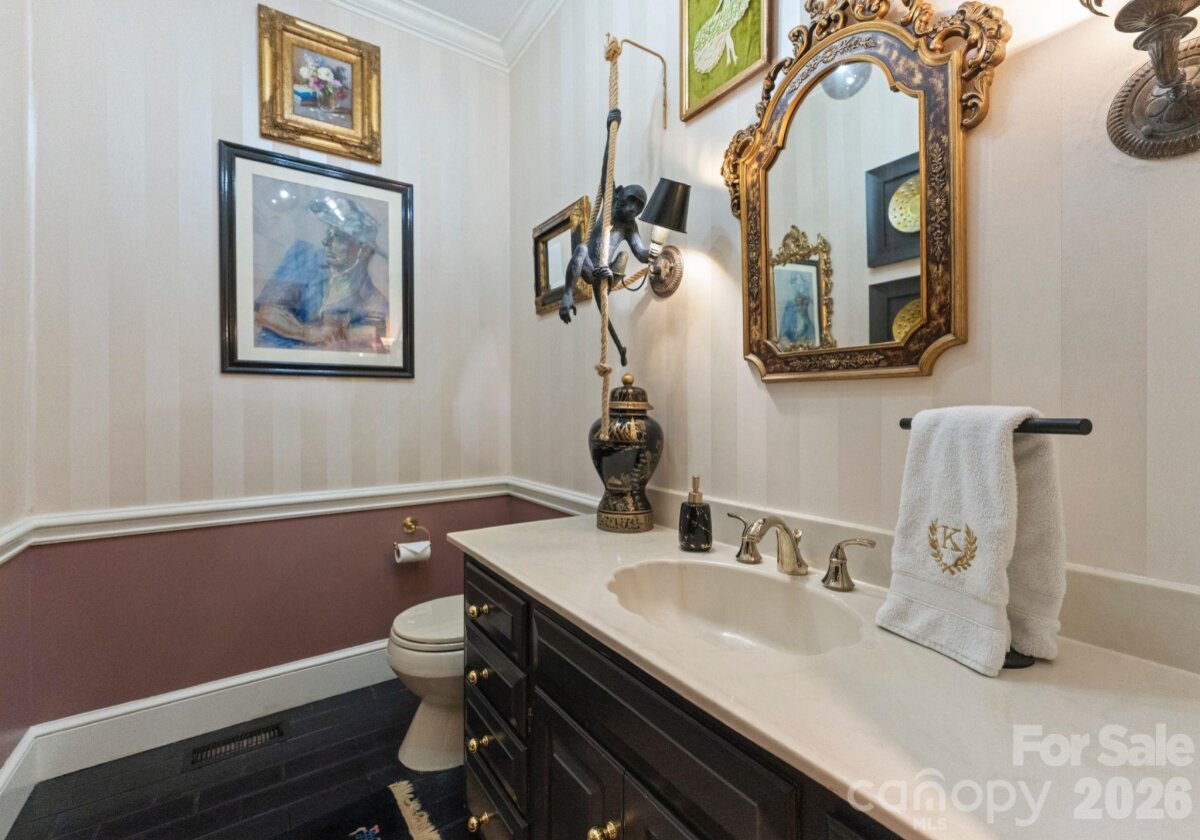 Discover a striking masterpiece of timeless luxury in the heart of Northwest Hickory, NC. Perfectly positioned for both tranquility and accessibility, this prestigious residence is located just around the corner from the Lake Hickory Country Club, 30 miles from the scenic Blue Ridge Mountains (Blowing Rock), and an hour from the bustling energy of Charlotte. This captivating two-acre estate has unparalleled grounds featuring European inspired gardens, a professional greenhouse, a brick wine cellar, and paths that meander to a beautiful park like grassy area by a live stream with boulders and two bridges. This prestigious residence boasts a main floor, stunning primary suite with vaulted ceilings, two full baths and two custom walk-in closets, a chef's kitchen with dual islands and a BlueStar range, expansive eat-in dining area with a wall of windows overlooking the rear terrace, a breathtaking solarium, multiple living rooms with fireplaces, a second primary bedroom suite, media room, spacious art studio and more. Offering an unmatched blend of natural beauty, refined craftsmanship, and inspired living, this estate is a rare opportunity to own one of the area’s most distinguished and enchanting properties.