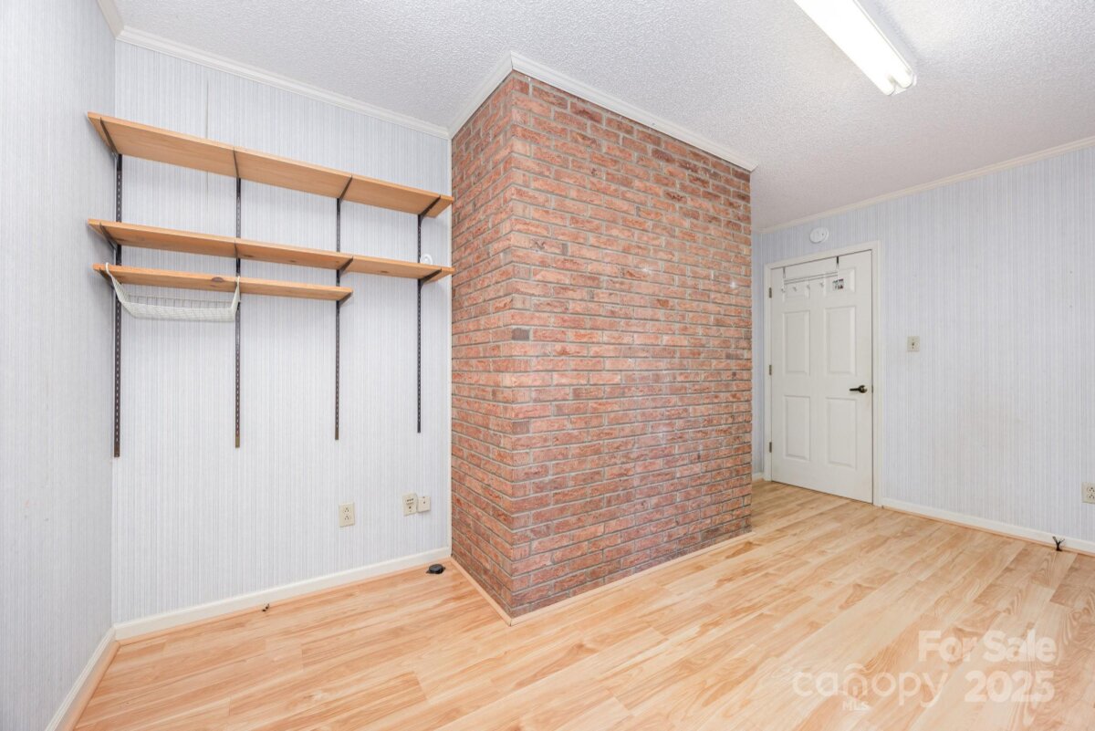 Step into a palatial great room with its beautiful gas-log fireplace, intricate crown molding, 10-foot ceilings, and classic parquet floors! Beyond the French doors, a concrete deck awaits, leading to a spacious back yard with mature trees, room for a garden, and a lawn in which to lounge. An inviting sunroom also opens onto the concrete porch, providing a wonderful area for entertaining. You will find the bedrooms at the front of the house, separated by an entrance hall. The primary suite includes a walk-in closet, a separate shoe closet, and a bathroom with a vanity area and jetted-tub. Two other bedrooms share a full bath in-between. One has a very private office attached. At the other end of the house is a well-appointed laundry room that includes plenty of cabinet space, a folding counter, and a pull-down ironing board. Underneath the house is a walk-in crawl space, recently upgraded with a barrier and new insulation, and featuring a concrete floor, easy access to mechanical systems, and a handy storage area. This custom-built, one owner home, has many thoughtful details to make it truly special. Come, see, and make it yours!