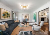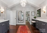 Located in the heart of Old Foxcroft—one of Charlotte’s most prestigious neighborhoods—2415 Knollwood Road combines timeless sophistication with extensive modern updates, just moments from top schools, SouthPark, and the city’s premier shopping and dining. Renovations completed between 2018 and 2023 elevated every detail, with designer finishes, custom trimwork, and crown molding throughout. The main level offers versatile living and entertaining spaces, from the welcoming lounge to the family room with its arched, wood-paneled ceiling and expansive sliding glass doors that open seamlessly to the rear patios. The recently renovated chef’s kitchen and charming breakfast area flow into the versatile living/dining room, while a chic bar area adds speakeasy-inspired style. The luxurious primary suite features backyard views, dual vanities, a cosmetic station, an oversized marble shower, and a custom walk-in closet, while a spacious guest suite with a private bath offers a private retreat for guests. Upstairs, three additional guest suites are joined by a large entertainment area and a versatile bonus room, currently utilized as a home gym. Outside, tiered stone patios, a covered lounge with motorized shades, a sport court, and a fire pit area create an exceptional setting for both entertaining and everyday living. With modern updates and a coveted Old Foxcroft address, this home presents a rare opportunity in one of Charlotte’s most desirable communities.