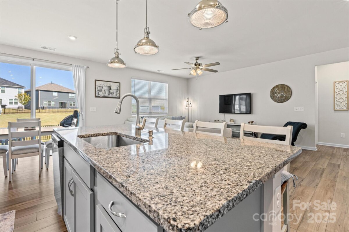 Discover the charm of easy, single-level living in this welcoming 4-bedroom, 2-bath RANCH in the desirable Waxhaw Landing community. Perfectly set on a homesite that backs to peaceful community green space, this home offers both privacy and connection. A cheerful covered front porch, stone & brick accents and decorative shakes, create instant curb appeal. Inside, sunlight fills the open-concept living areas where the Kitchen features soft gray cabinetry, granite countertops, and stainless-steel appliances—a stylish and functional space for cooking and gathering. Low maintenance LVP flooring in main living areas. Just off the Garage entry, the custom built-in drop zone keeps everyday essentials organized. The Primary Suite is a private retreat with a walk-in closet and a spa-style tiled super shower with a built-in seat and transom window. Step outside to the rear concrete patio AND fenced backyard overlooking the community green space, perfect for weekend barbecues, playtime, or peaceful evenings. Community amenities include an outdoor pool, cabana, picnic pavilion, sidewalks, and streetlights - all just minutes from historic downtown Waxhaw, Monroe, and an easy drive to Charlotte.