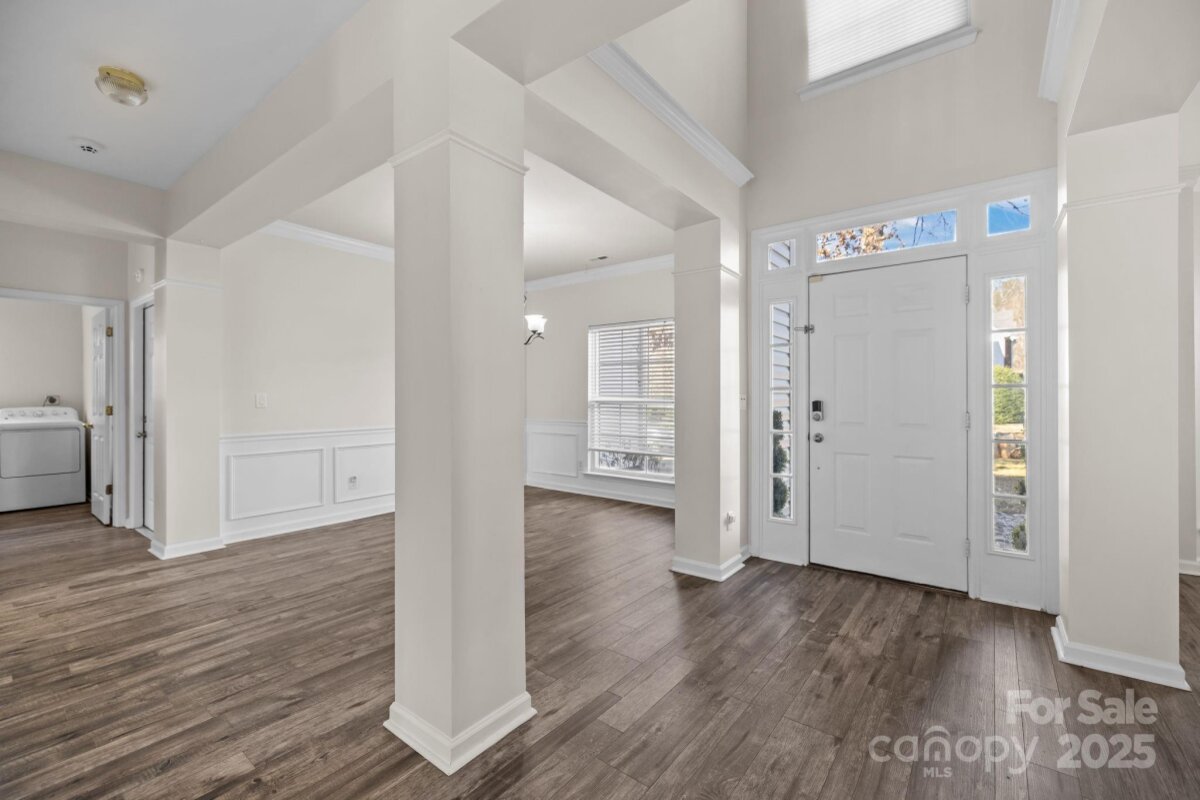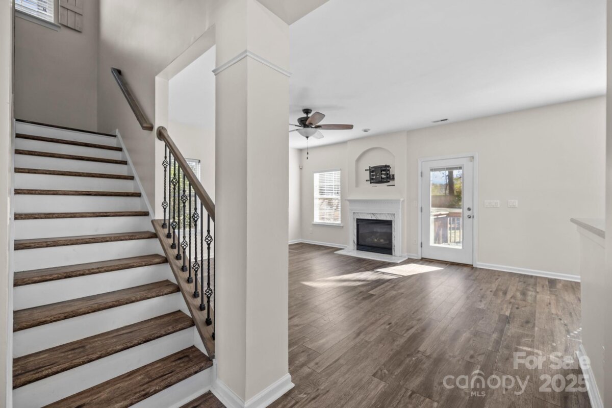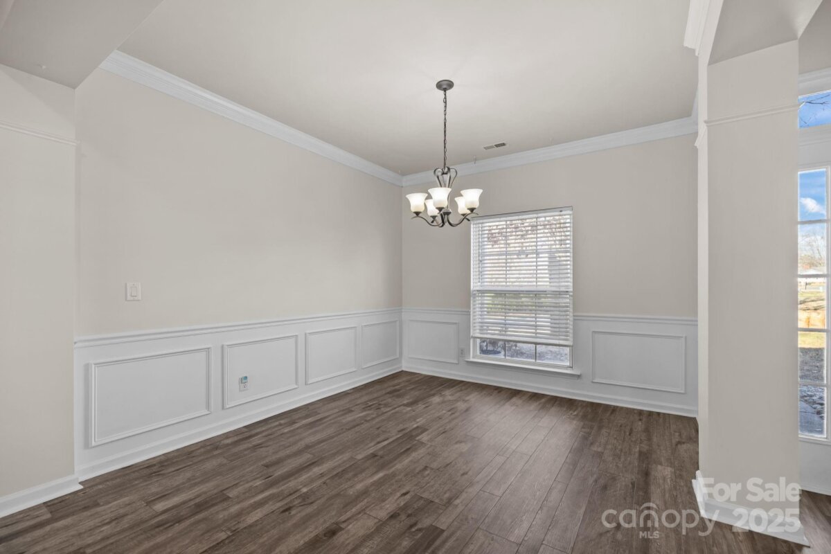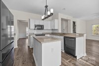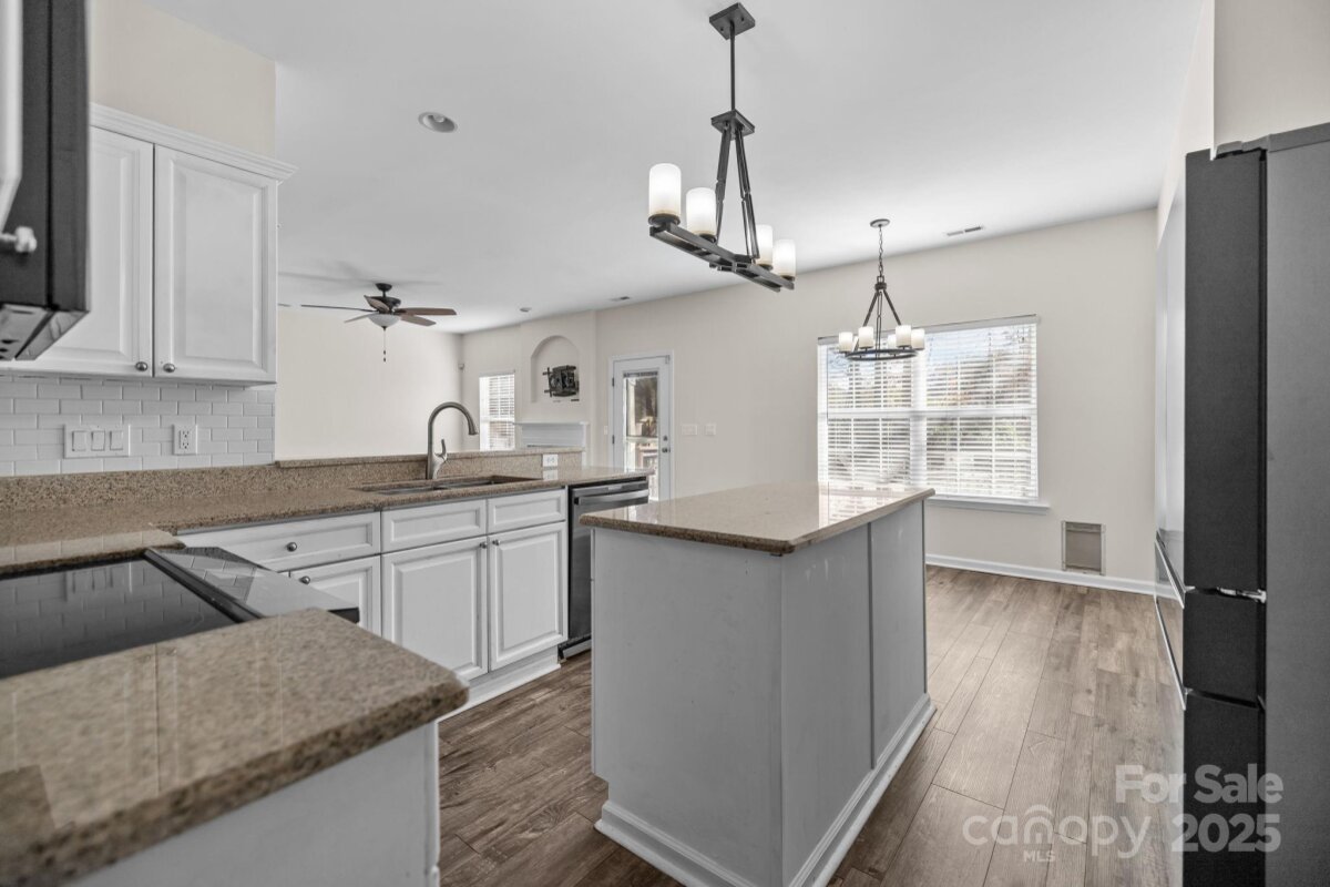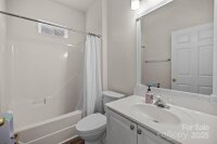 Beautiful 6 bed/3 bath home in Matthews Commons. The layout offers excellent functionality: upon entering, a dining room is to your right and a versatile flex/office space is to your left, leading into the open-concept living room and kitchen. The kitchen features granite countertops and new slate appliances that convey and a dedicated breakfast nook. The living room includes a gas fireplace for colder days. Durable LVP flooring extends throughout most of the home. A convenient guest bedroom, full bath, and the laundry room are located on the main floor. Upstairs, the large primary suite includes a double vanity, separate tub and shower, and an expansive walk-in closet, accompanied by four additional bedrooms. Outside, the private, fully fenced-in backyard is ideal for entertaining and provides ample storage with a large, newer shed that conveys. Make your appointment today!