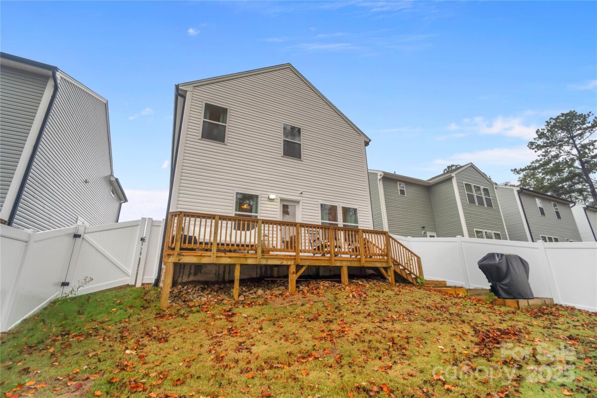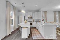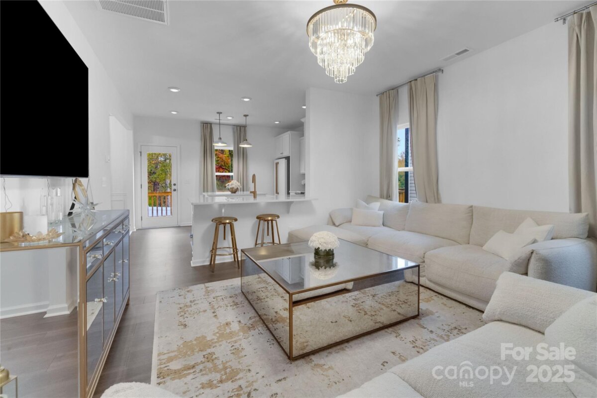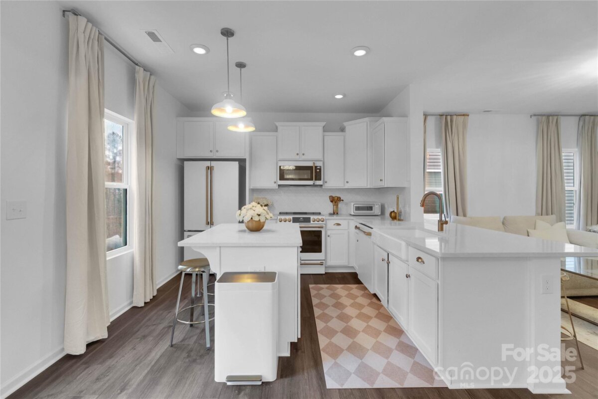 Experience modern luxury in this nearly new, less than a year old home that combines style, functionality, and thoughtful updates. The open floor plan creates a welcoming and spacious environment, perfect for daily living and entertaining guests. The chef’s kitchen features quartz countertops, a stunning farmhouse sink, and 42-inch cabinets providing ample storage. The large kitchen island and breakfast bar make meal prep and casual dining convenient and social. All appliances have been upgraded to high-end Cafe brand, offering both quality and aesthetic appeal. Complementing this, all light fixtures throughout the home have been replaced with designer lighting, adding a sophisticated touch. The first floor is finished with durable, elegant LVP flooring that runs seamlessly throughout, enhancing the home's contemporary look. Escape to the large primary bathroom, featuring a luxurious oversized shower and modern fixtures, providing a perfect retreat. The secondary bedrooms and flexible loft space offer additional comfort and versatility. Step outside to enjoy a fenced backyard with a spacious back deck—ideal for outdoor gatherings—while enjoying privacy with no rear neighbors and scenic views of surrounding trees. The large laundry room adds convenience, and custom curtains throughout the home create a warm, finished feel. This home combines premium upgrades with a desirable location, offering a perfect blend of comfort, style, and practicality for modern living.