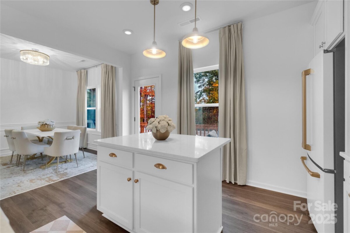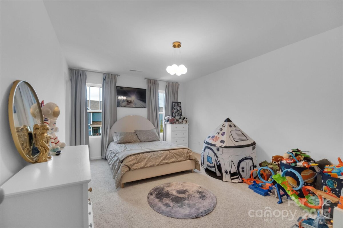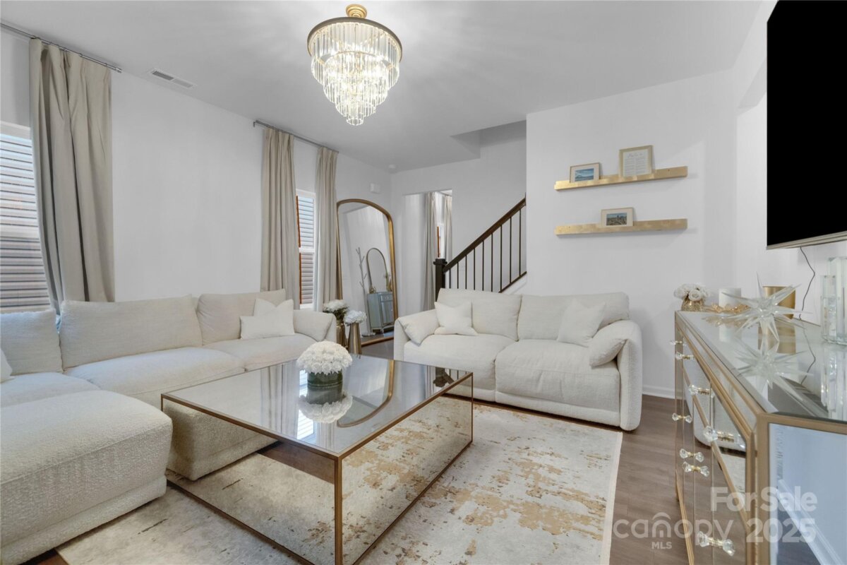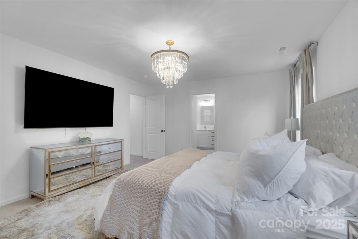 Experience modern luxury in this nearly new, less than a year old home that combines style, functionality, and thoughtful updates. The open floor plan creates a welcoming and spacious environment, perfect for daily living and entertaining guests. The chef’s kitchen features quartz countertops, a stunning farmhouse sink, and 42-inch cabinets providing ample storage. The large kitchen island and breakfast bar make meal prep and casual dining convenient and social. All appliances have been upgraded to high-end Cafe brand, offering both quality and aesthetic appeal. Complementing this, all light fixtures throughout the home have been replaced with designer lighting, adding a sophisticated touch. The first floor is finished with durable, elegant LVP flooring that runs seamlessly throughout, enhancing the home's contemporary look. Escape to the large primary bathroom, featuring a luxurious oversized shower and modern fixtures, providing a perfect retreat. The secondary bedrooms and flexible loft space offer additional comfort and versatility. Step outside to enjoy a fenced backyard with a spacious back deck—ideal for outdoor gatherings—while enjoying privacy with no rear neighbors and scenic views of surrounding trees. The large laundry room adds convenience, and custom curtains throughout the home create a warm, finished feel. This home combines premium upgrades with a desirable location, offering a perfect blend of comfort, style, and practicality for modern living.