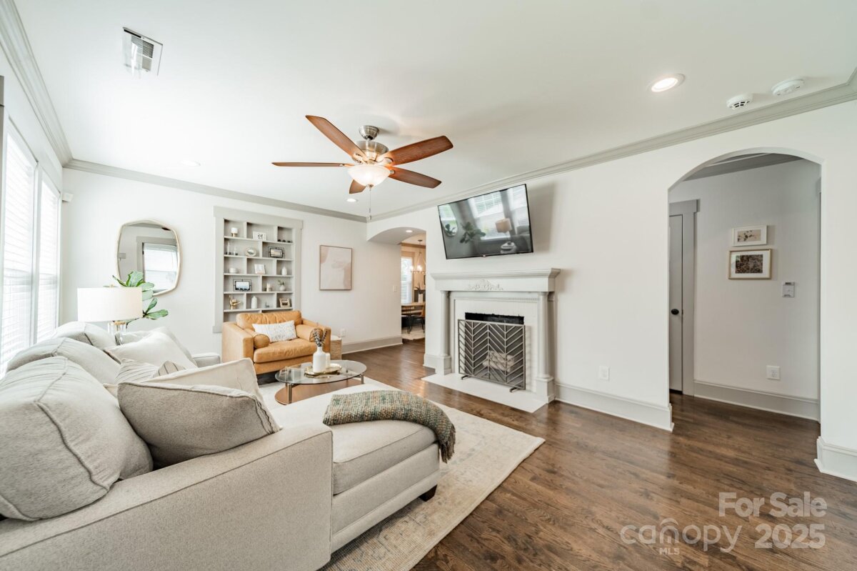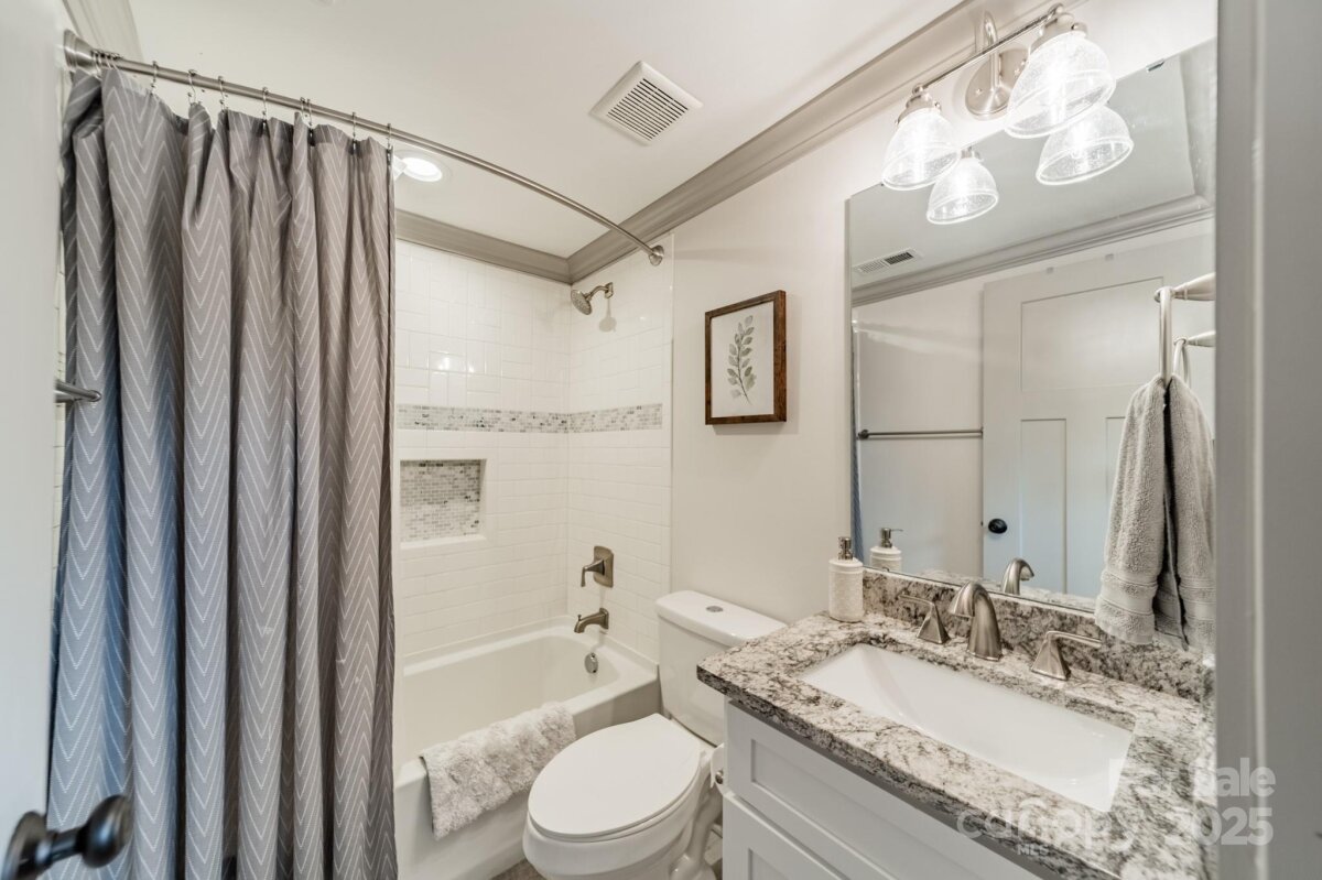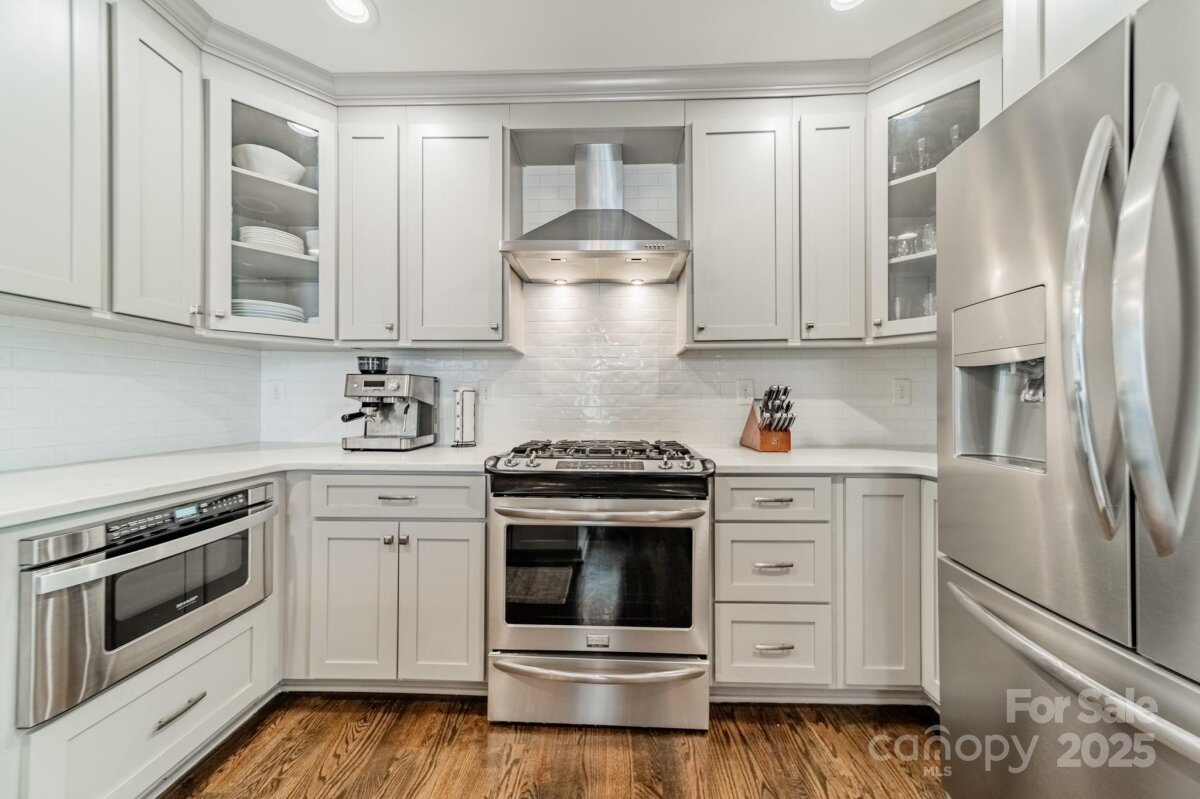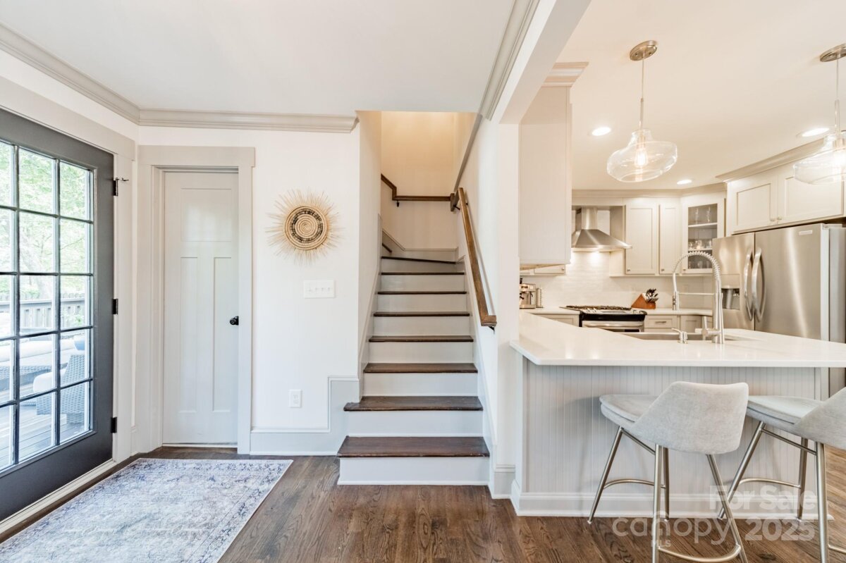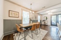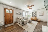 Classic charm meets modern comfort in this fully renovated 1.5-story 1948 bungalow near historic Camp Greene. Hardwood floors, arched doorways & detailed millwork create a warm, inviting feel. The cozy living room flows into a spacious kitchen with elegant finishes, breakfast bar, dining area & sitting room - perfect for day-to-day living or entertaining. A generous walk-through pantry leads to the laundry, offering ample storage and effortless functionality. Two main-level BRs include the primary suite & a 2nd BR ideal for a home office or den. Upstairs, two additional BRs & a full bath provide a quiet retreat. The beautifully manicured lot features a fenced yard, garden shed & spacious deck for endless outdoor enjoyment. Set in a well-established neighborhood undergoing thoughtful revitalization, with local favorites like Legion Brewing, Pinky’s, Noble Smoke & Rhino Market nearby. Commuting is a breeze as this home is less than 10 minutes to Uptown Charlotte.