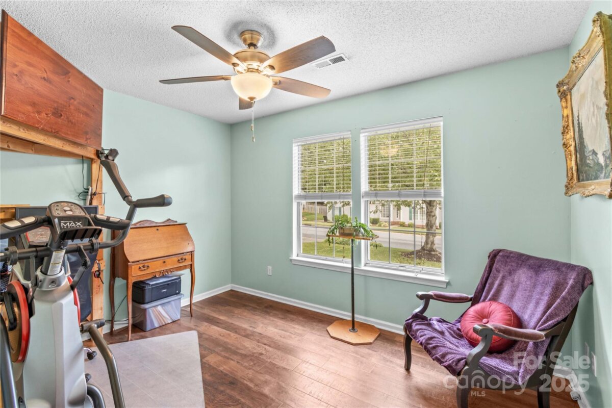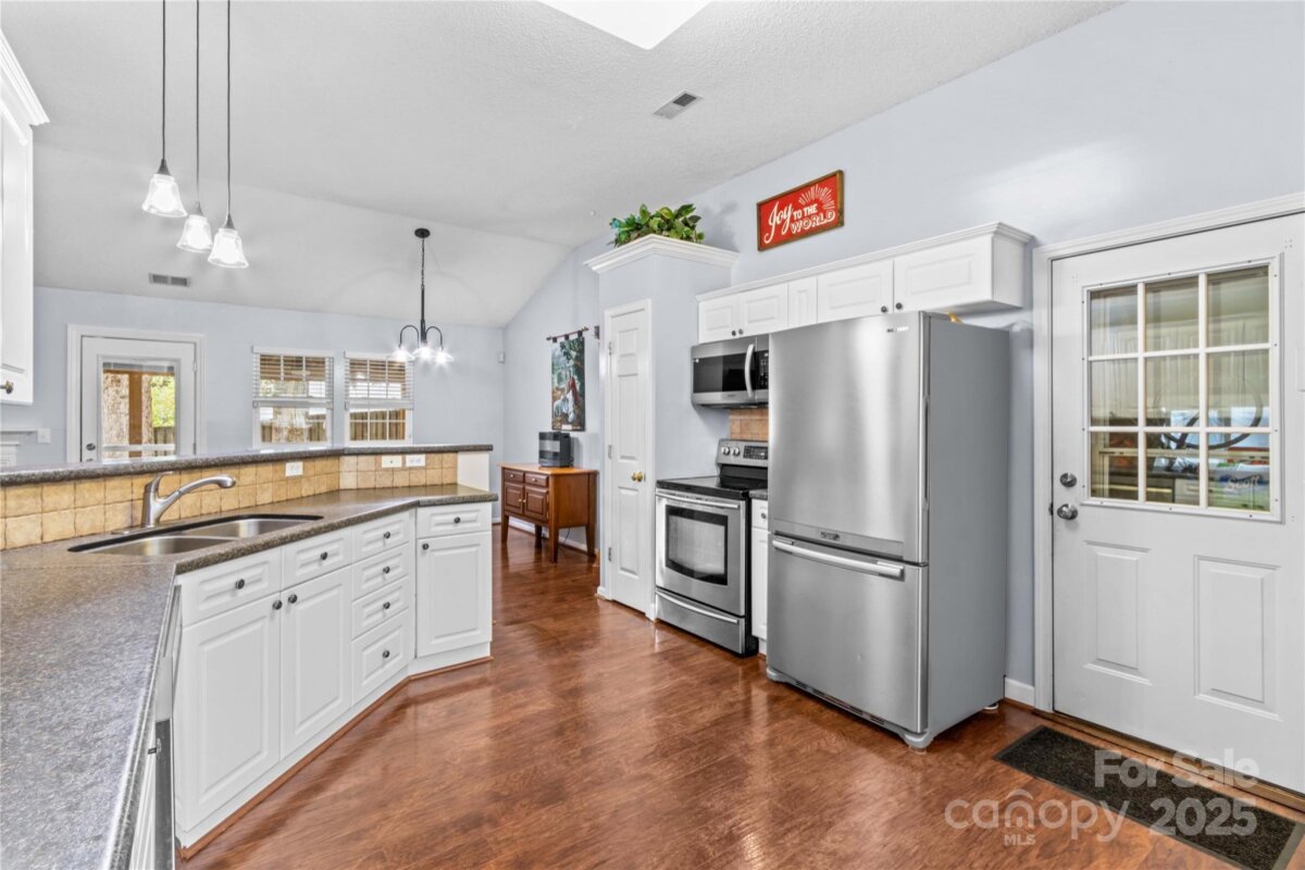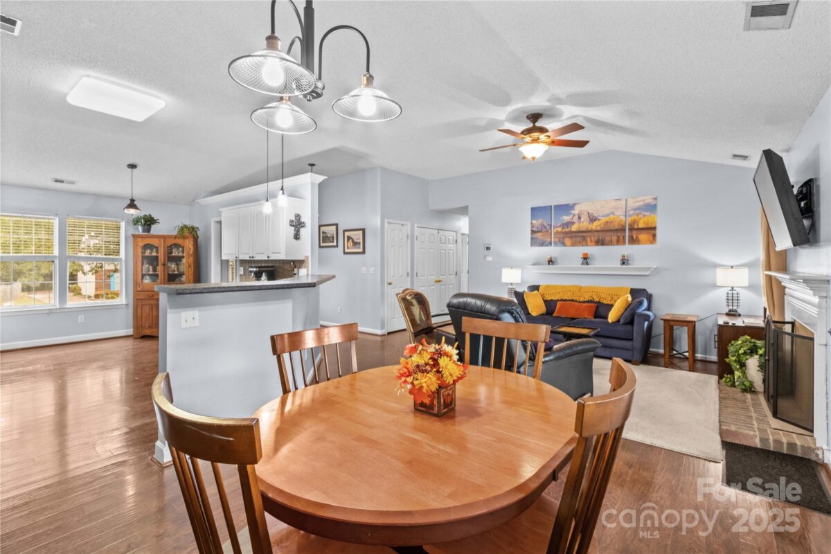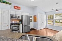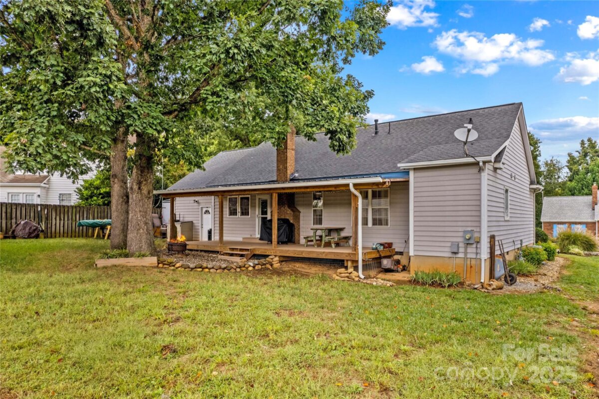 This well maintained home sits in a wonderful location! Close to the heart of Mooresville and easy access to I-77, but tucked away in a quiet neighborhood. This perfectly sized ranch home features an open floorplan, a woodburning fireplace, updated kitchen appliances and so much more. The primary bath features a huge tile shower with a large frosted window to let plenty of light in. There is a large covered rear porch with Trex decking to enjoy nice outdoor evenings. A new water heater was installed this year and the HVAC has been replaced (2015). There is ample storage space with built in shelving in the garage as well as an outdoor storage room. The attic over the garage was converted to heated and cooled storage with walk up stairs - a great space with endless possibilities (not included in the heated square footage).