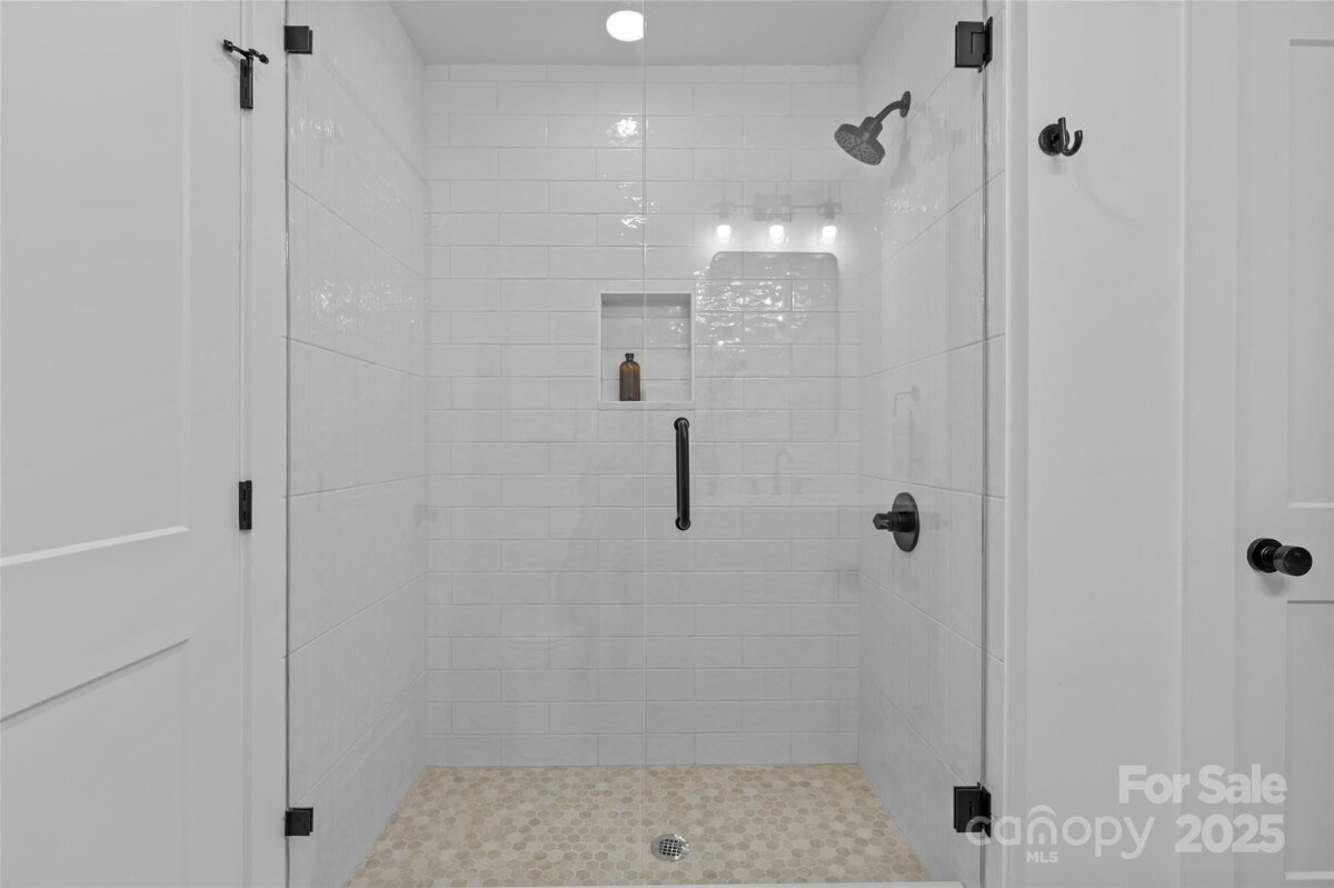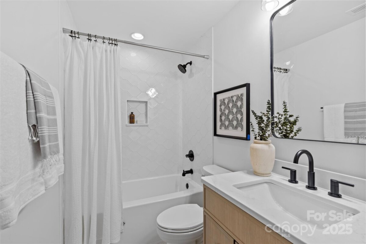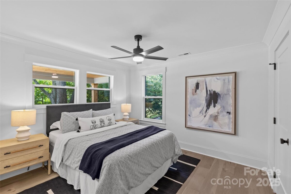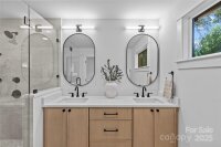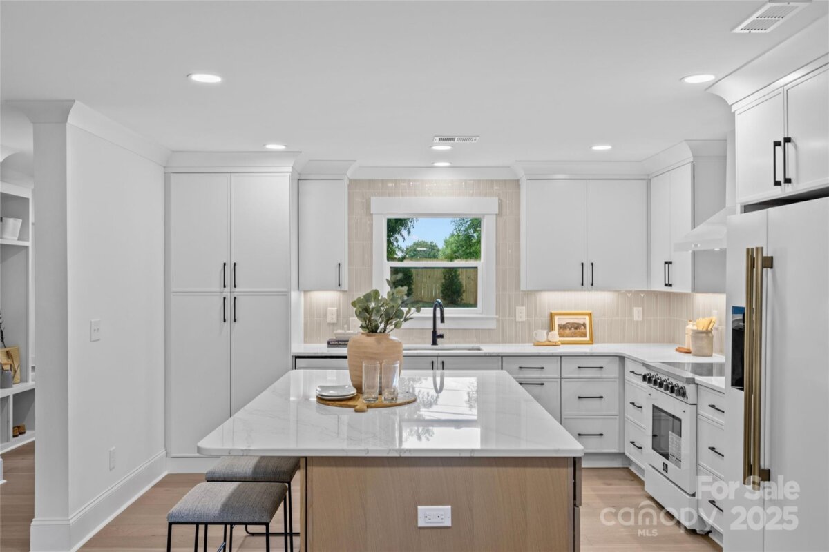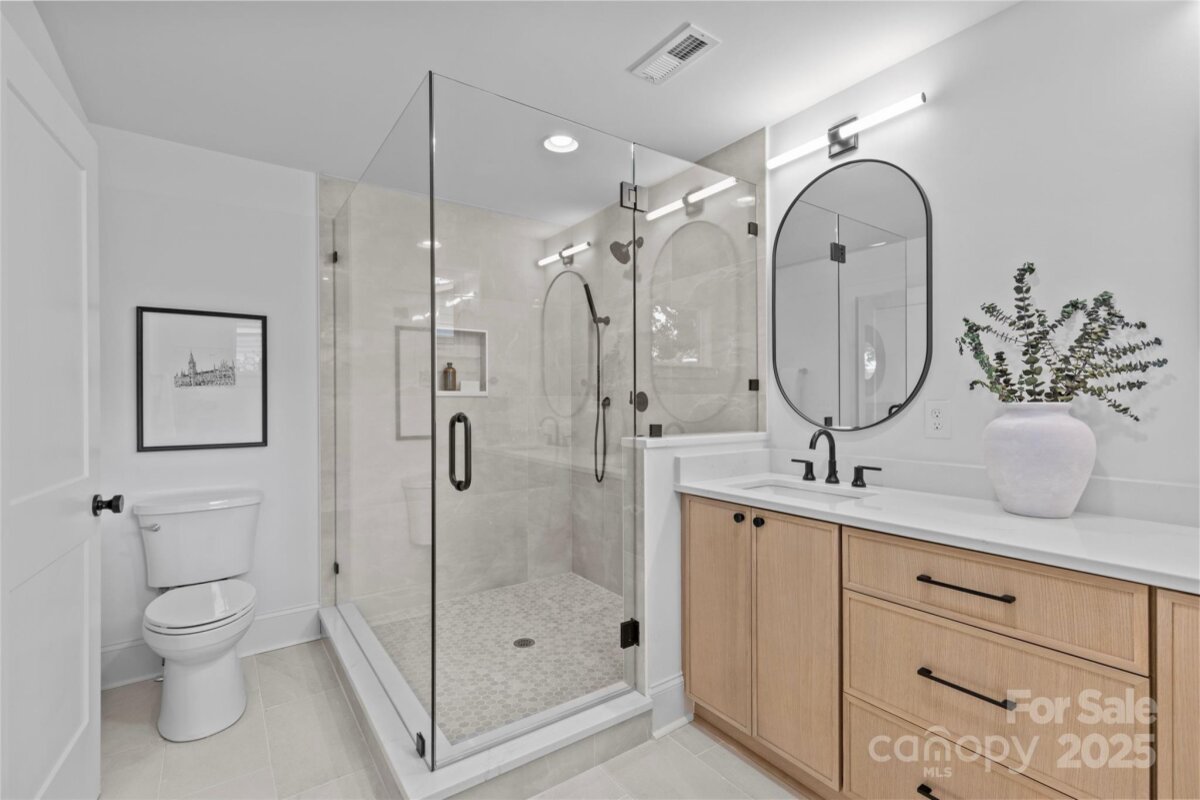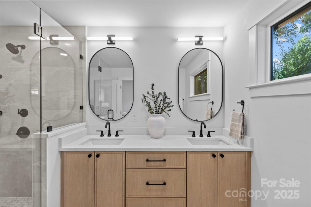 Welcome to 2461 Eaton Drive, a remarkable reinvention in the heart of Amity Gardens—a charming community near Commonwealth, Oakhurst, and Cotswold, and just minutes from Charlotte’s Center City. This 1950s ranch has been fully transformed into a modern home with timeless curb appeal, featuring true full cedar porch columns that set the tone for the craftsmanship inside. Taken down to the studs, the home boasts all new wiring, plumbing, insulation, drywall, windows, HVAC, tankless water heater with recirculating pump, and an architectural shingled roof. This is essentially a brand-new build wrapped in the charm of an established neighborhood. Inside, a wide-open floor plan creates effortless flow between the living, dining, and kitchen. White oak engineered hardwood floors run throughout, lending warmth to the home’s contemporary modernist aesthetic. The living room centers on a stylish fireplace with gas ceramic ball set, anchored by a cedar mantel—a perfect gathering spot for everyday living. The kitchen is sleek and functional, appointed with quartz countertops, modern cabinetry, and designer finishes. Bathrooms mirror the same quality with quartz vanities, stylish tilework, and carefully curated details. A rear entry drop zone with a cute bench and storage makes everyday life easy, while a full-size laundry room offers true convenience. The huge primary suite is a standout retreat, designed with vaulted ceilings, generous proportions, and a spa-like en suite bath. Two additional bedrooms, each with its own private bath, provide flexibility and comfort. Outdoor living is just as appealing. The welcoming front porch overlooks the neighborhood, while the 16’ x 16’ Trex deck offers a spacious, low-maintenance spot for entertaining or relaxing. The fenced backyard creates a private escape for pets, gatherings, or play. Every detail has been thoughtfully considered to create a warm yet sophisticated home, blending clean modern design with timeless materials. With its complete rebuild, elegant finishes, and inviting layout, this home is truly move-in ready. The location is just as impressive—nestled in Amity Gardens with quick access to Commonwealth, Oakhurst, and Cotswold Village for dining and shopping, and only minutes to Plaza Midwood and Uptown. 2461 Eaton Drive is more than a renovation; it is a reinvention—an opportunity to own a one-of-a-kind home that combines modern comfort, warm style, and unbeatable convenience.