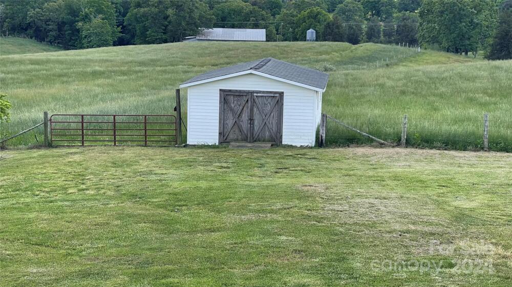 This graceful, full brick home is remarkably spacious w/split bedroom floor plan & full, walk-out basement. The kitchen has gracious-plenty solid oak cabinets w/quartz countertops & tile backsplash. The laundry is just off the kitchen, convenient to a full bath & large primary bedroom. Access the basement and garage from this area also. The main living space has gleaming, site-finished, hardwood floors. There are 2 secondary bedrooms plus a flex-room, previously used as an office. But the main attraction of this awesome property is visible from the back deck. In the distance are green rolling pastures and a big barn for hay & cattle is tucked among large shade trees. Just beyond, a peaceful pond provides water for the cows. But right behind the house is a nice, level back yard w/a covered patio, grape arbor & large storage shed. Gently sloping up towards a 30x40 metal building & 5-bay tractor/implement shed are fruit trees & vines. In front are pecan trees & a charming well house.