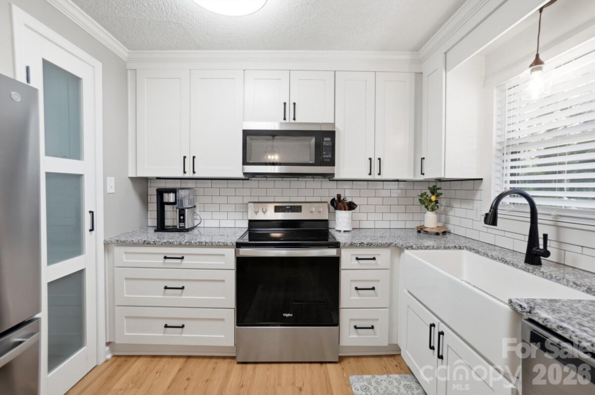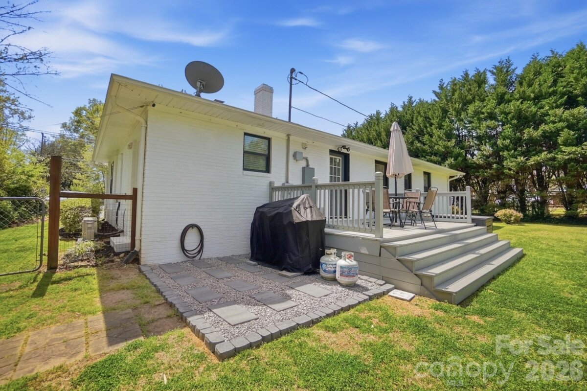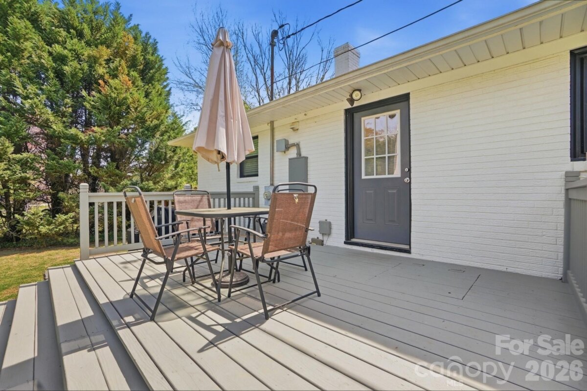 Move-in ready with thoughtful improvements throughout! Beautifully refreshed 2-bedroom, 2-bathroom gem, perfectly located just 5 minutes from I-85. This home boasts significant upgrades, including a flex room and second full bath, currently serving as a private primary suite. Home features include a modern kitchen with bright white cabinets paired with sleek granite countertops and a versatile floor plan with two bedrooms and a full hall bath. An extended back deck off the dining area overlooks a backyard fenced on three sides with mature shrubbery for added privacy.