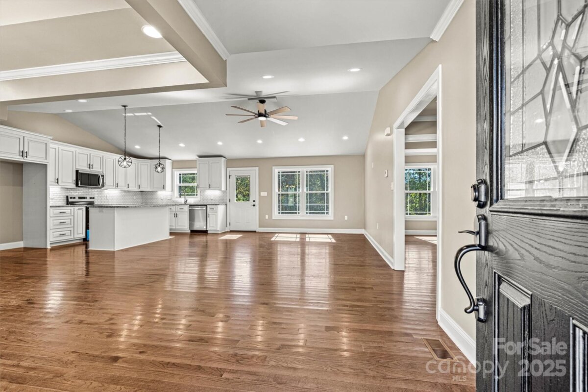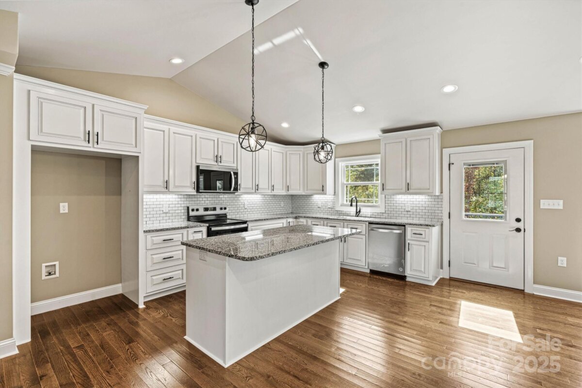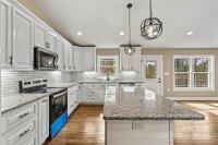 Welcome to 24 Eastwinds—where comfort, custom craftsmanship, and convenience converge in this stunning new construction home with no city taxes! Set on a generous 0.74-acre corner lot in Deer Creek, this beautifully crafted 3-bedroom, 2.5-bath home combines modern functionality with timeless design. From its striking curb appeal to the thoughtful interior finishes, every detail showcases quality and care. The open-concept layout enhances flow and livability, blending everyday practicality with refined style. Step into the light-filled foyer, where gleaming pre-finished hardwood floors and abundant natural light create a warm welcome. The foyer opens to the spacious living, dining, and kitchen areas—perfect for entertaining or quiet evenings at home. Vaulted ceilings, crown molding, and expansive windows elevate the space with custom character and charm. At the heart of the home, the kitchen balances beauty and function with locally crafted custom cabinetry, granite countertops, a large center island, and designer fixtures. Vaulted and tray ceilings, along with recessed lighting, add depth and brightness, creating an inviting space for cooking, gathering, and everyday enjoyment. The dining area, framed by an elegant tray ceiling, offers the ideal setting for family dinners or festive celebrations. Step through to the low-maintenance composite deck for relaxed evenings of grilling or conversation under the stars. The primary suite provides a serene retreat with a double tray ceiling, dual walk-in closets, and a luxurious bath featuring double vanities, a spacious tile shower, and a private water closet. The split-bedroom floor plan ensures privacy, with two additional bedrooms—one highlighted by a tray ceiling and the other filled with natural light—sharing a full guest bath with a custom tile tub surround. Everyday living is made easy with a large laundry room with half bath, an oversized two-car garage, and a walk-in/out crawlspace offering versatile storage options. Outdoors, the private backyard and expansive side yard provide endless possibilities—create a garden, gather around a fire pit, or design a play area for family and friends. The space is perfect for relaxing, entertaining, and making lasting memories. Ideally located just minutes from Hwy 127 and downtown Hickory, you will enjoy convenient access to shopping, dining, and recreation. Nearby Lake Hickory and Wittenburg Public Lake Access offer endless opportunities for boating, kayaking, swimming, and enjoying the natural beauty of the area. With its thoughtful details, quality craftsmanship, and custom touches throughout, 24 Eastwinds is a must-see home that perfectly balances style, comfort, and functionality. Schedule your private tour today!