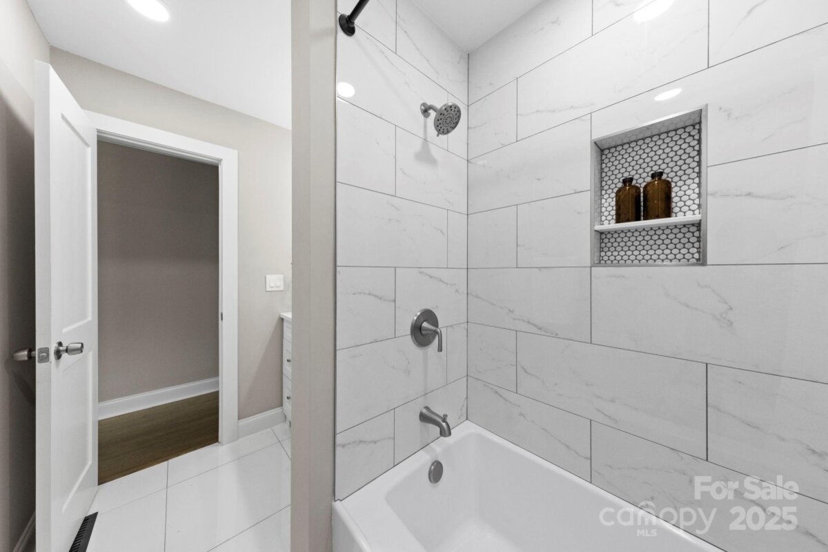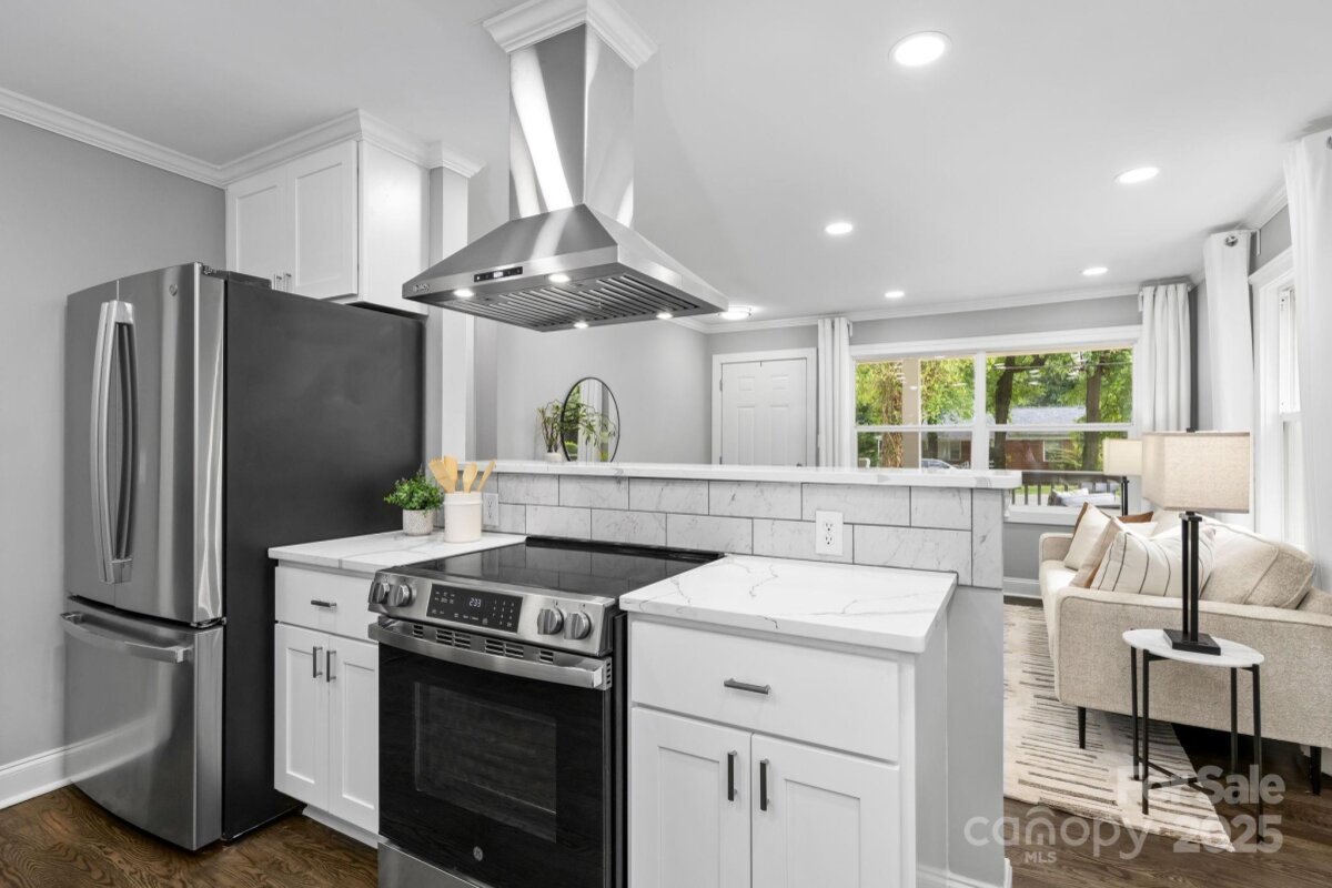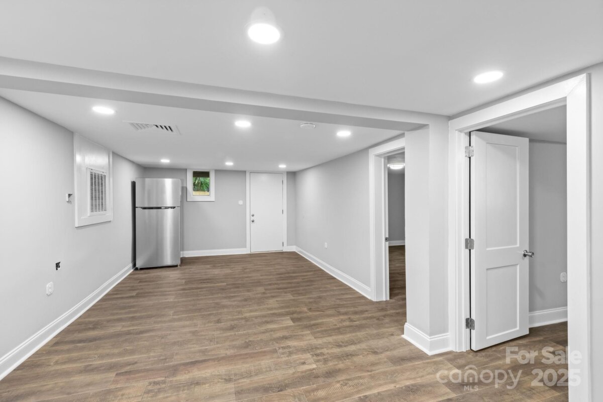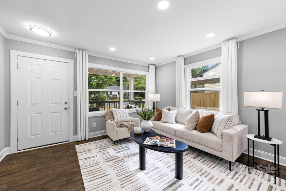 Create memories in this cozy, newly renovated home near Camp North End and NoDa. Just a short commute from Uptown Charlotte, where character and charm meet modern convenience. Massive backyard and over 2,000 square feet of living area. Masterfully crafted with new cabinets, refinished hardwoods, and new countertops. Tasteful plumbing and lighting selections throughout bring this home to life. With a functional floor plan that allows dual living spaces upstairs and downstairs. Not to mention the grand primary suite with a spacious walk-in closet and spa-like bathroom. New LVP upstairs, all new trim and interior doors, and many more new features. Please note, the finished basement is 742 SQFT, but cannot be counted in HLA as ceiling height is under 7 feet. The additional room on the main floor is office or study area. The newly built front artisan-level porch, is perfect for morning or evening relaxation. Don't miss out on the opportunity to be in Camp North End's backyard, all while being UNDER $600,000. Please see attachments for full list of upgrades. Welcome home!