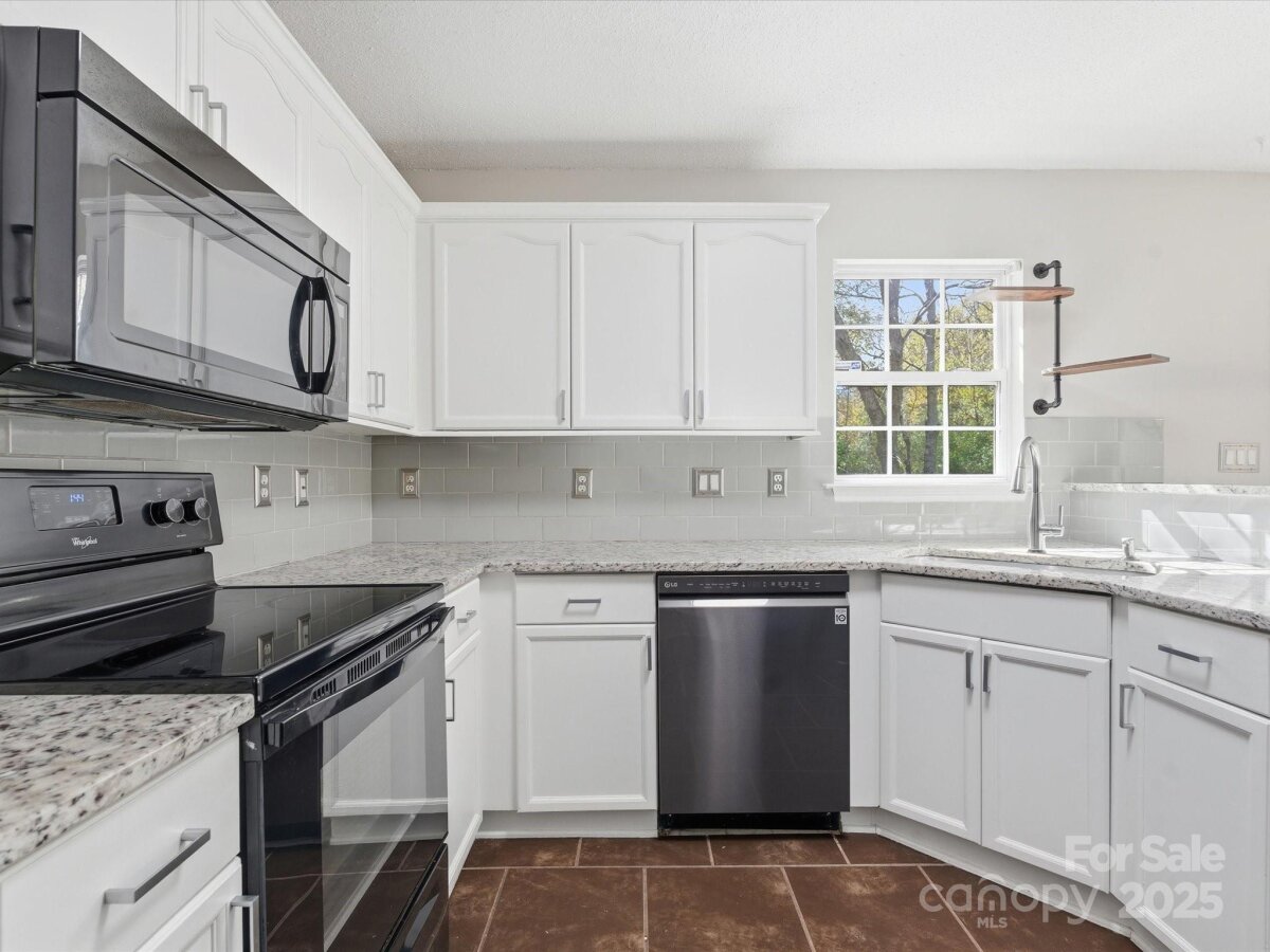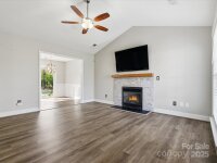 Welcome to this beautiful 3 bedroom, 2 bath ranch home! Enjoy the open living room with vaulted ceilings and a cozy fireplace, perfect for relaxing or entertaining. The kitchen overlooks the private backyard, offering a great view while cooking. The primary suite features rustic barn doors, a cathedral ceiling, a walk-in closet, and a gorgeous bath with a large tiled shower. Step outside to a spacious patio surrounded by shade trees ideal for outdoor gatherings or quiet evenings. The large backyard also includes a storage shed with a ramp, perfect for tools, lawn equipment, or a workshop. Move in ready. Schedule your showing today!