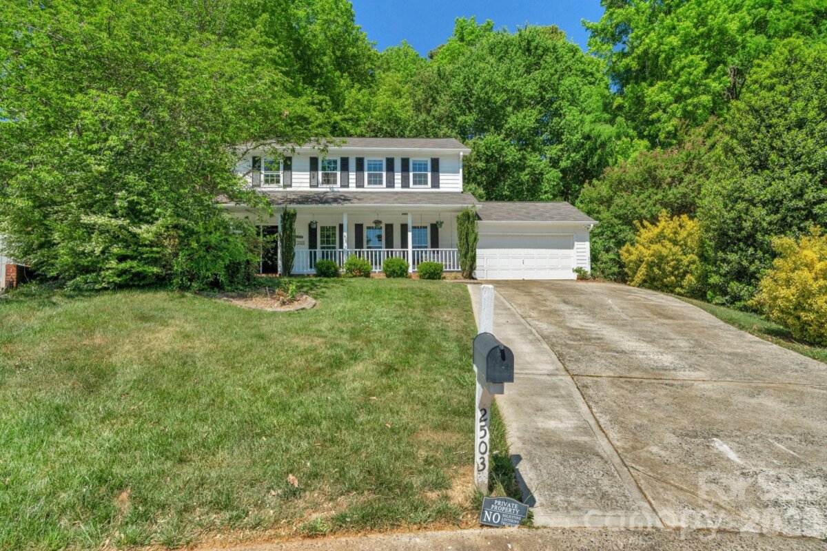 Welcome to 2503 Bathgate Ln in The Heathers, a beautifully updated 3-bedroom, 2.5-bath home on nearly half an acre at the end of a quiet cul-de-sac with NO HOA. Step inside to find luxury vinyl plank flooring throughout, a freshly painted interior, and a spacious living room anchored by a fireplace with custom built-ins. The updated kitchen features newer countertops, backsplash, and a convenient beverage center with freestanding fridge. Upstairs, the primary suite offers a massive bedroom and a fully remodeled bathroom with custom tile walk-in shower, freestanding soaking tub, dual vanities, and linen tower. All windows and the front door have been replaced within the past year, and the hot water tank is less than six months old. Outside, enjoy a large covered front porch, back patio, stocked koi pond, mature fruit trees (peach, fig, pear, and apple), established garden beds, and a wired storage shed. Two-car garage. Butler school district. This home is move-in ready with upgrades that make a difference. Schedule your showing today.