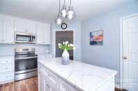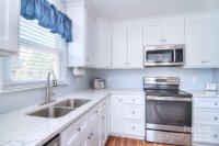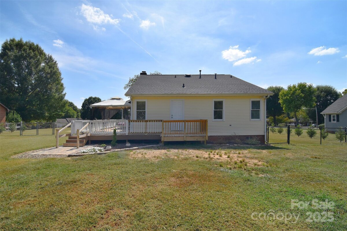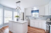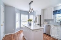 Charming one story gem with front porch and spacious level lot. All the work has been done for you and ready for next owner. Updated kitchen features white cabinets, center island, quartz counter tops, newer SS dishwasher and range. Nice SS refrigerator remains. Lots of natural light in this cheery home. Great room boasts stone veneer fireplace and opens to eating area. 3 bedrooms and 2 full baths. Primary bath recently remodeled. Newer HVAC system. Sit on the front porch in the morning with coffee or enjoy evening chats. To top it off, roof is just a few years old. Fully fenced level yard with two well maintained sheds. Be proud to call this your new home.