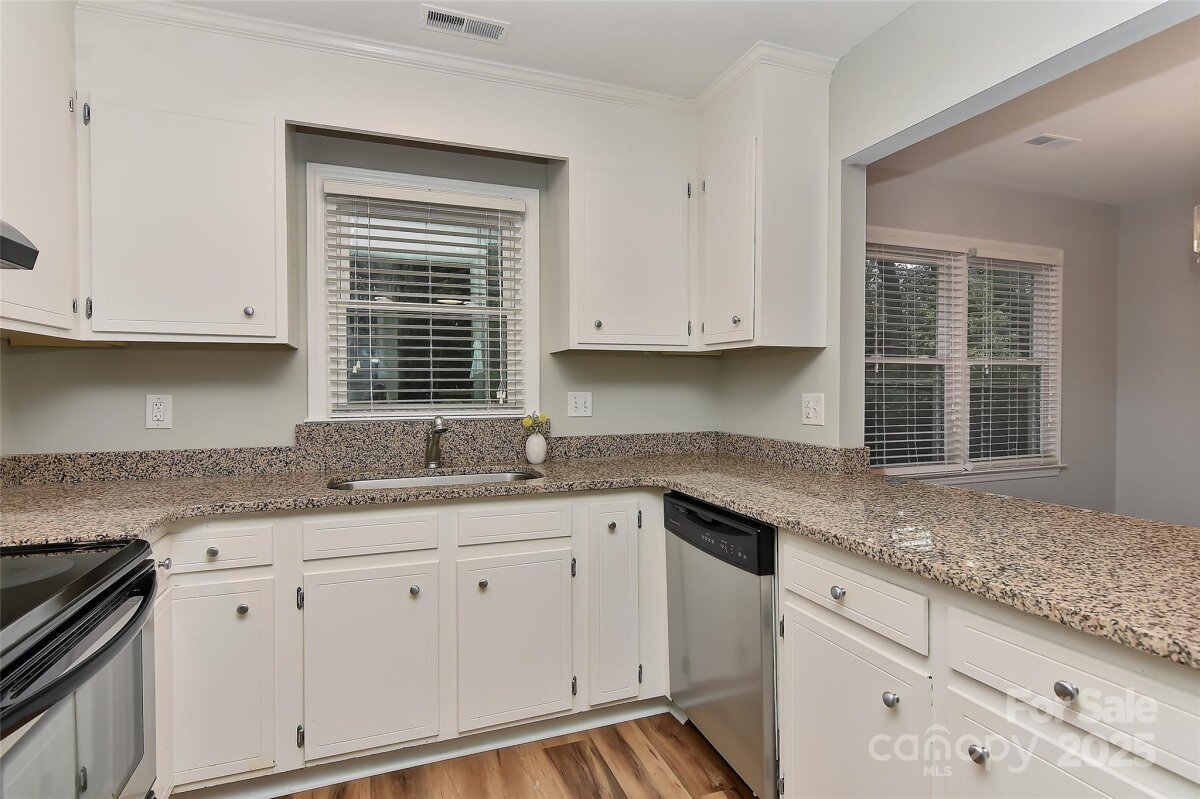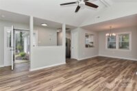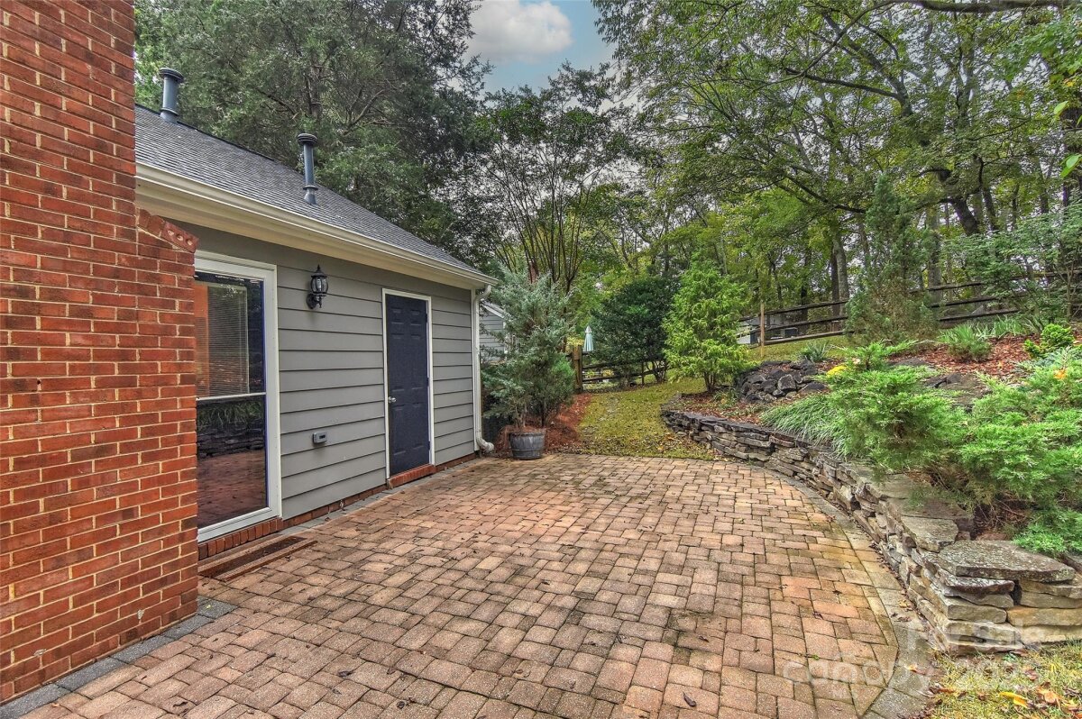 Welcome to Brandon Forest, a sought-after neighborhood in desirable South Charlotte with no HOA. This 2-bedroom, 2-bath home features LVP floors, stylish fixtures and fresh paint throughout, with both bedrooms offering ensuite baths for added privacy. The huge fully fenced yard with mature trees offers a true retreat with outdoor living space in the heart of the city. Enjoy unmatched convenience with greenway access just 0.2 miles away and Quail Corners Shopping Center—with grocery stores, veterinarian office, UPS Store, restaurants, and more—less than a mile from your door. Cut the commute with easy access to Uptown, South Park, Ballantyne, light rail and I-485. This South Charlotte gem is a true oasis in the city! Fireplace never used by current owner. No representation. Storage room off paver patio.