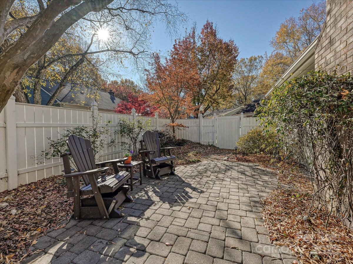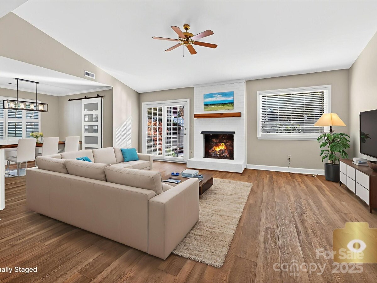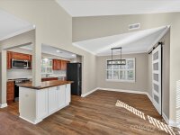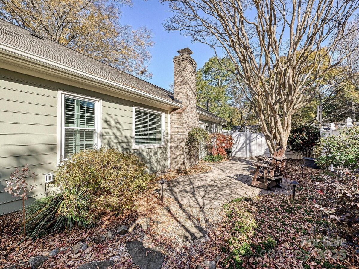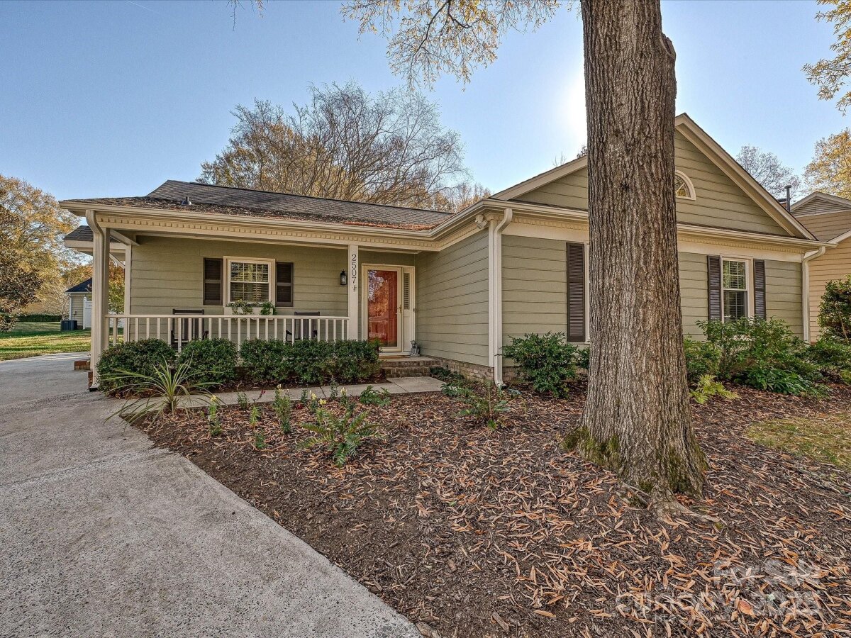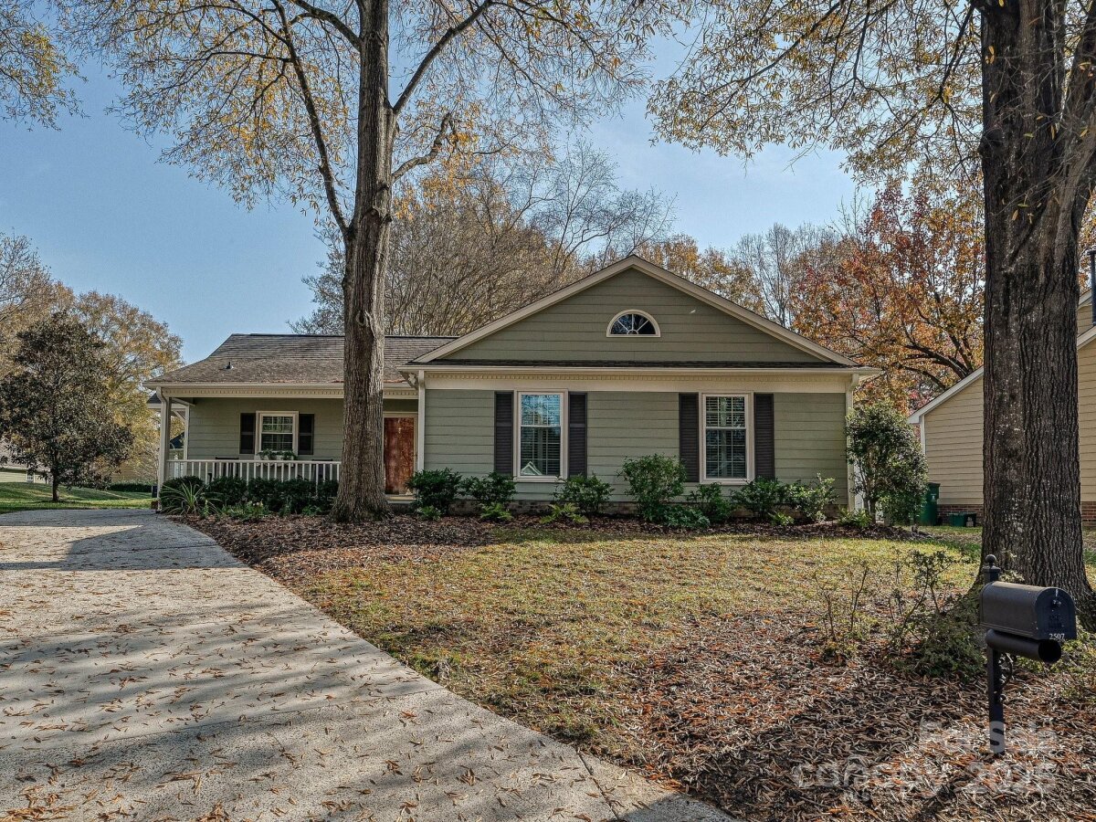 Welcome to 2507 Breuster Drive, an inviting 3-bedroom, 2-bath home perfectly positioned in a cul de sac in South Charlotte! A charming rocking-chair front porch sets the tone for this beautifully updated ranch featuring LVP flooring throughout, modern tile in the baths, plantation shutters, and elegant crown and raised baseboard moldings. The vaulted family room feels bright and airy with its painted brick fireplace and brand-new gas logs (2024). The dining room shines with updated lighting, and the renovated kitchen impresses with custom soft-close wood cabinetry, a stained wood-topped island, granite countertops, tile backsplash, recessed lighting, new GE stainless steel appliances, including a brand-new range, and a coveted walk-in pantry with wood shelving. A stylish laundry room with cabinetry and a frosted barn-door entry adds both charm and function. The spacious primary suite features a generous walk-in closet and a sleek bath with a frameless glass and tile shower. Both baths offer teak vanities, Carrara marble counters, and updated lighting. Thoughtful upgrades are found throughout: newer windows, newer HVAC (2019), new gutters, ceiling fans in every bedroom, double-door closets in the secondary bedrooms, a new tankless water heater, brand-new interior doors, dimmer switches on dining and kitchen lighting, pull-down attic storage, and a new side entry door. Step outside to a tranquil backyard retreat with a paver patio, lush landscaping, perennials, and a serene pond, all within a fenced yard designed for outdoor enjoyment. A truly special home in a prime location not far from Quail Corners, SouthPark Mall, Ballantyne, McAlpine Creek Greenway, the light rail, and more fabulous shopping, dining, parks and conveniences!
