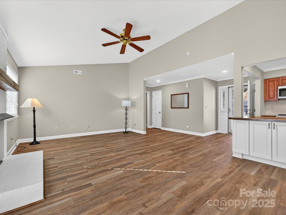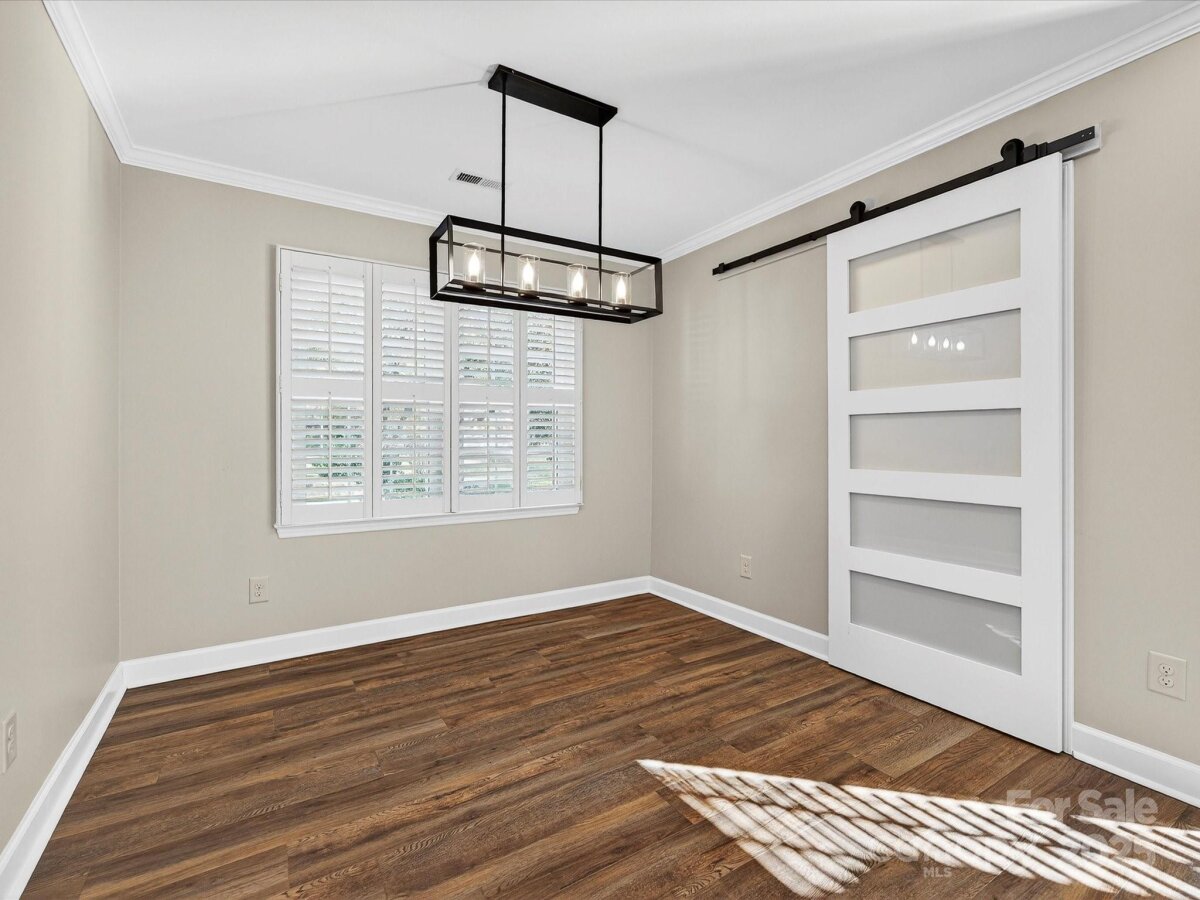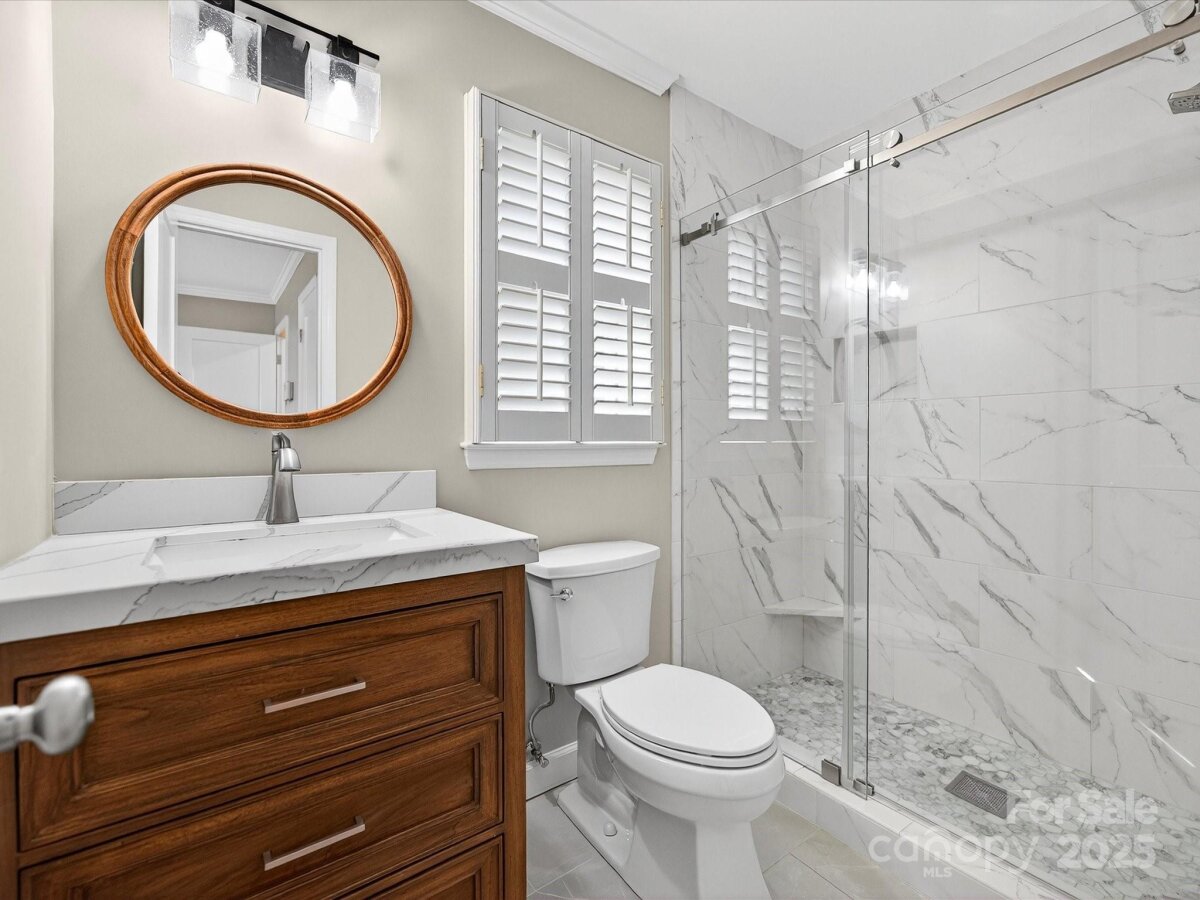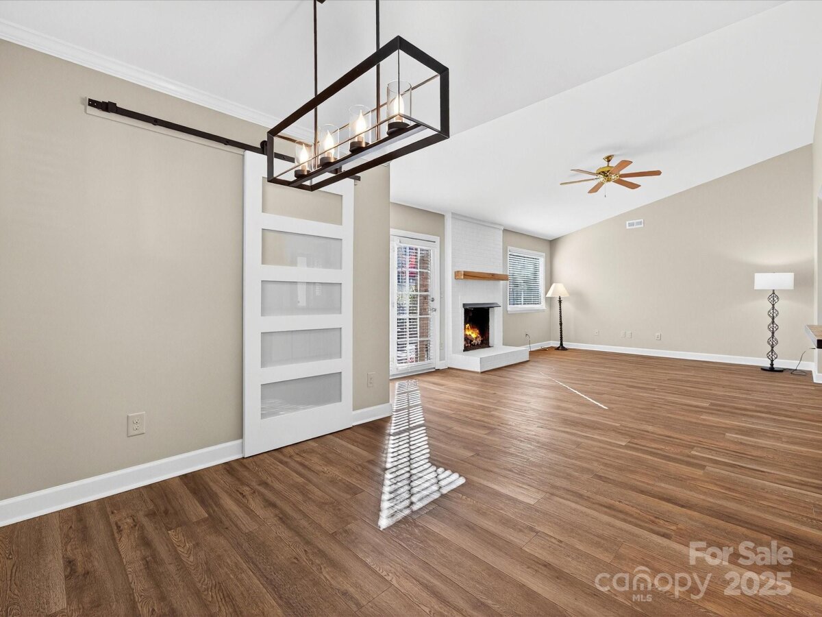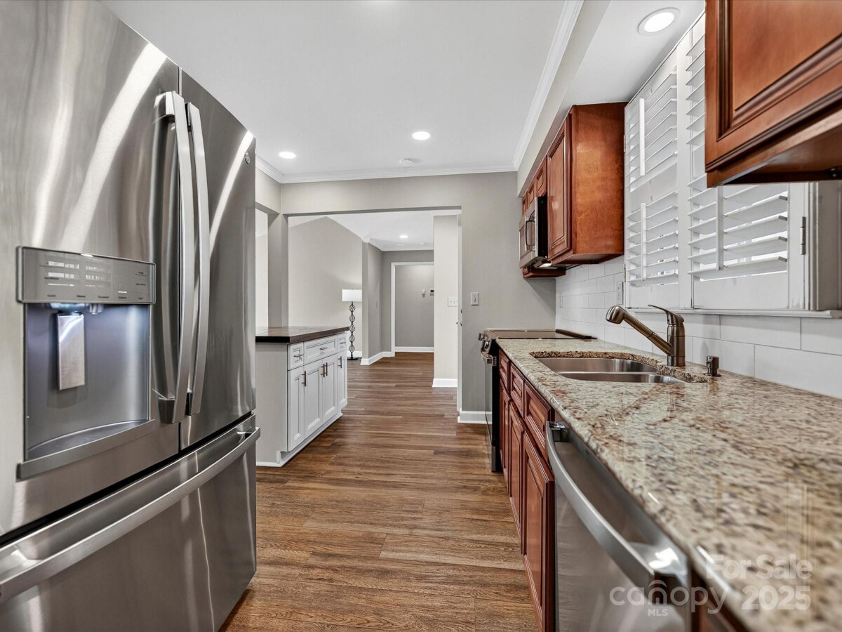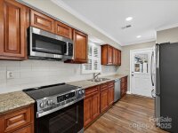 Welcome to 2507 Breuster Drive, an inviting 3-bedroom, 2-bath home perfectly positioned in a cul de sac in South Charlotte! A charming rocking-chair front porch sets the tone for this beautifully updated ranch featuring LVP flooring throughout, modern tile in the baths, plantation shutters, and elegant crown and raised baseboard moldings. The vaulted family room feels bright and airy with its painted brick fireplace and brand-new gas logs (2024). The dining room shines with updated lighting, and the renovated kitchen impresses with custom soft-close wood cabinetry, a stained wood-topped island, granite countertops, tile backsplash, recessed lighting, new GE stainless steel appliances, including a brand-new range, and a coveted walk-in pantry with wood shelving. A stylish laundry room with cabinetry and a frosted barn-door entry adds both charm and function. The spacious primary suite features a generous walk-in closet and a sleek bath with a frameless glass and tile shower. Both baths offer teak vanities, Carrara marble counters, and updated lighting. Thoughtful upgrades are found throughout: newer windows, newer HVAC (2019), new gutters, ceiling fans in every bedroom, double-door closets in the secondary bedrooms, a new tankless water heater, brand-new interior doors, dimmer switches on dining and kitchen lighting, pull-down attic storage, and a new side entry door. Step outside to a tranquil backyard retreat with a paver patio, lush landscaping, perennials, and a serene pond, all within a fenced yard designed for outdoor enjoyment. A truly special home in a prime location not far from Quail Corners, SouthPark Mall, Ballantyne, McAlpine Creek Greenway, the light rail, and more fabulous shopping, dining, parks and conveniences!