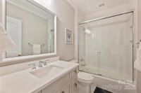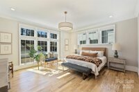 Prepare to fall in love with this Knight Residential Group gem in the distinguished Eastover neighborhood. This home is the epitome of luxury and convenience located just 2.5 miles from Uptown Charlotte's famed intersection at Trade and Tryon Streets. Step into the open floor plan with the chef's kitchen equipped with a Wolf range and paneled Sub-zero refrigerator and dishwasher. White oak hardwood floors and 10 foot ceilings throughout main level. Fully enclosed sun porch with gas fireplace and tri-fold glass wall invites you to the fenced terrace to enjoy indoor outdoor living. Large primary suite on main with remote-controlled blinds. New designer lighting and fabric blinds throughout the home. The second floor has 4 generous bedroom suites (each with private bath) as well as a media room. Laundry room accommodates 2 sets of machines. Yard fully landscaped with new brick privacy wall and irrigation system. 2-car attached garage used as a gym + 2-car pea gravel motor court in front.
